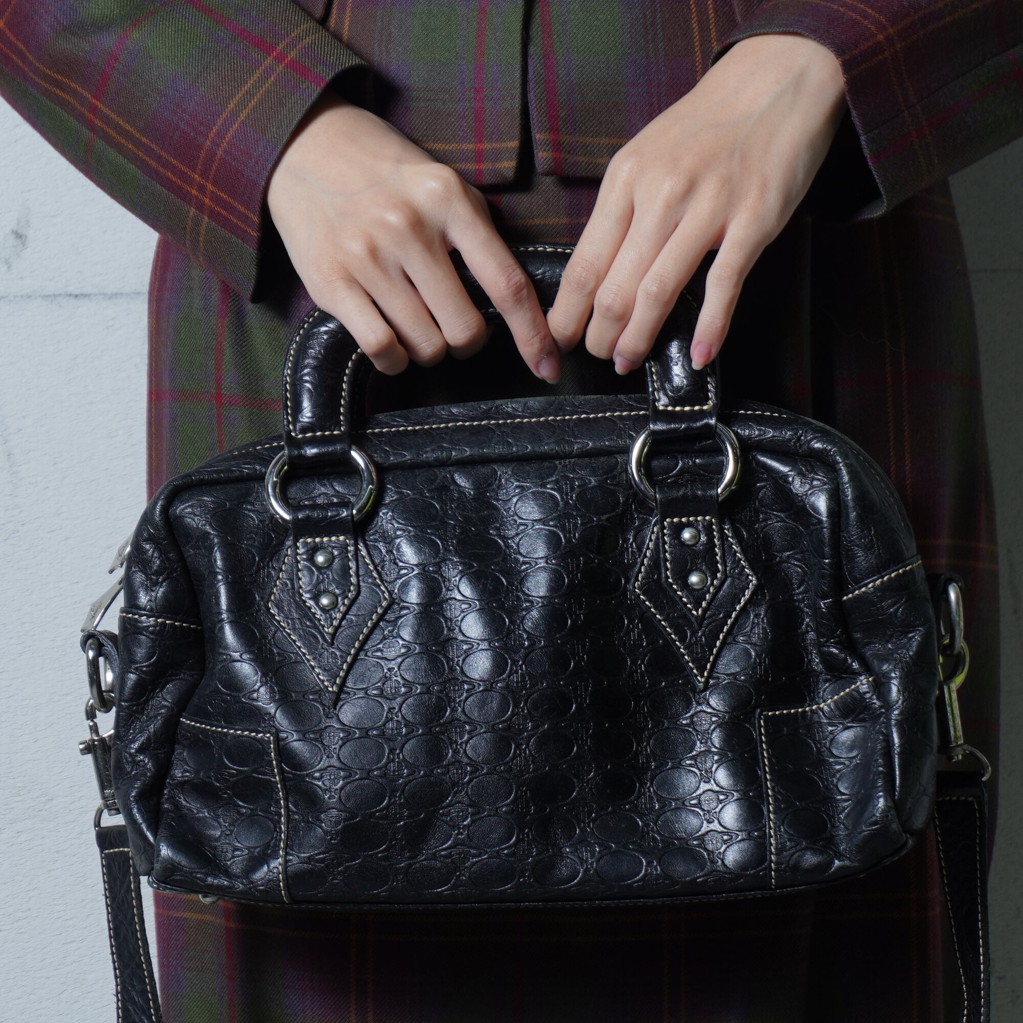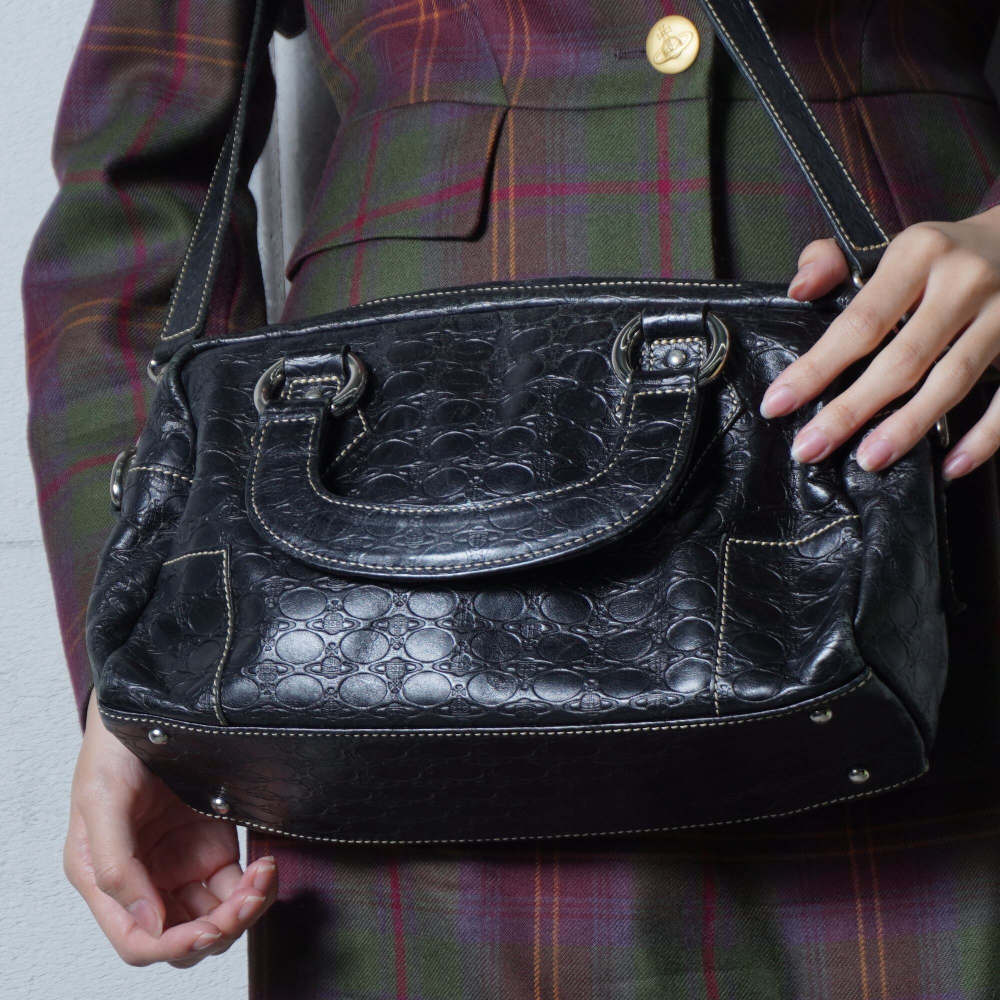 【Vivienne Westwood】ヴィヴィアンウエストウッド ”オーブロゴ総柄” 2WAYレザーショルダーハンドバッグ black