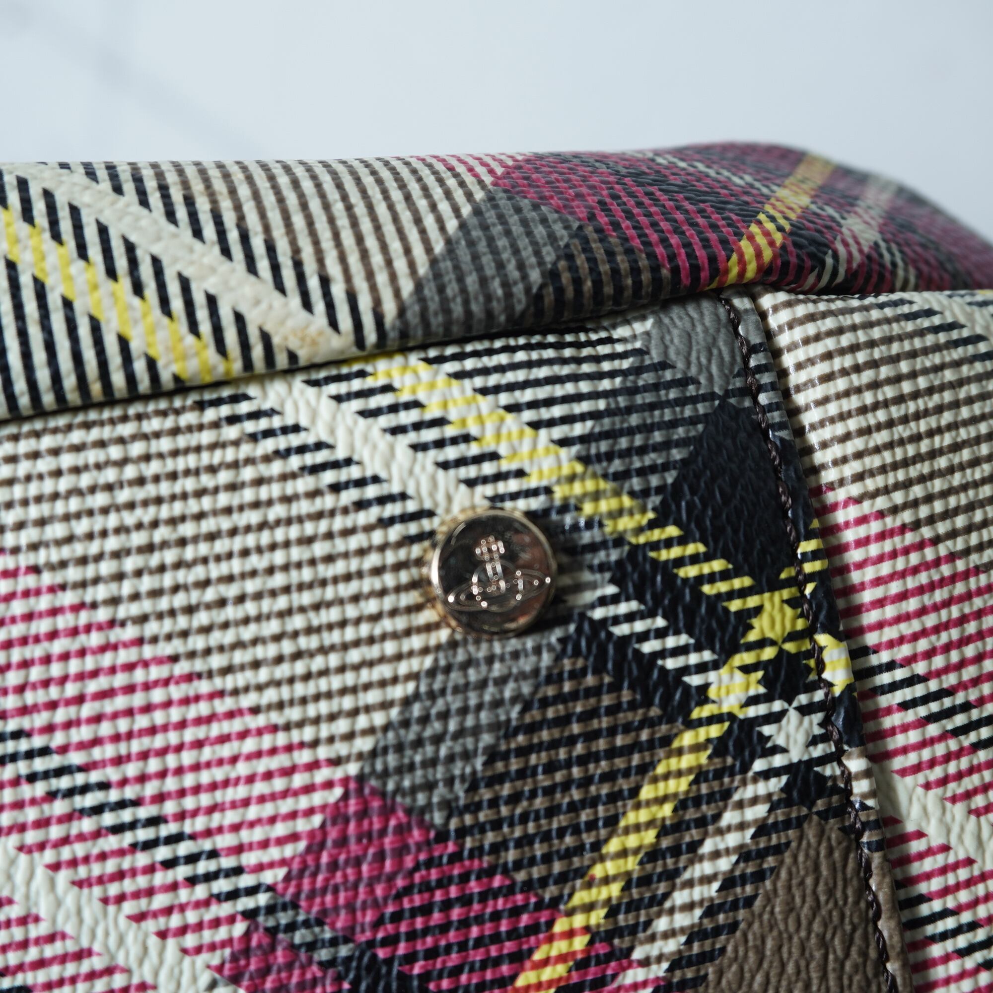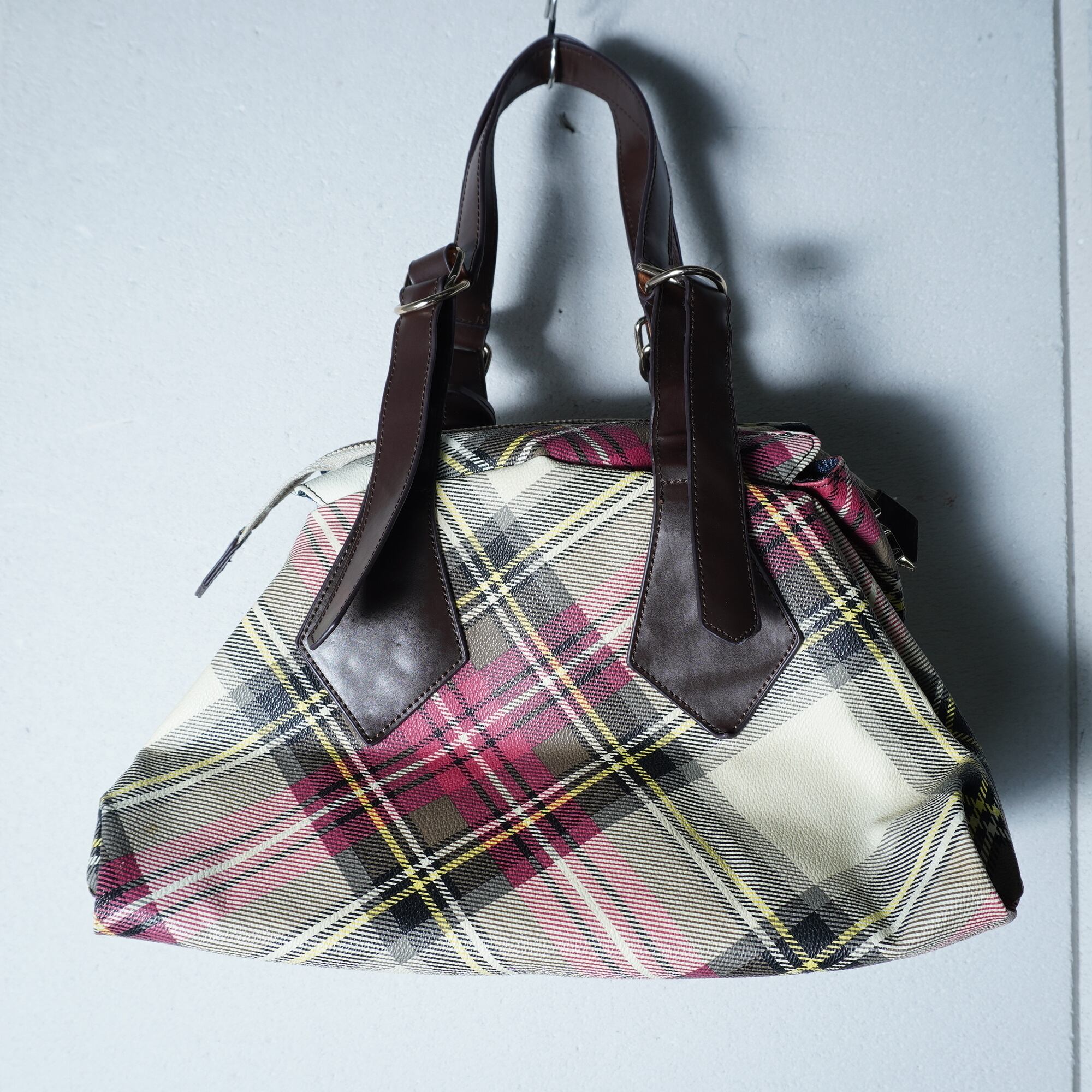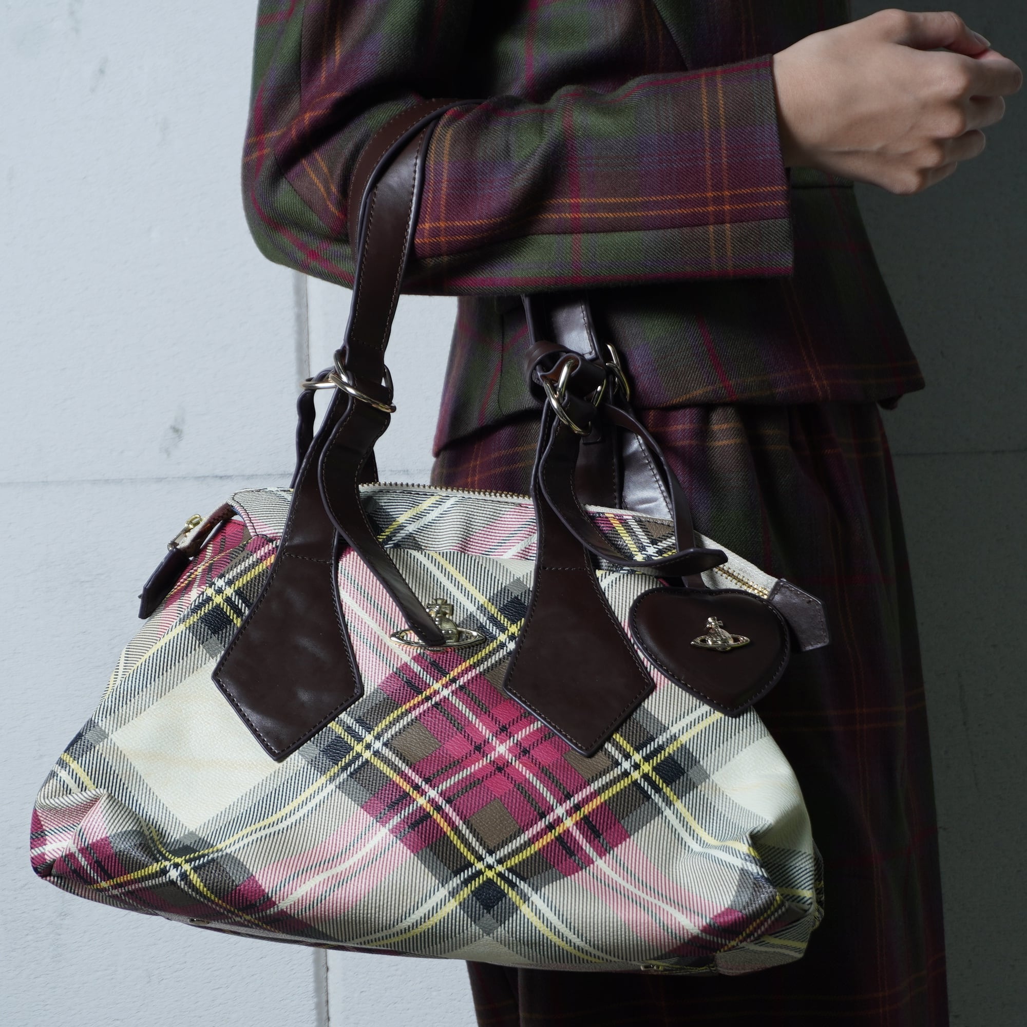 【Vivienne Westwood】ヴィヴィアンウエストウッド "オーブロゴ" ヤスミンリアルレザークロスチェックハンドバッグ red&beige&yellow