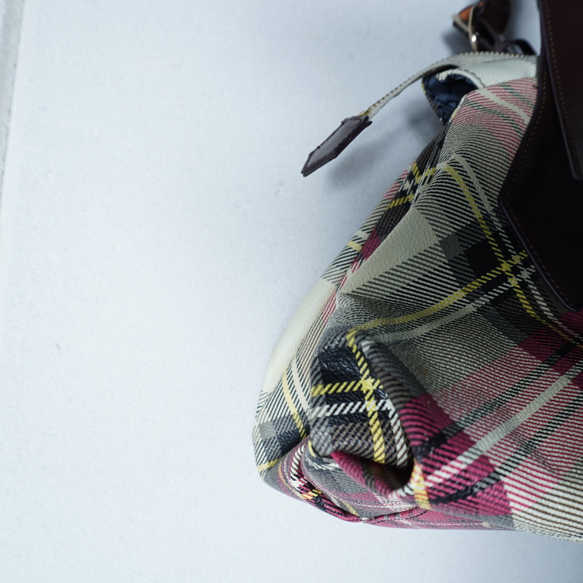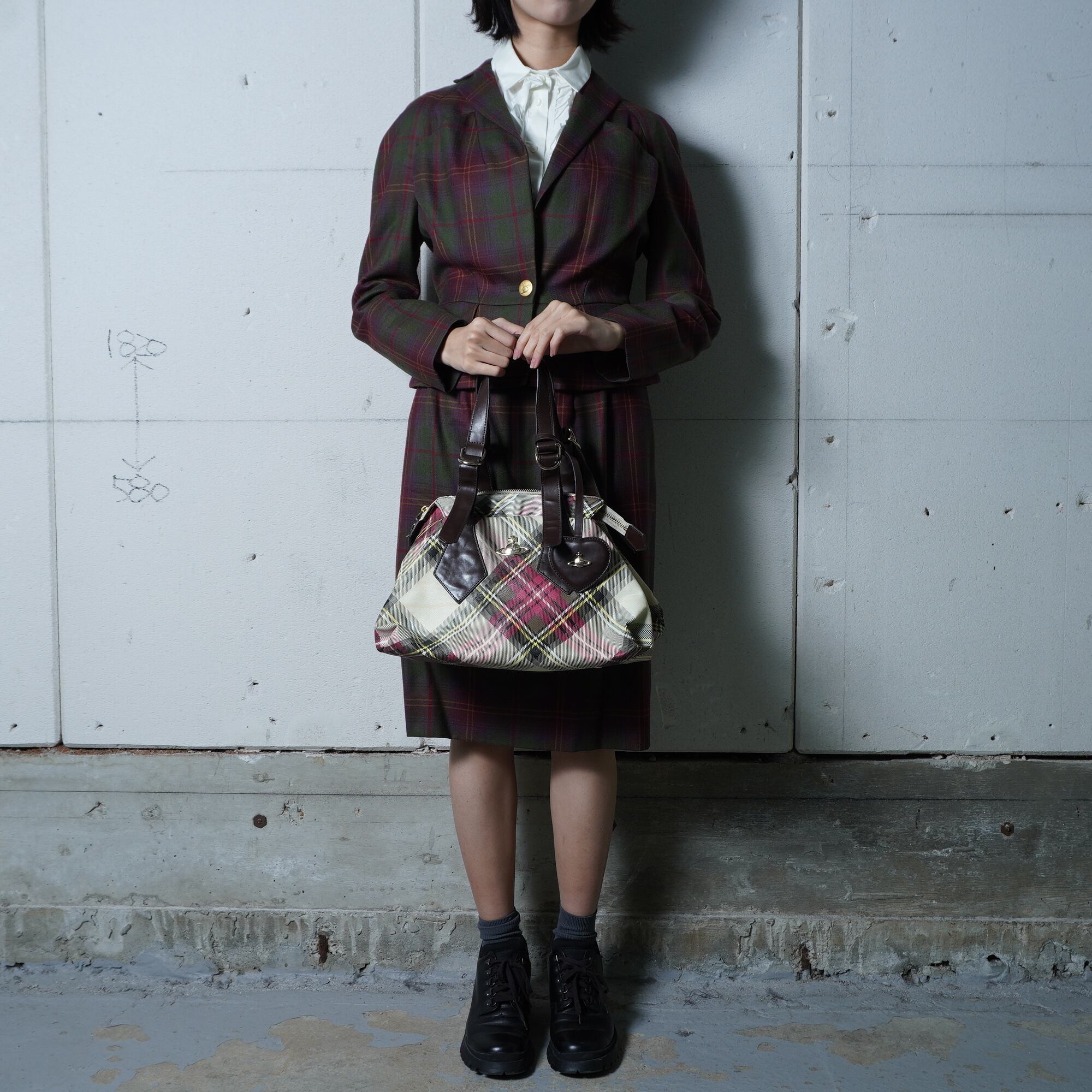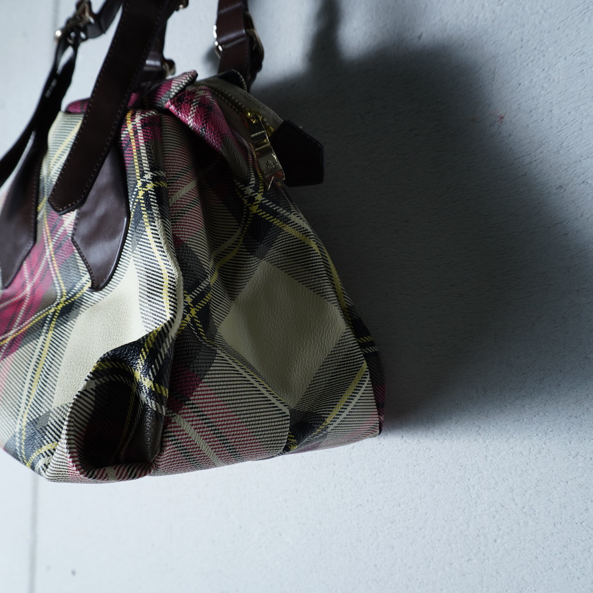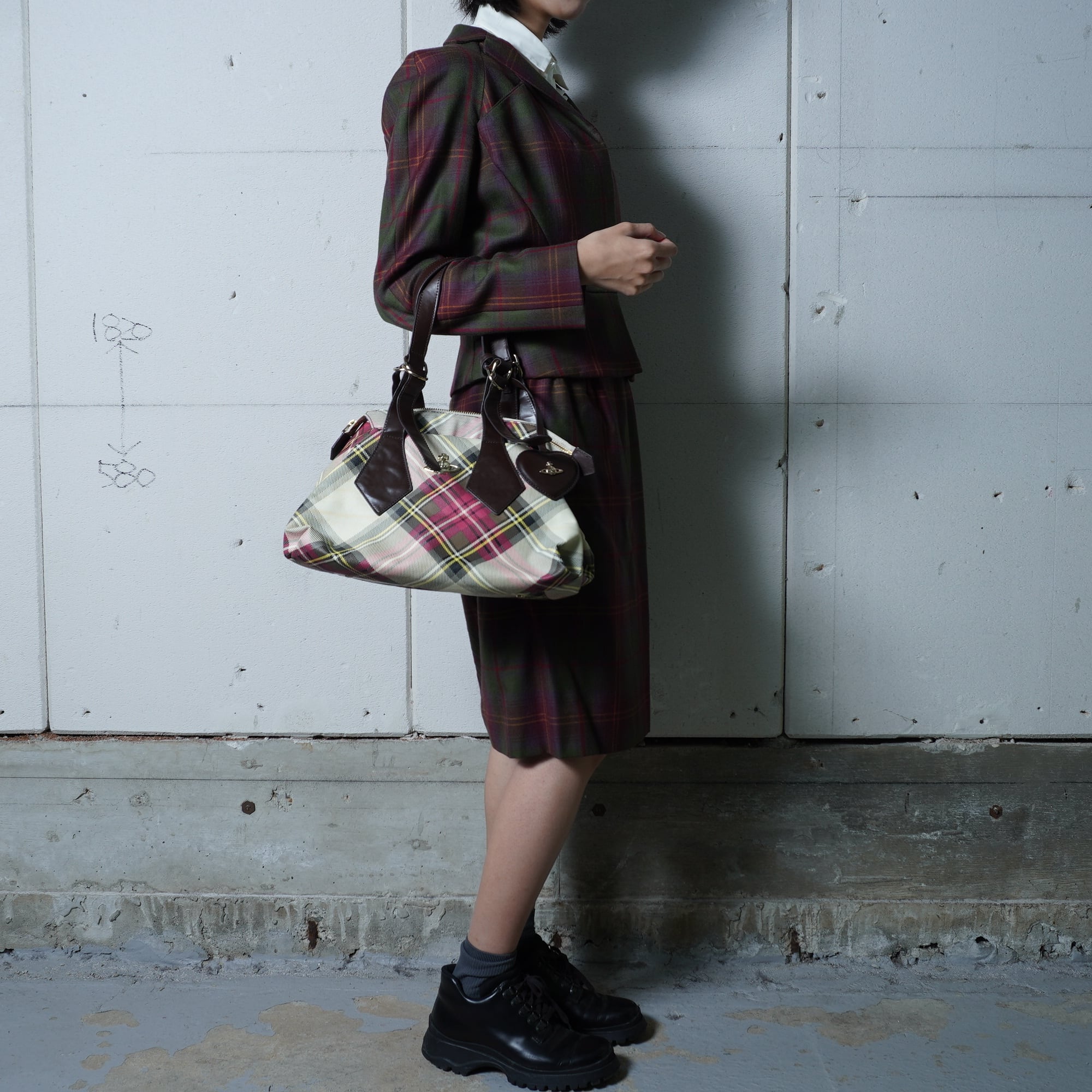 【Vivienne Westwood】ヴィヴィアンウエストウッド "オーブロゴ" ヤスミンリアルレザークロスチェックハンドバッグ red&beige&yellow