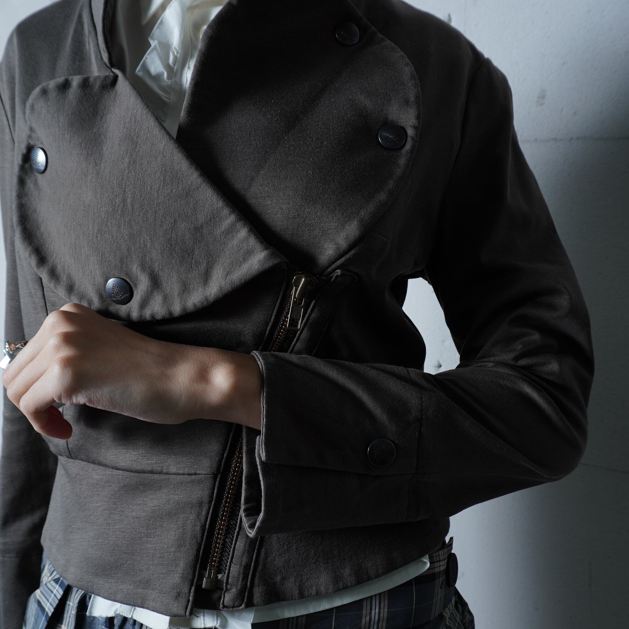 ・ヴィヴィアンウエストウッドのアイコニックなオーブロゴボタンが特徴