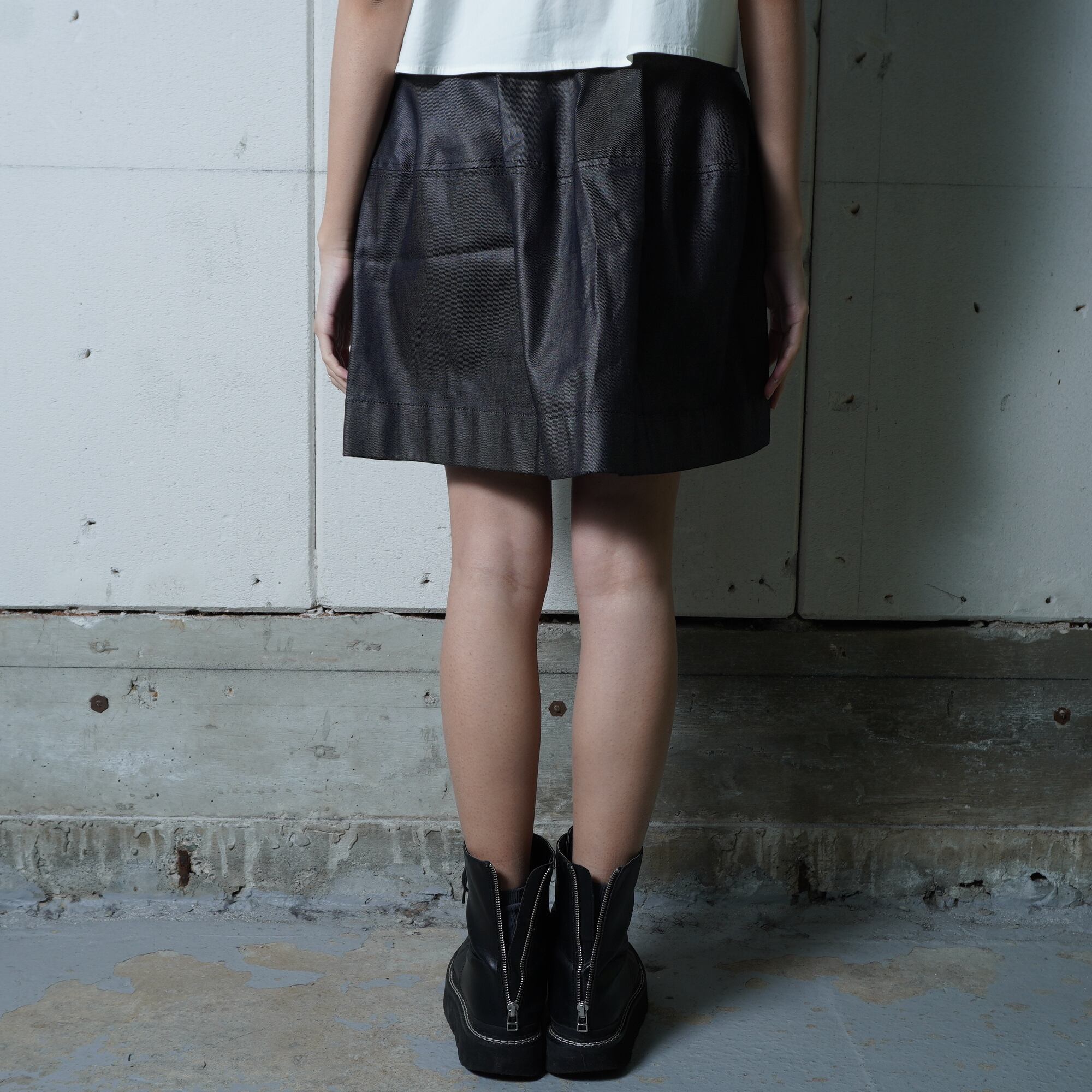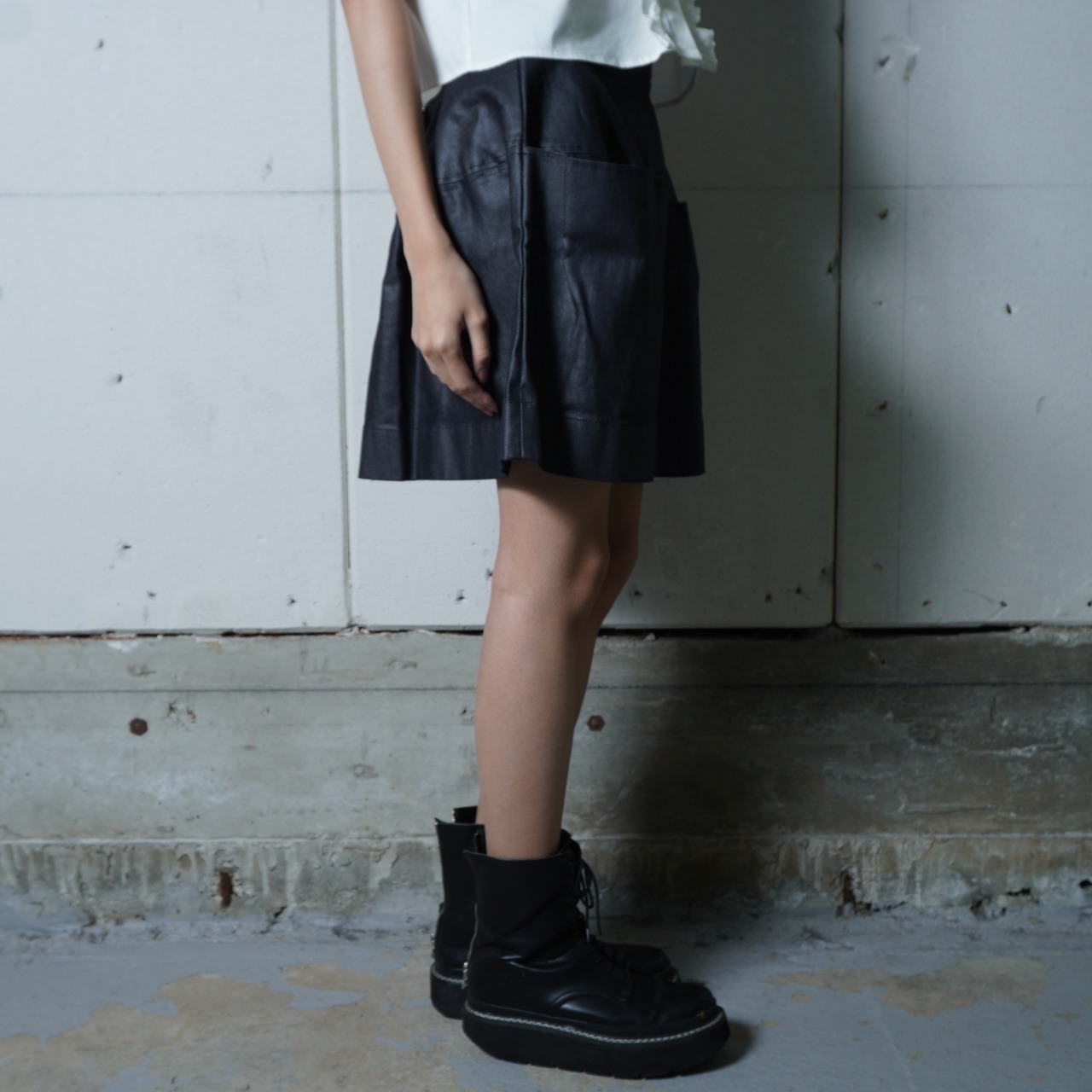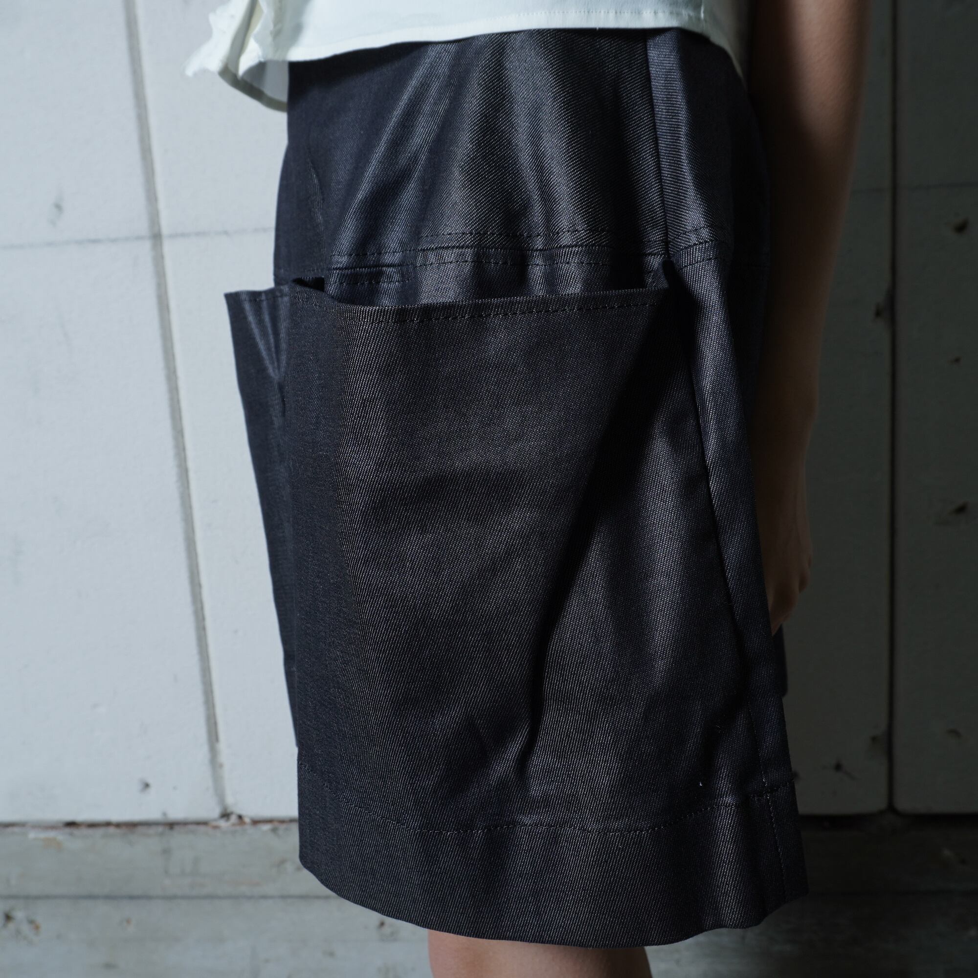 ・洗練された印象を与えるフロントポケットデニムスカート