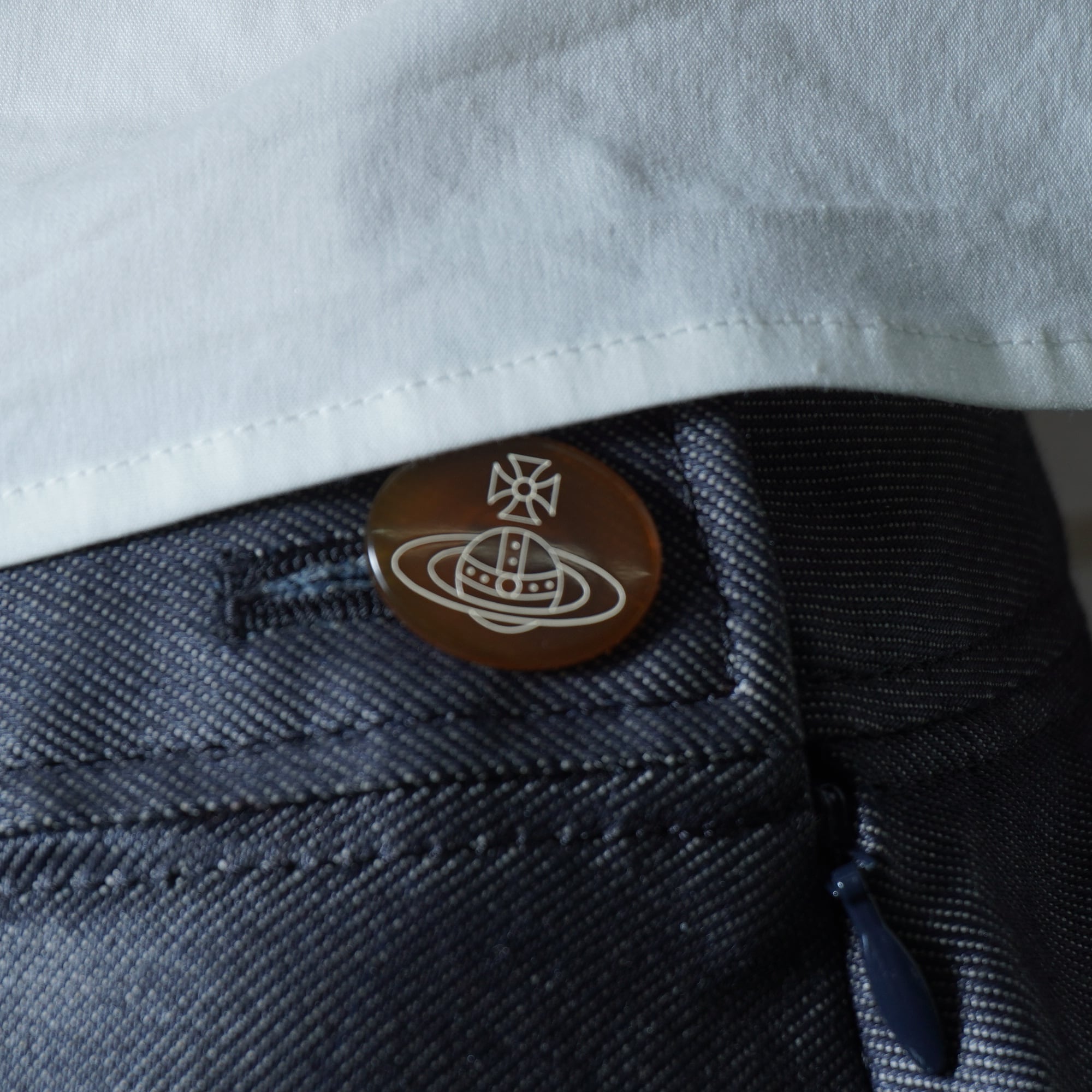 ・ヴィヴィアンウエストウッドのアイコンであるオーブロゴボタンがさりげないアクセントに