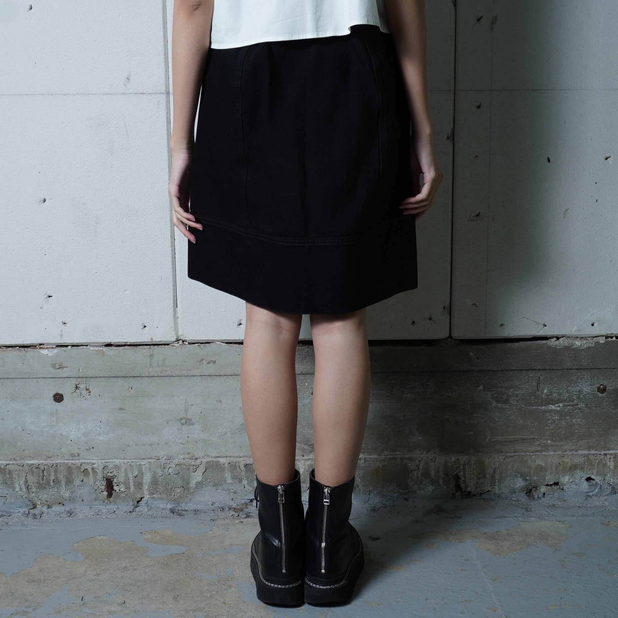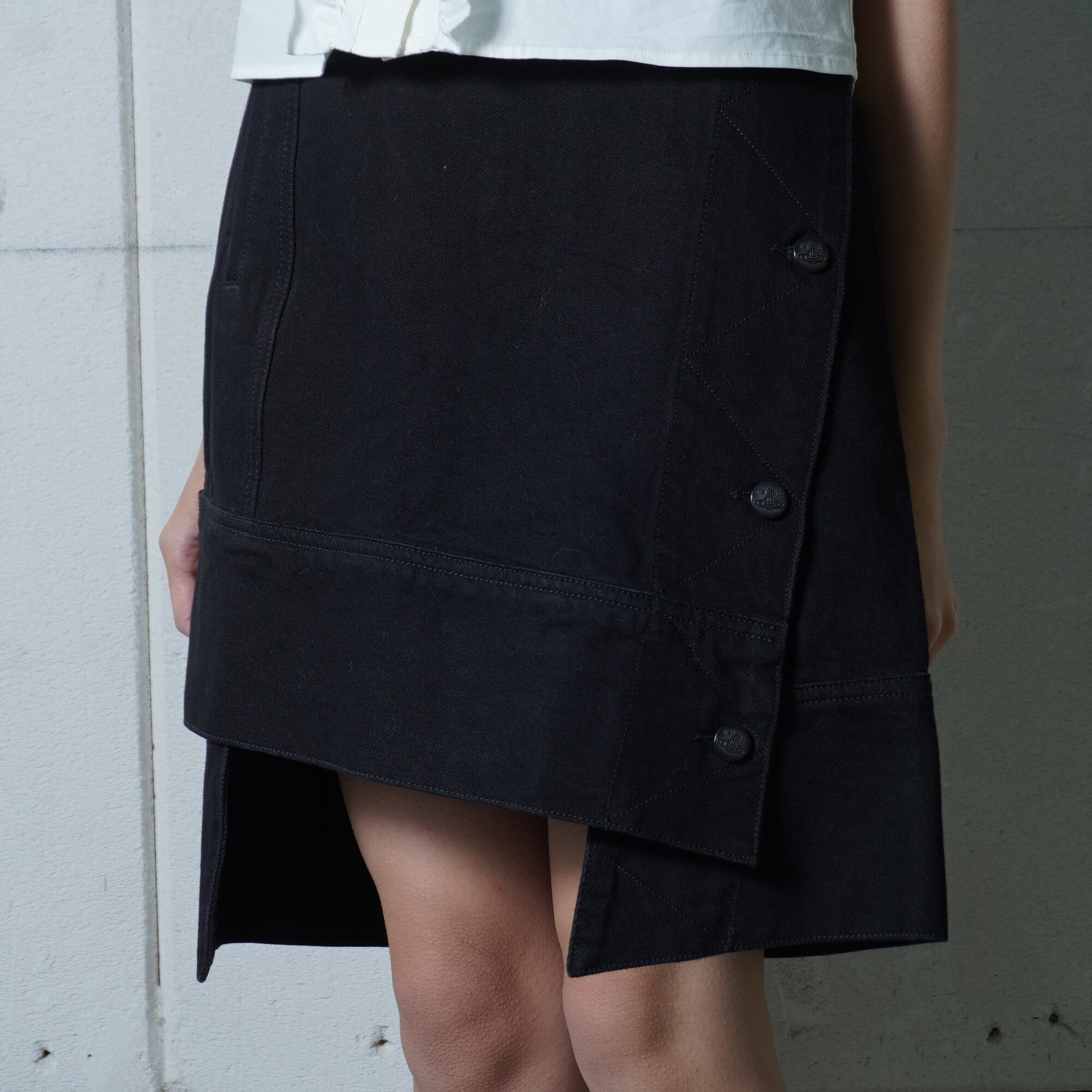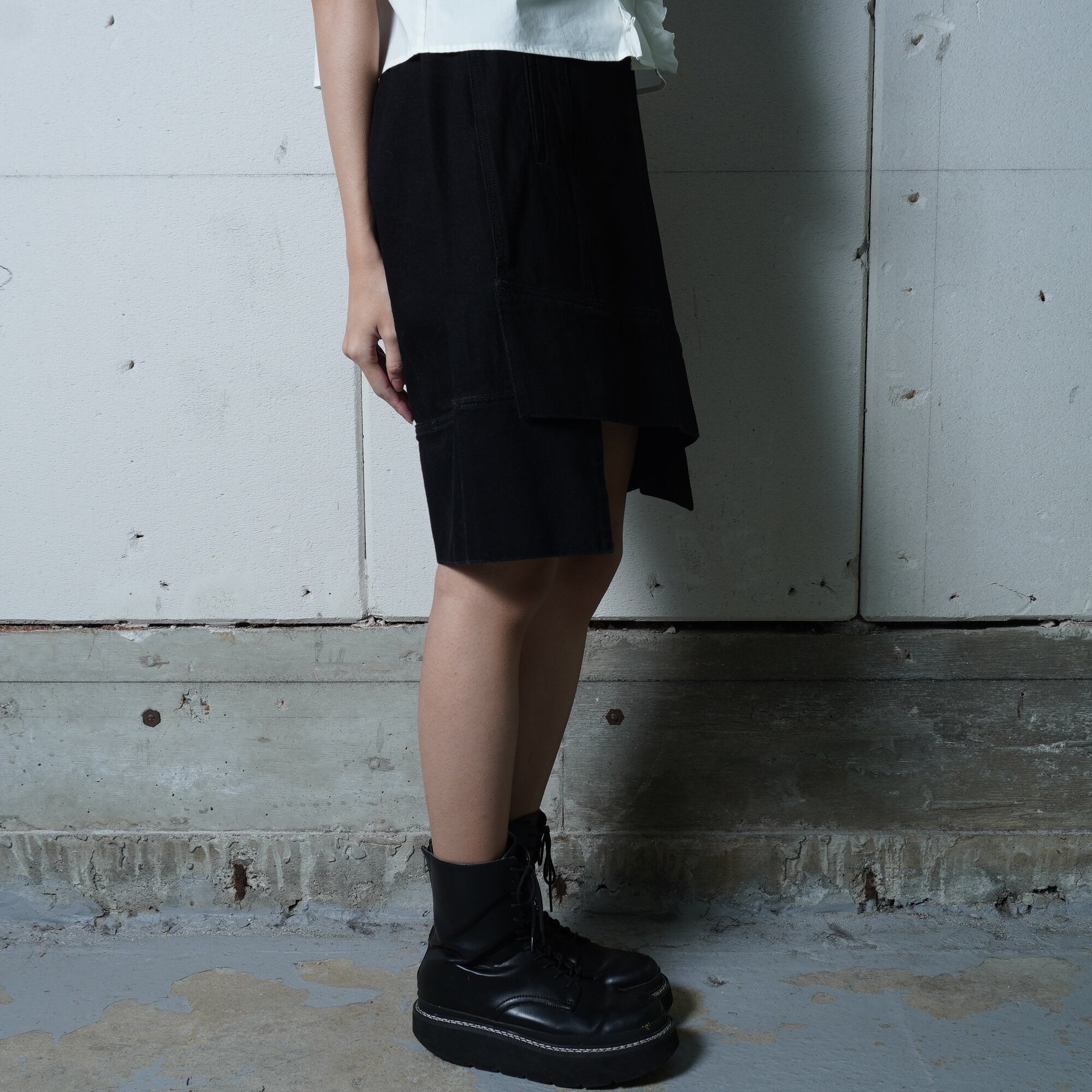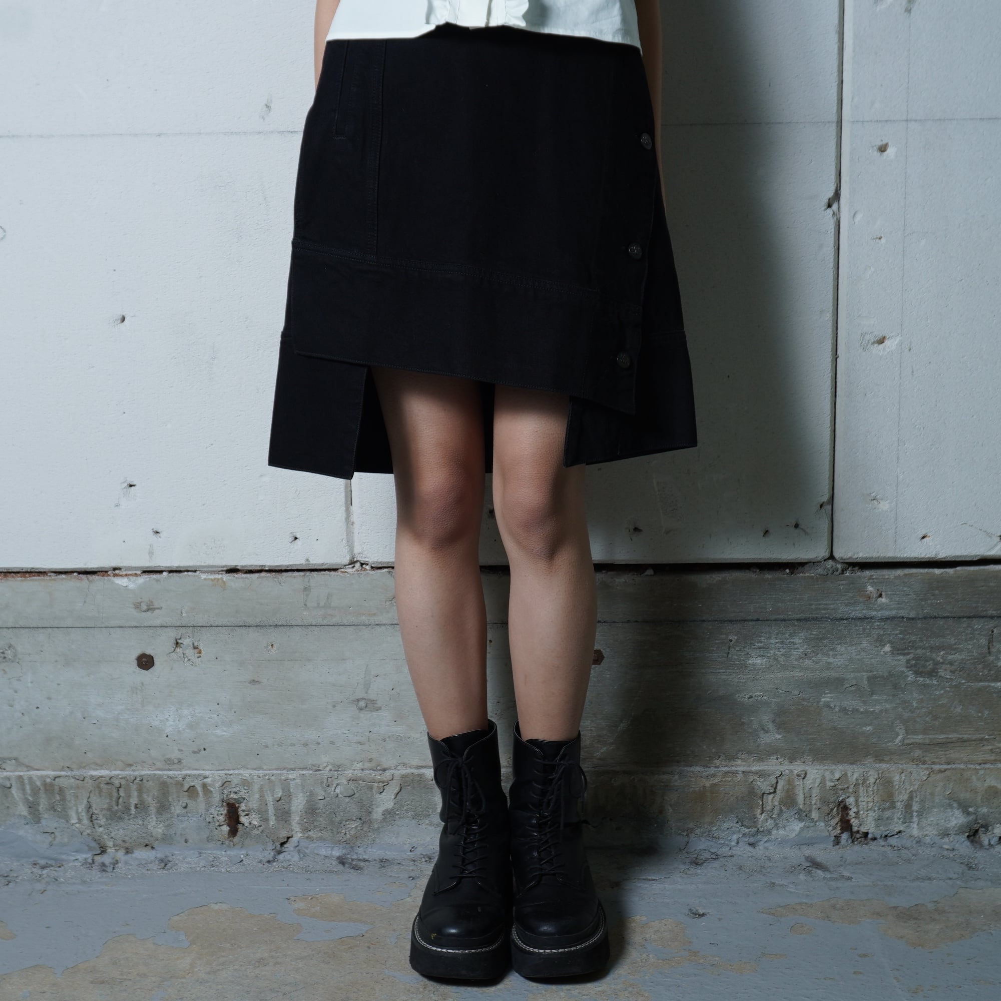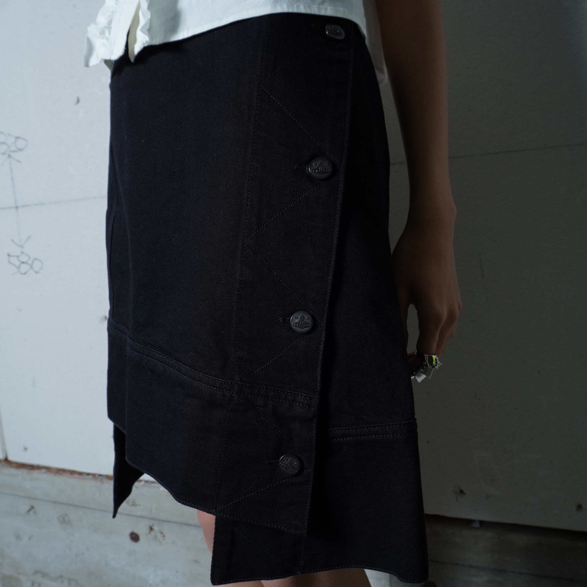 ・洗練された雰囲気を醸し出す変形デザインのラップスカート