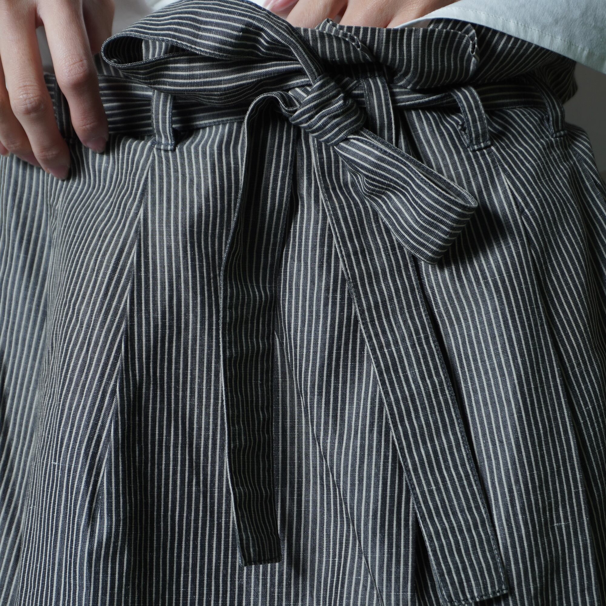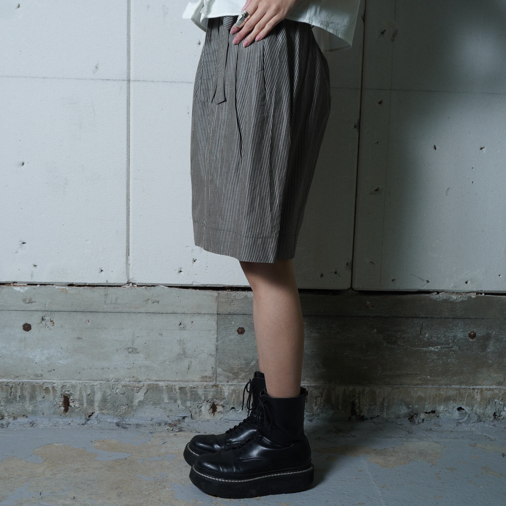 ・洗練された雰囲気を演出するベルト付ストライプスカート