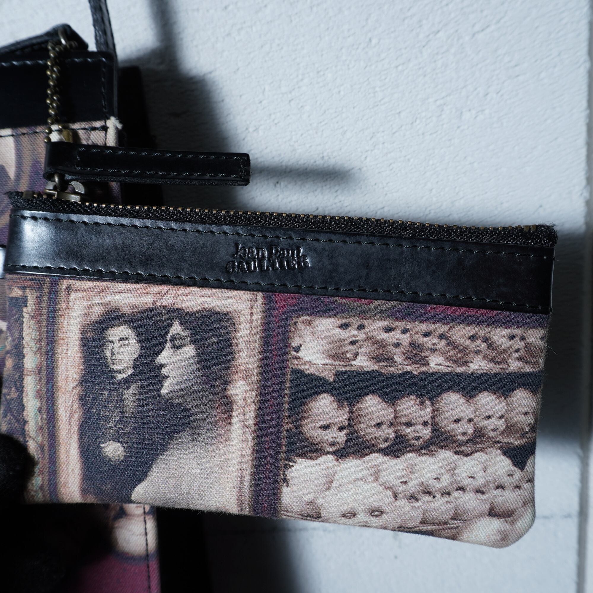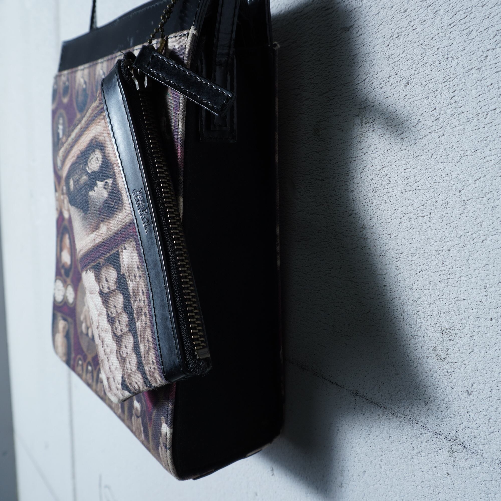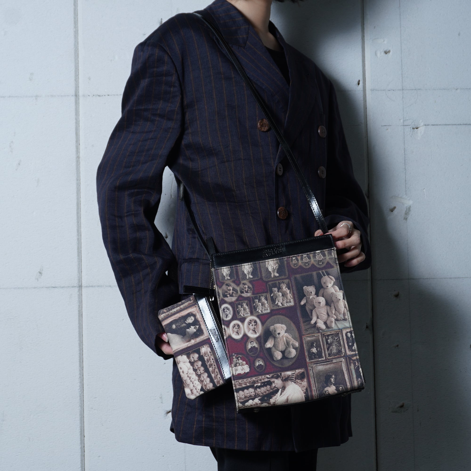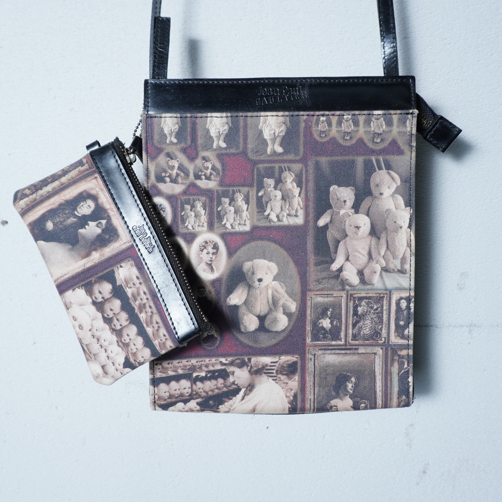 【Jean Paul GAULTIER】ジャンポールゴルチエ "ロゴ入” "ARCHIVE" ミニポーチ付アンティークドール&テディベア柄ワンショルダーバッグ black&beige&red | MIXHIVE