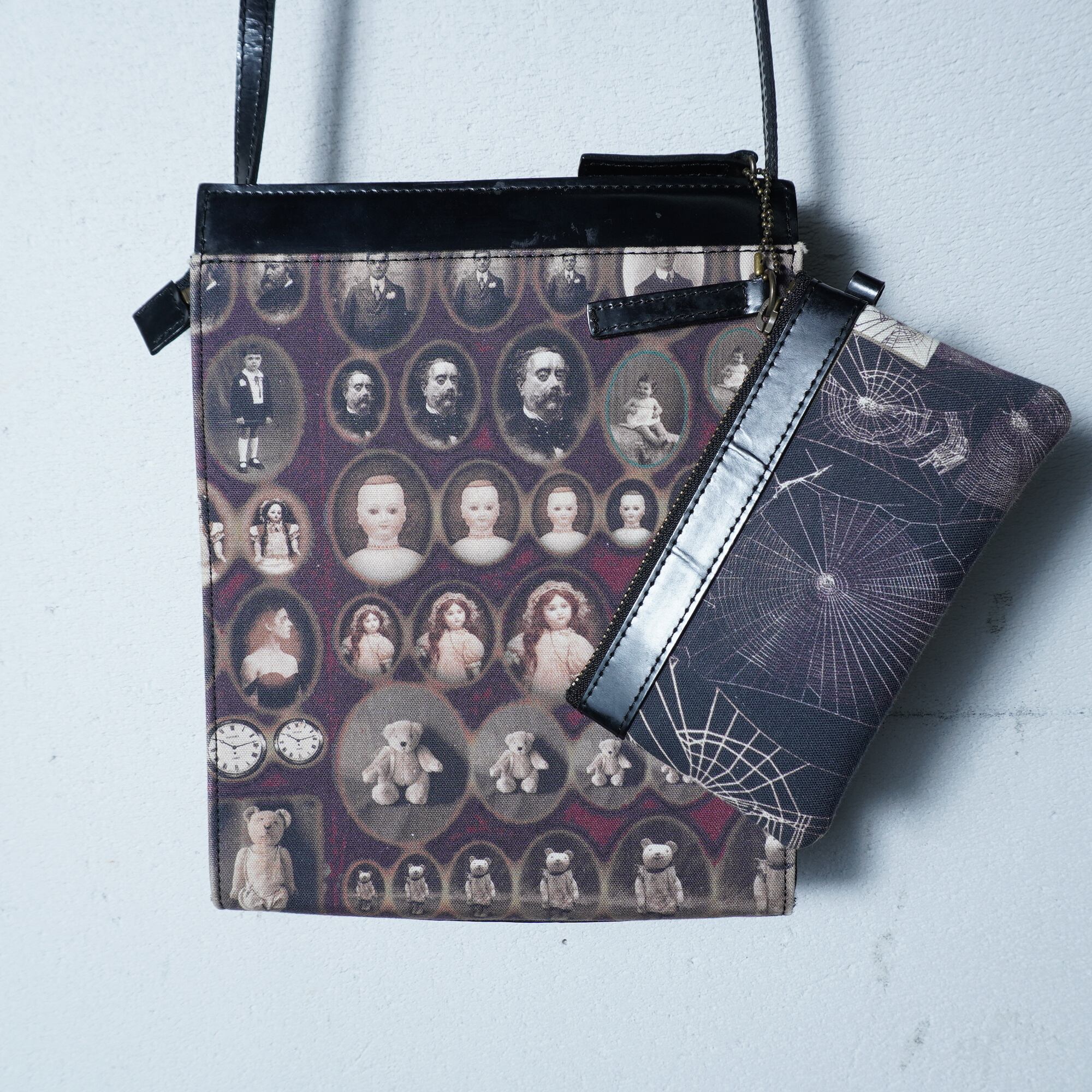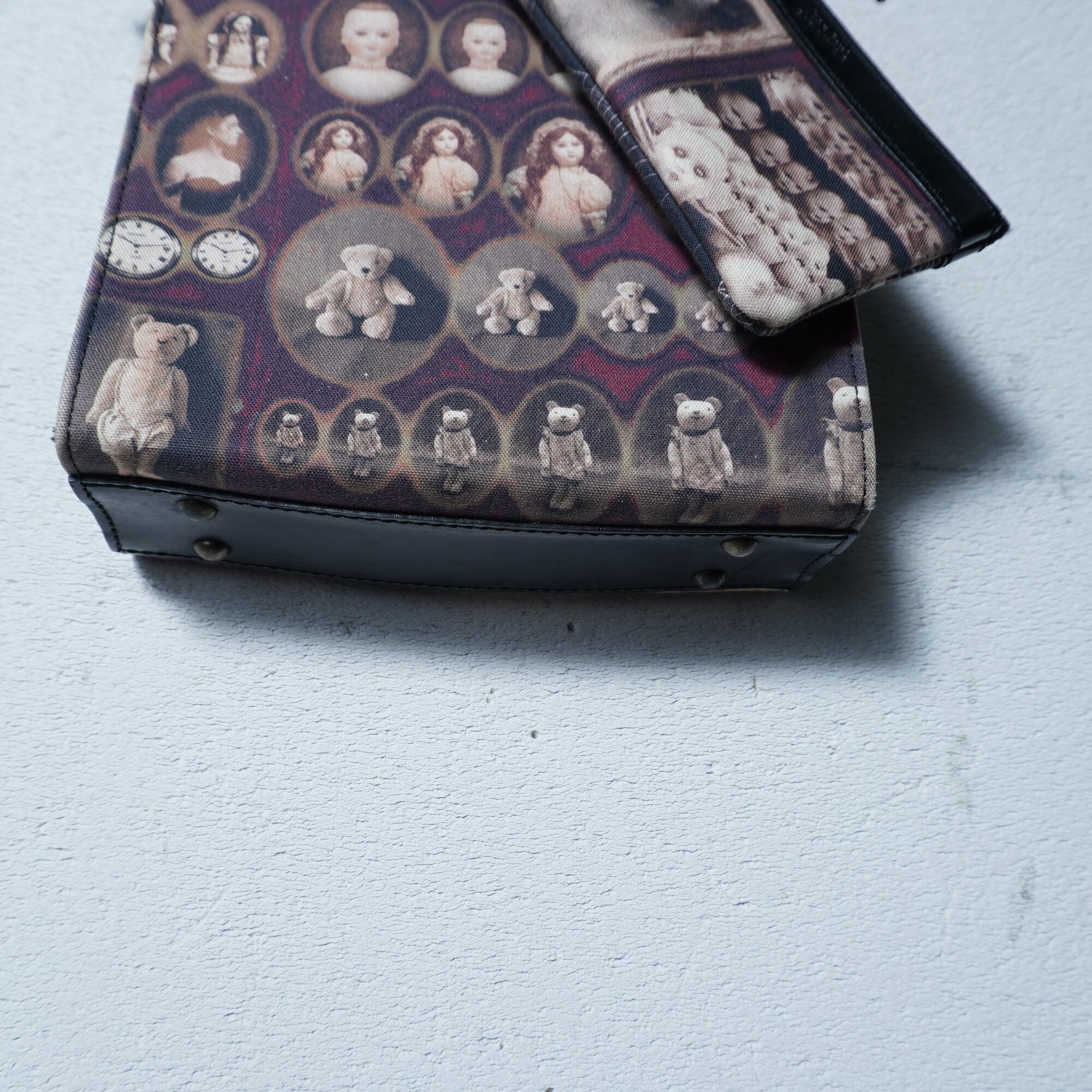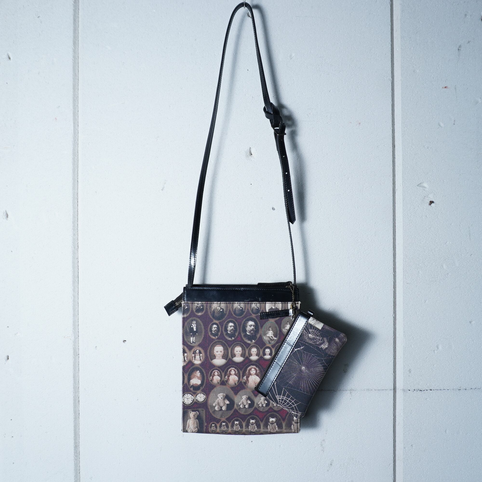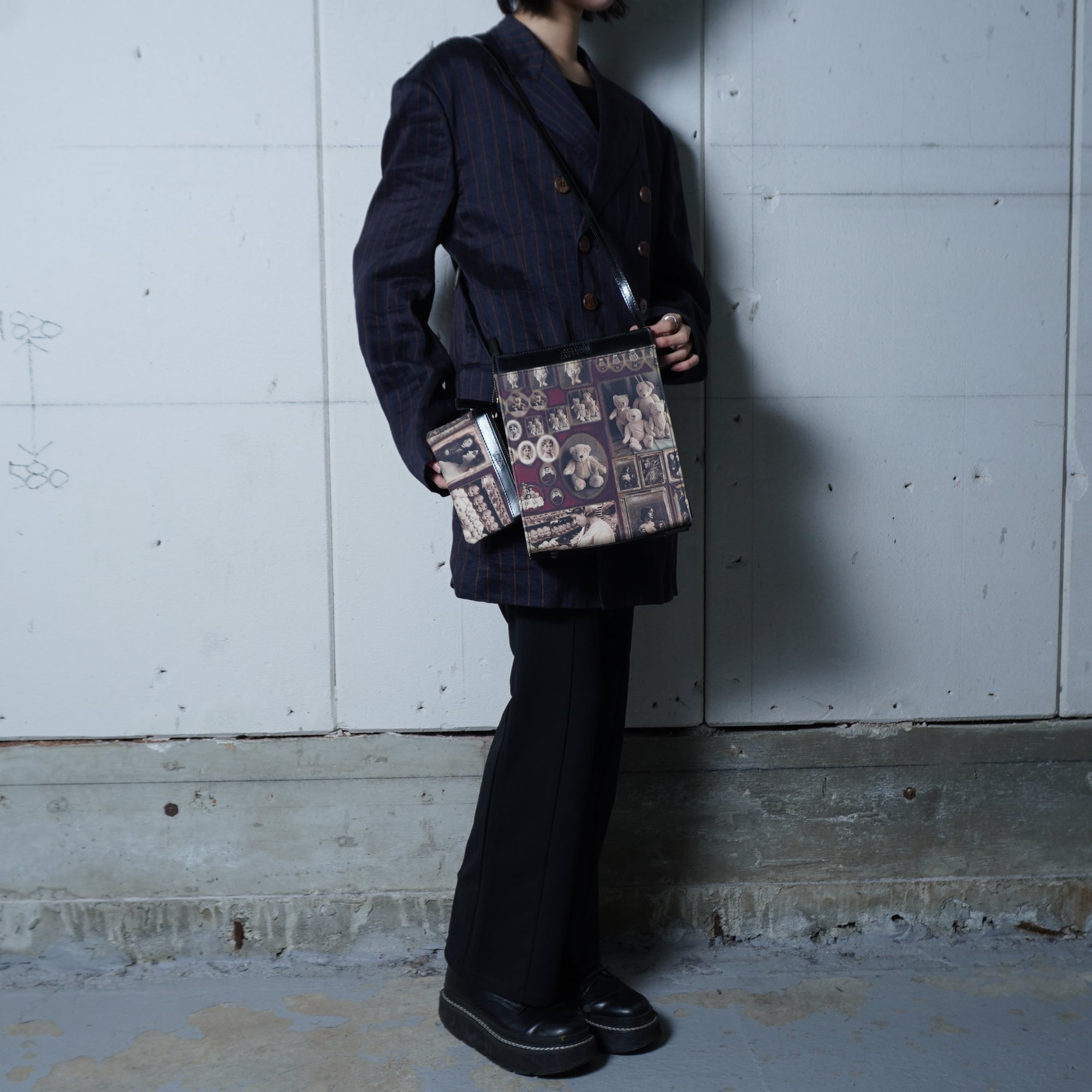 【Jean Paul GAULTIER】ジャンポールゴルチエ "ロゴ入” "ARCHIVE" ミニポーチ付アンティークドール&テディベア柄ワンショルダーバッグ black&beige&red | MIXHIVE