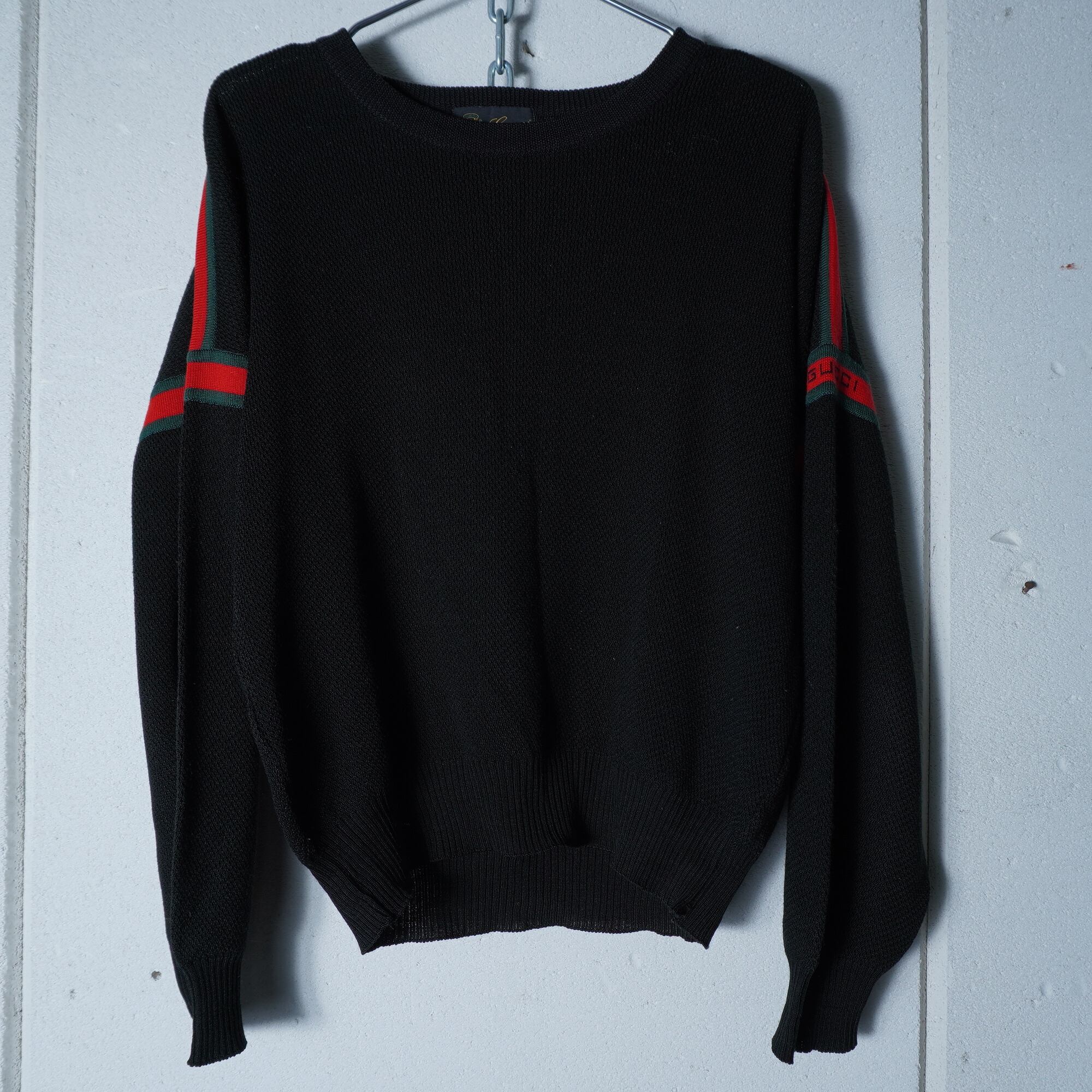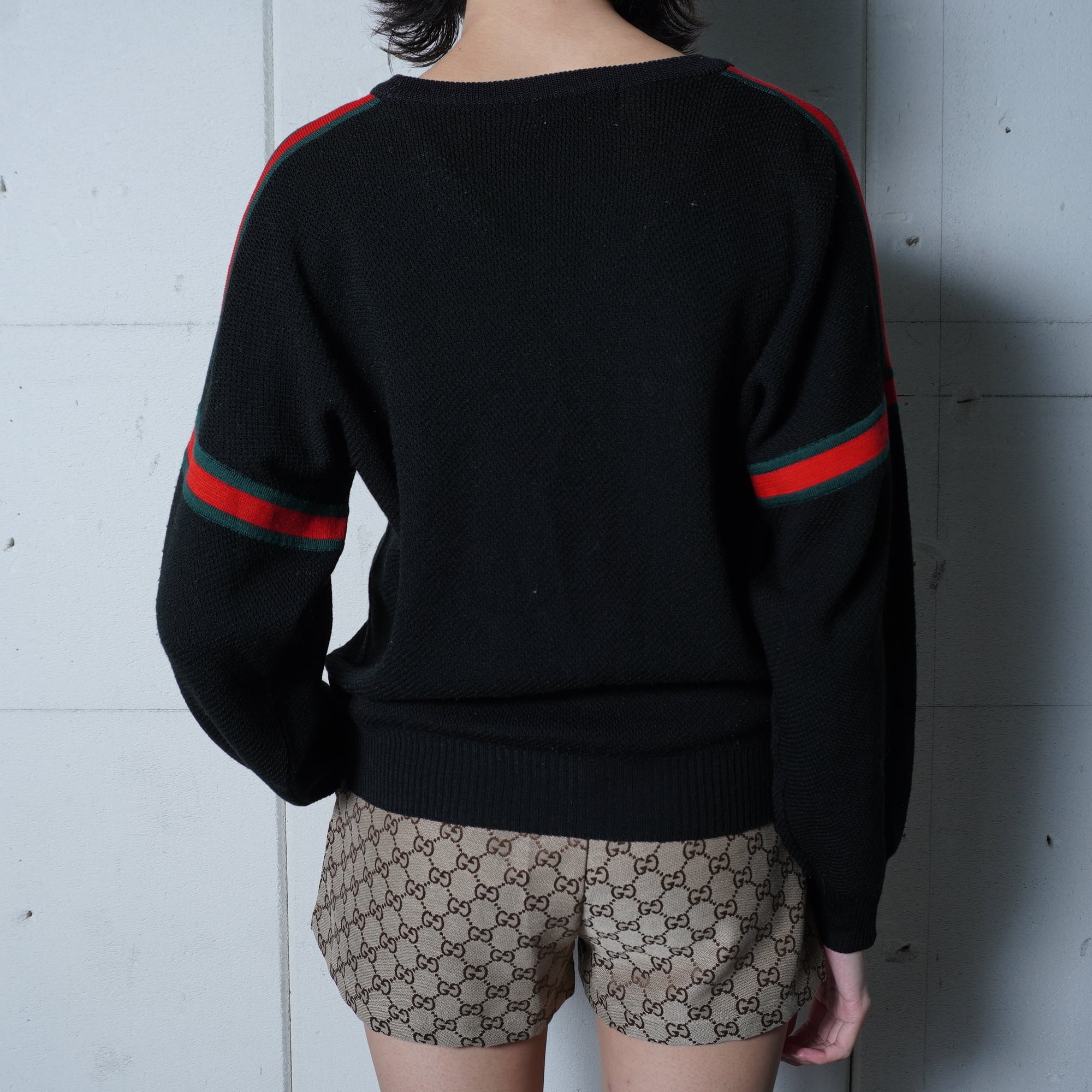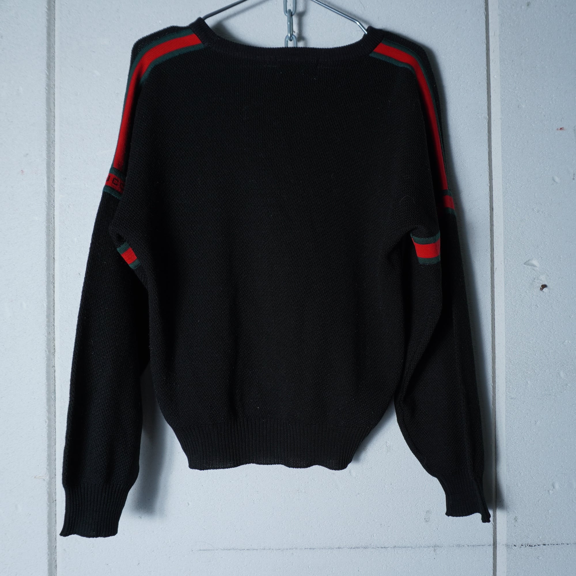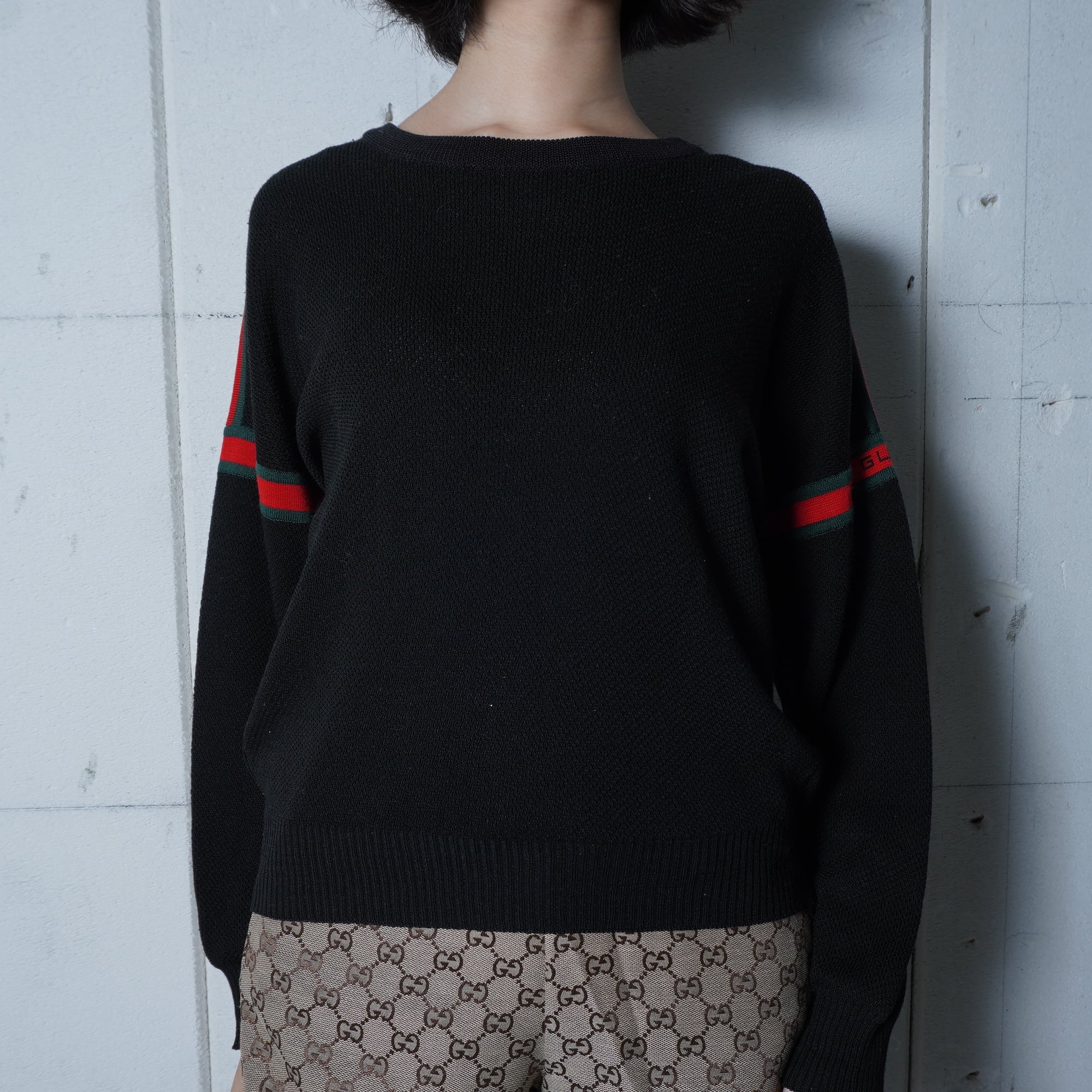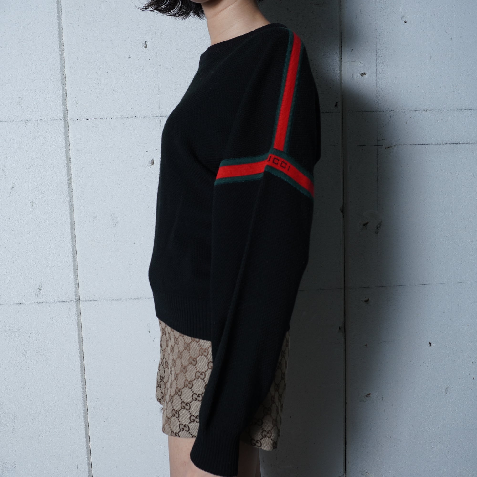 【GUCCI】グッチ シェリーライン袖ロゴ入ロングスリーブニット black