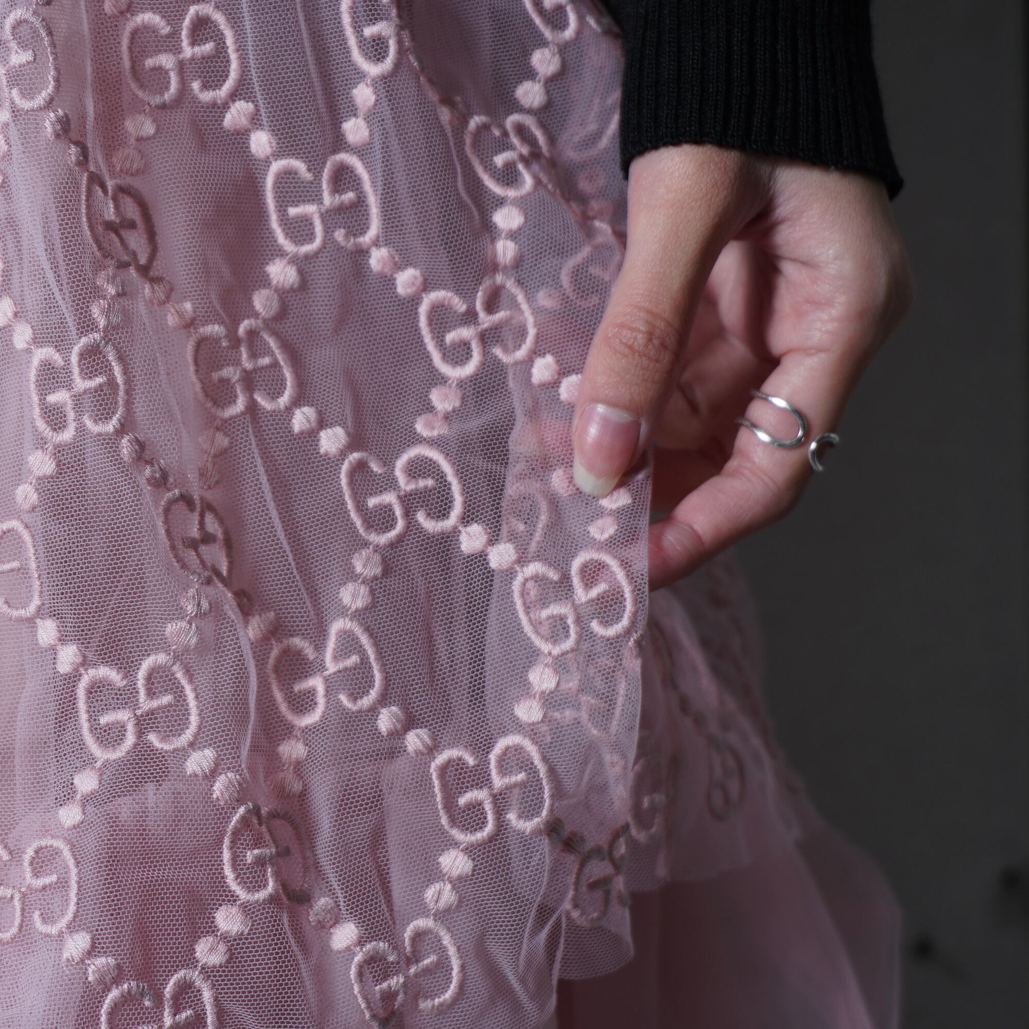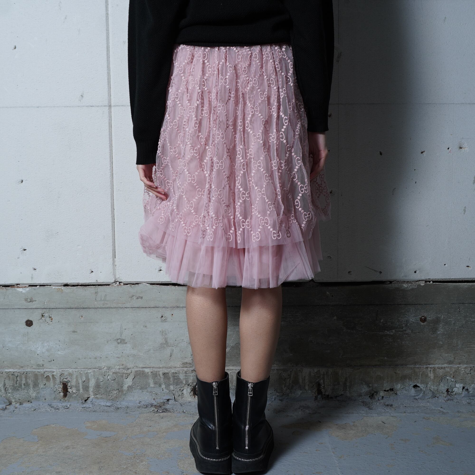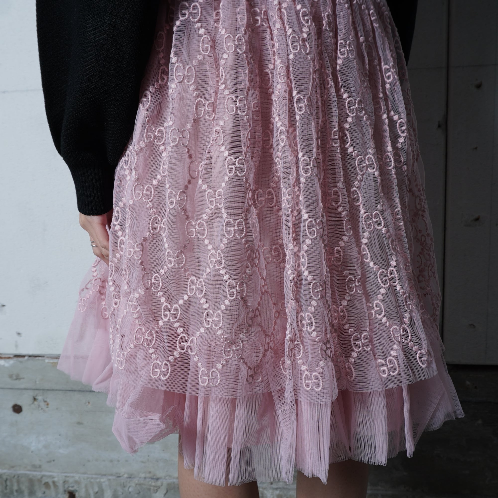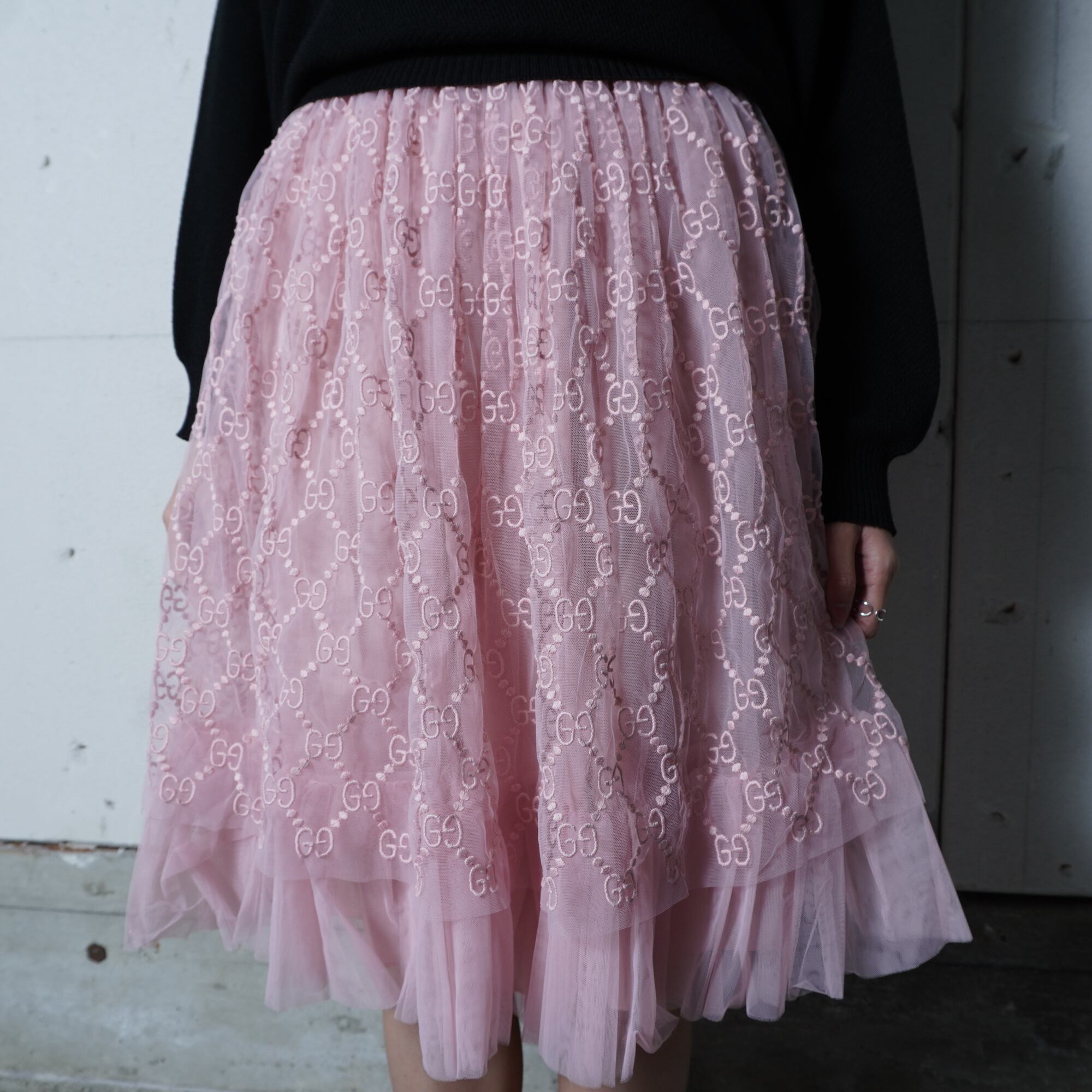 ・GUCCIの「GG総柄」エンブロイダリ―チュールスカート