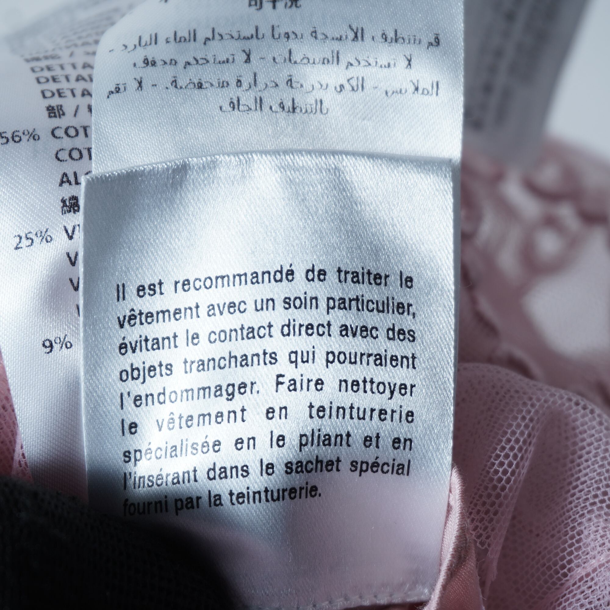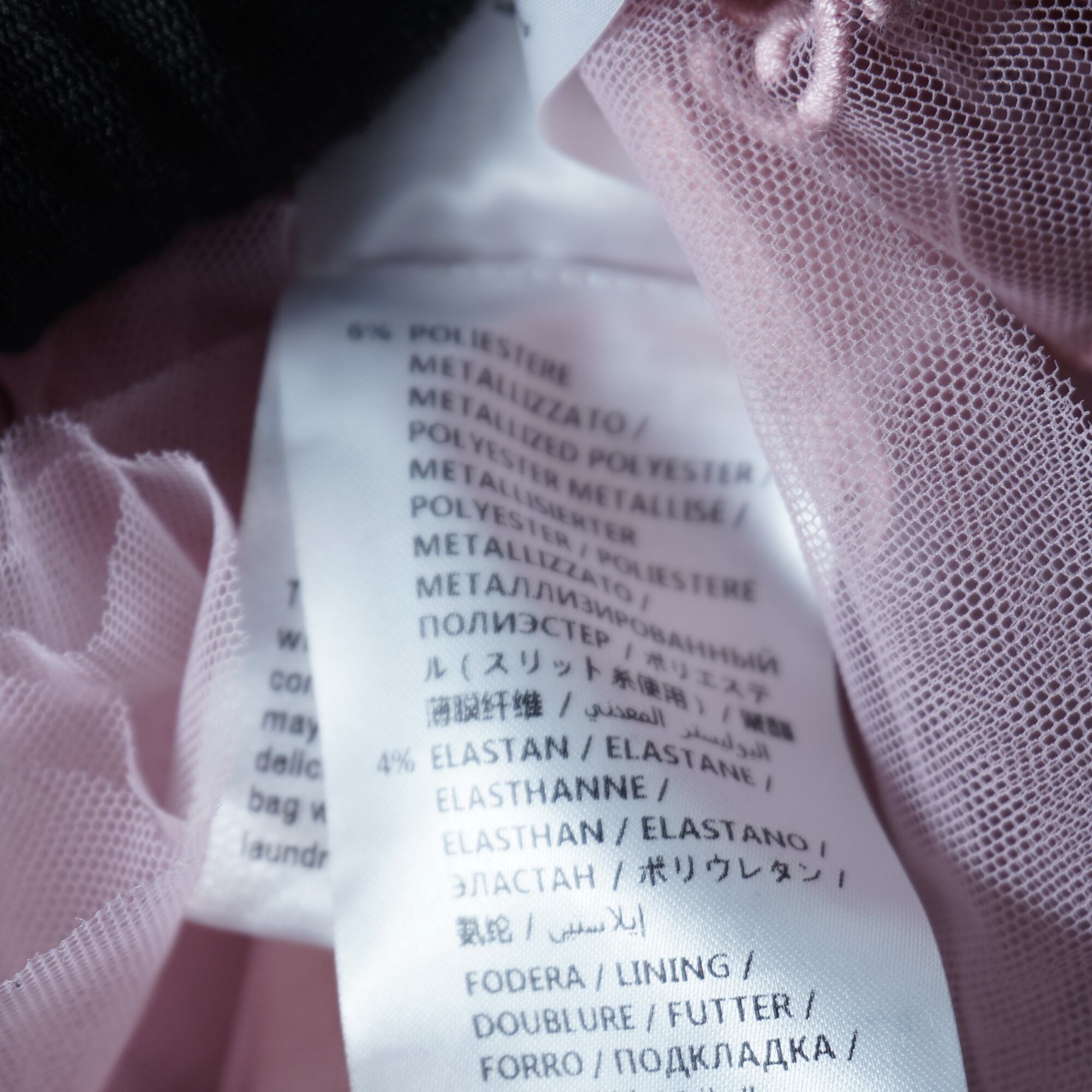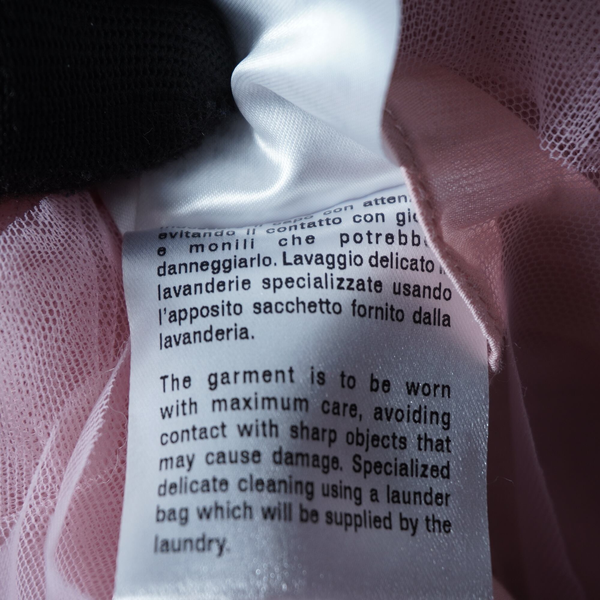 ・上品なピンク色と、繊細な刺繍が施されたチュール素材が、エレガントな印象を与える