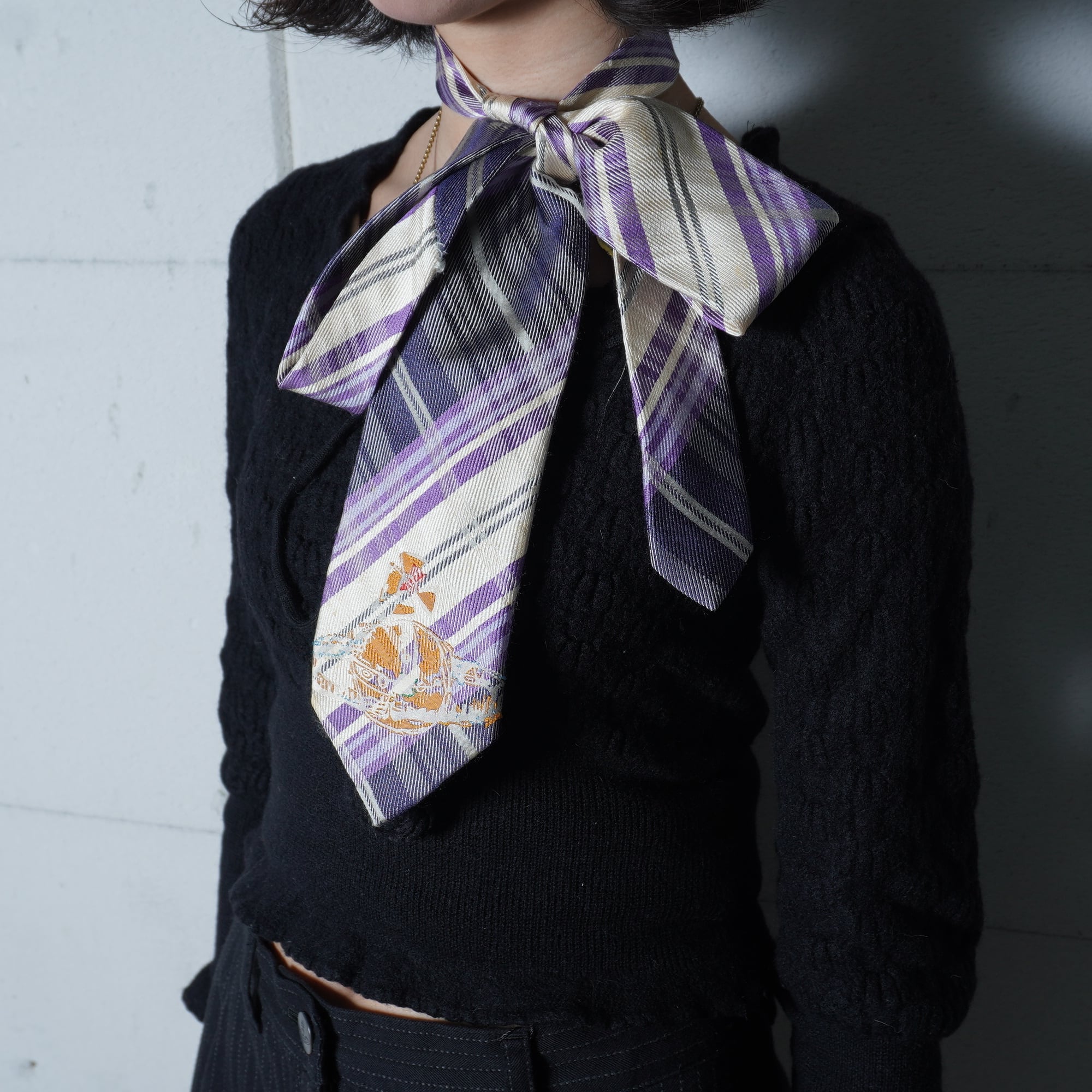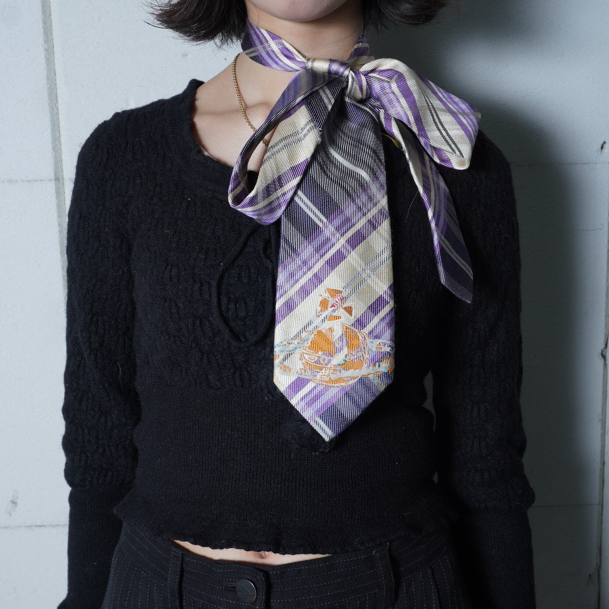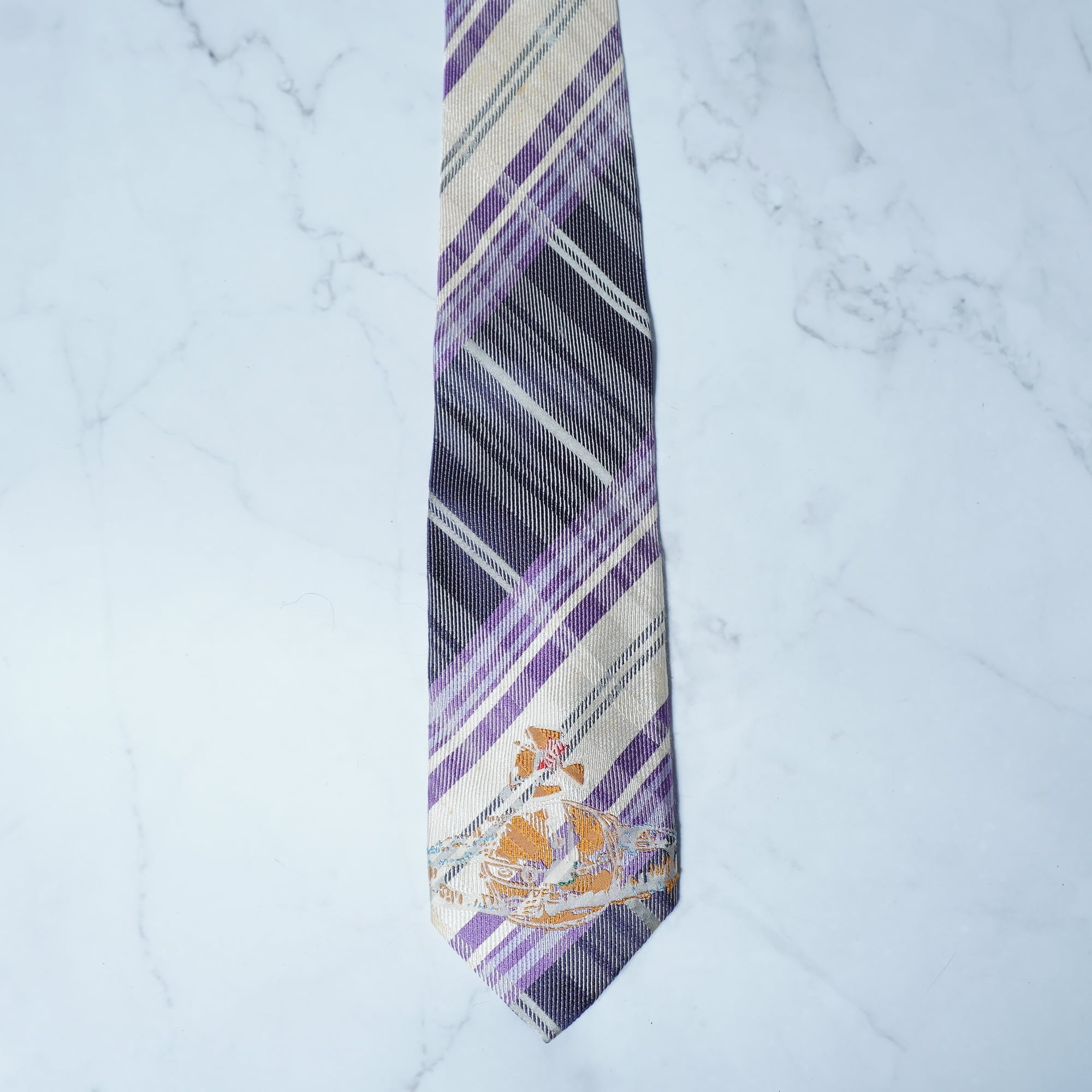 ・ホワイトとネイビーのクロスチェックデザインにオーブロゴが光り、個性を演出する