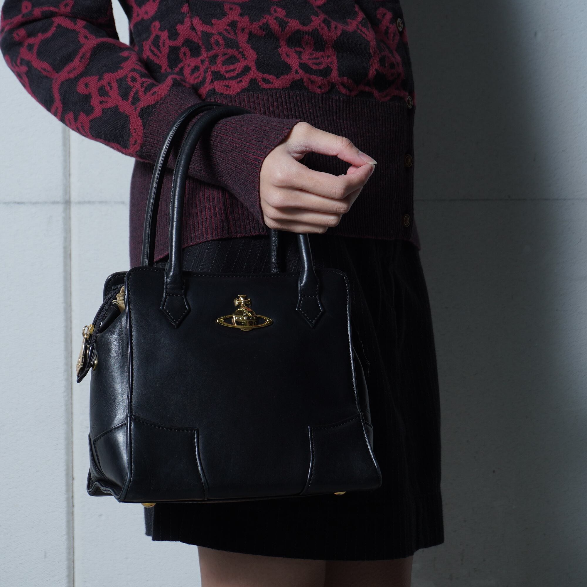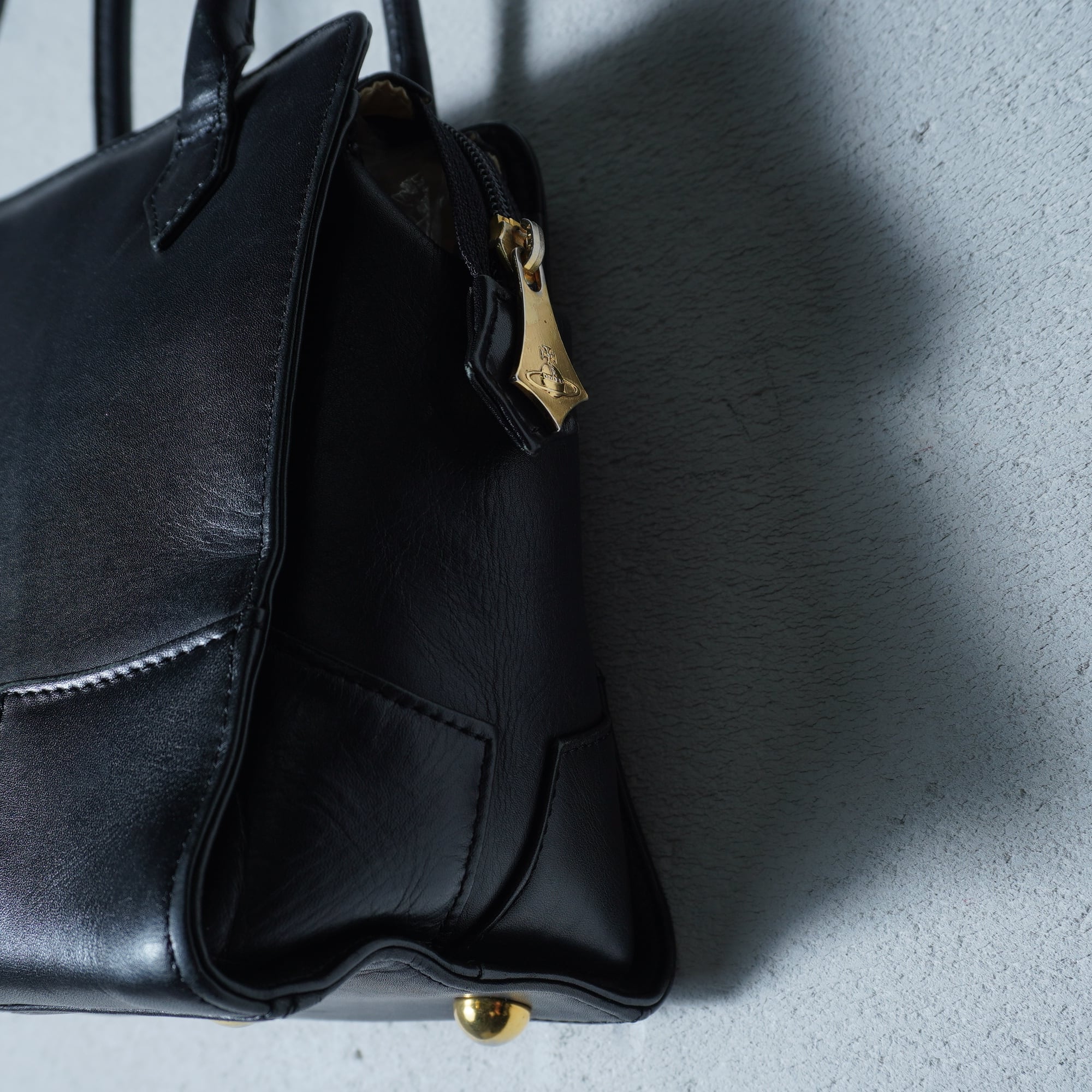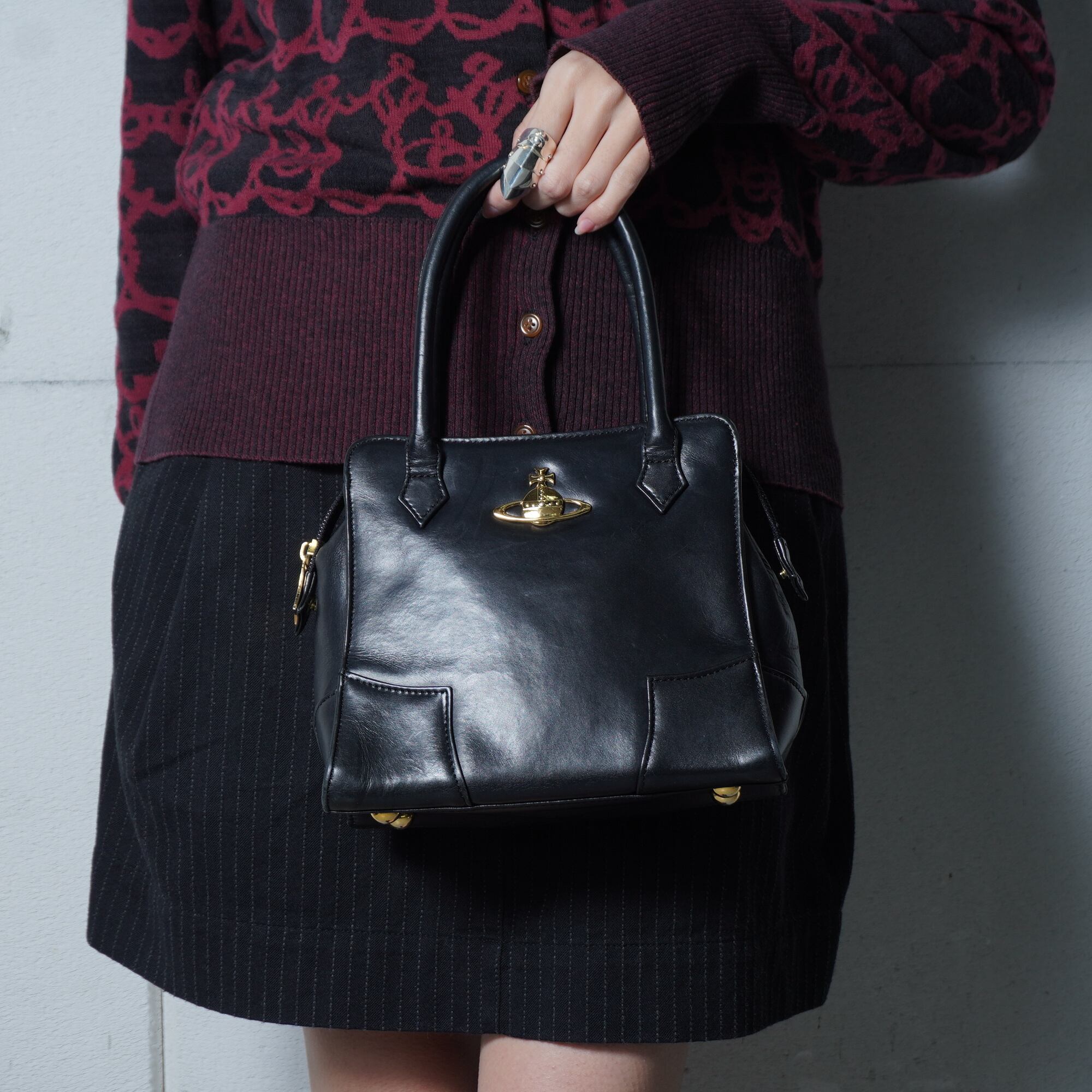【Vivienne Westwood】ヴィヴィアンウエストウッド オーブロゴ レザーハンドバッグ black