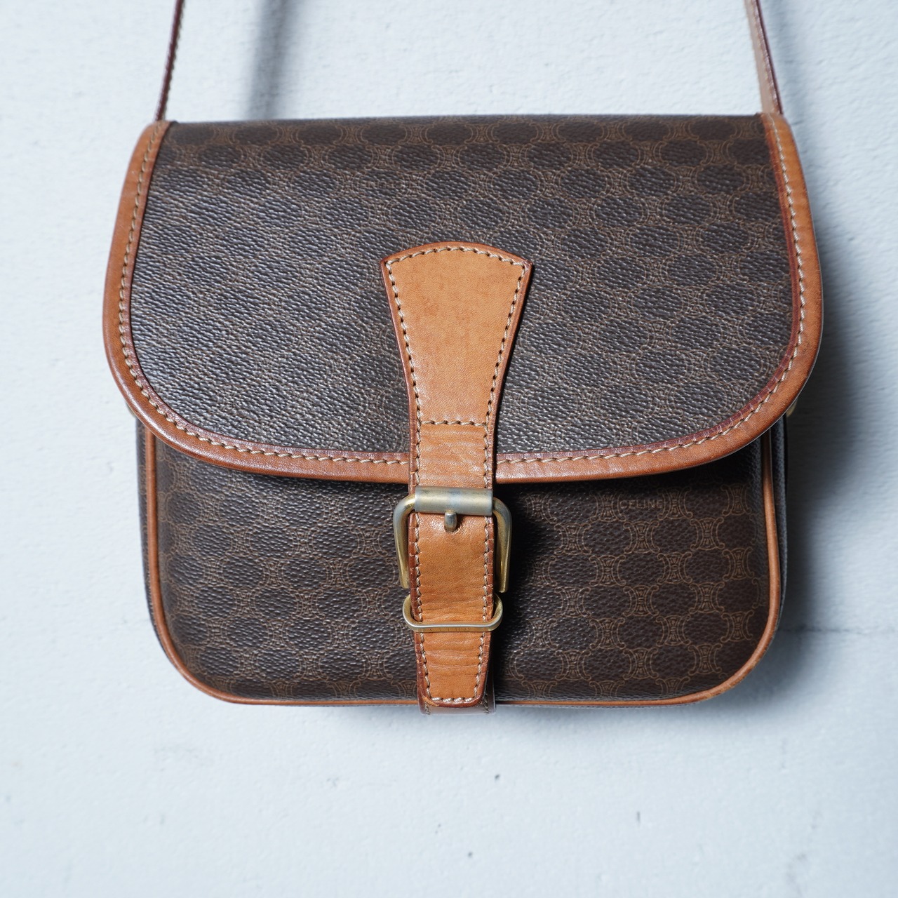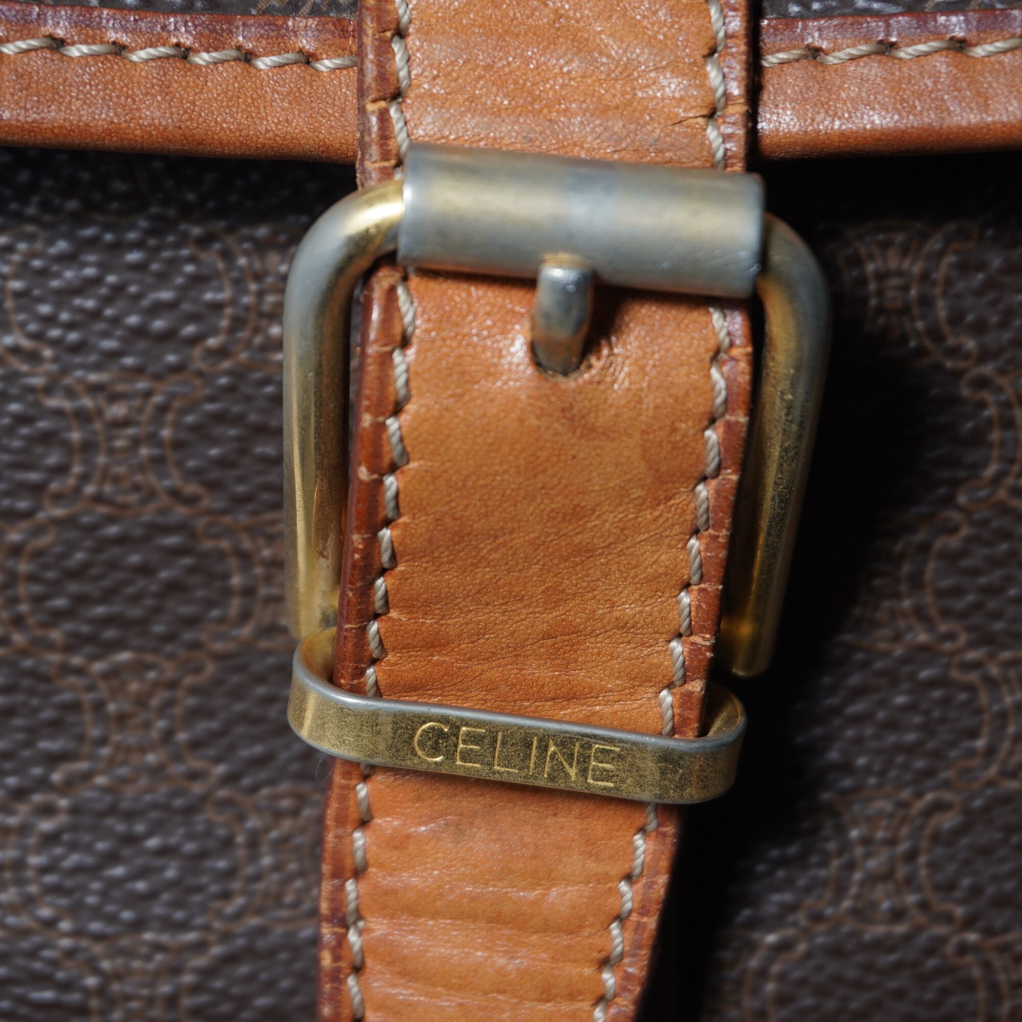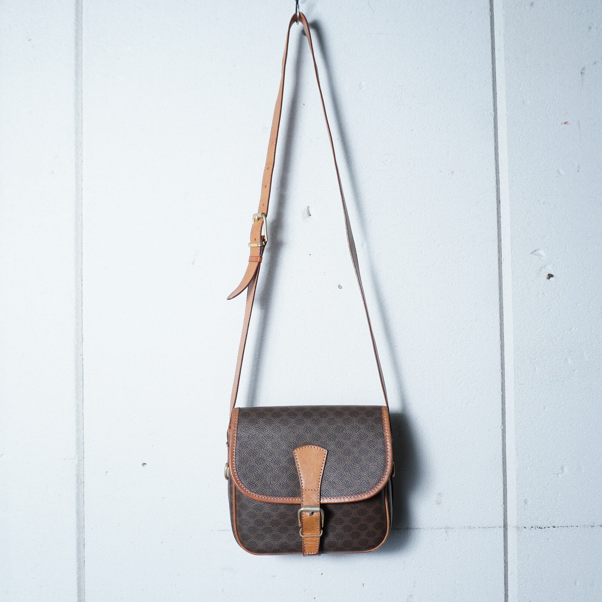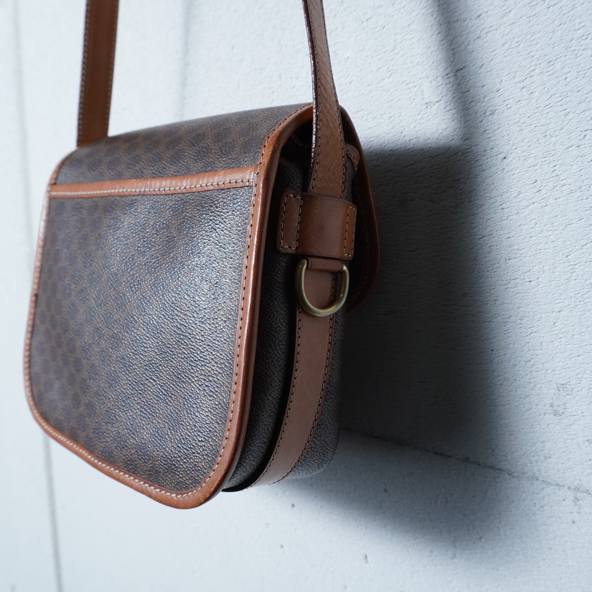 【CELINE】セリーヌ ”ロゴゴールド金具” マカダム柄レザーショルダーバッグ brown