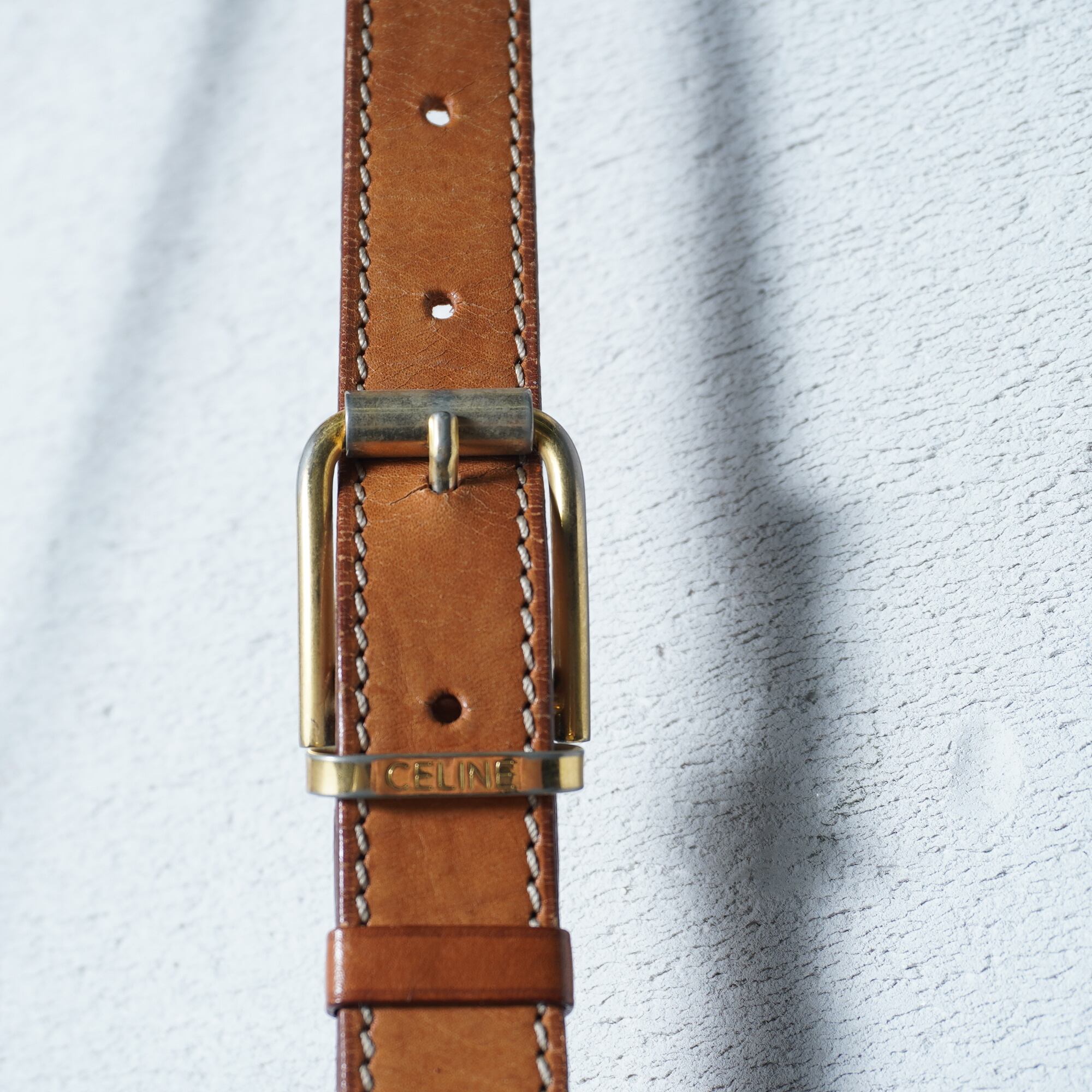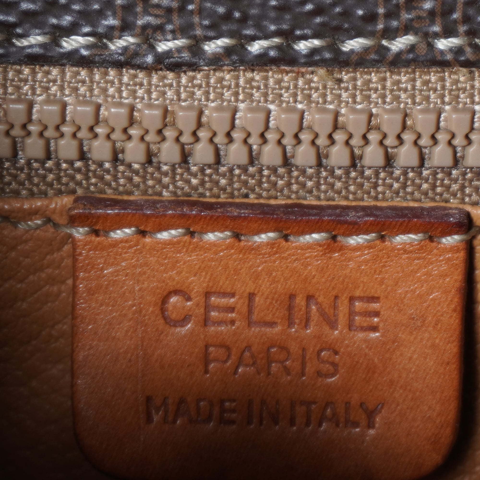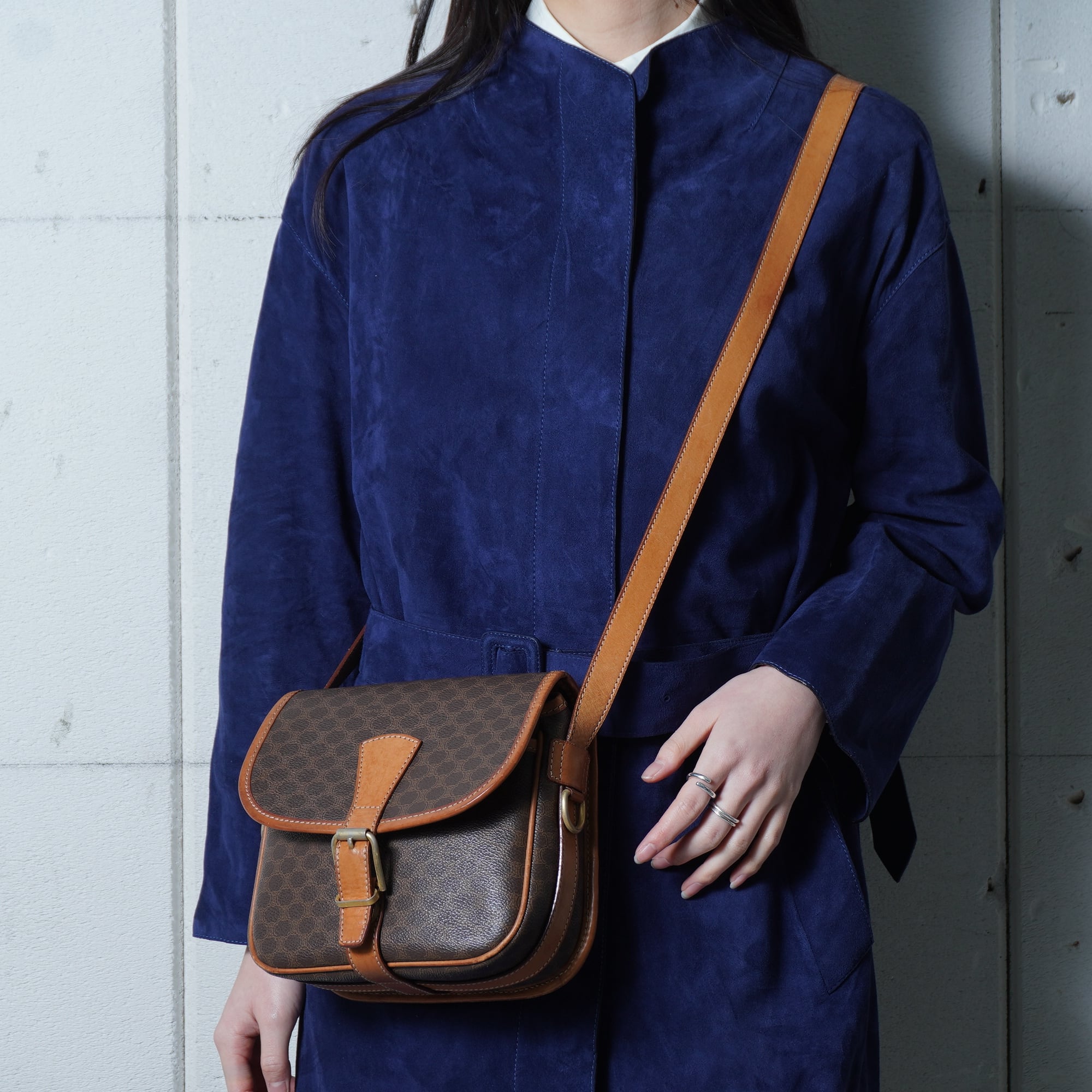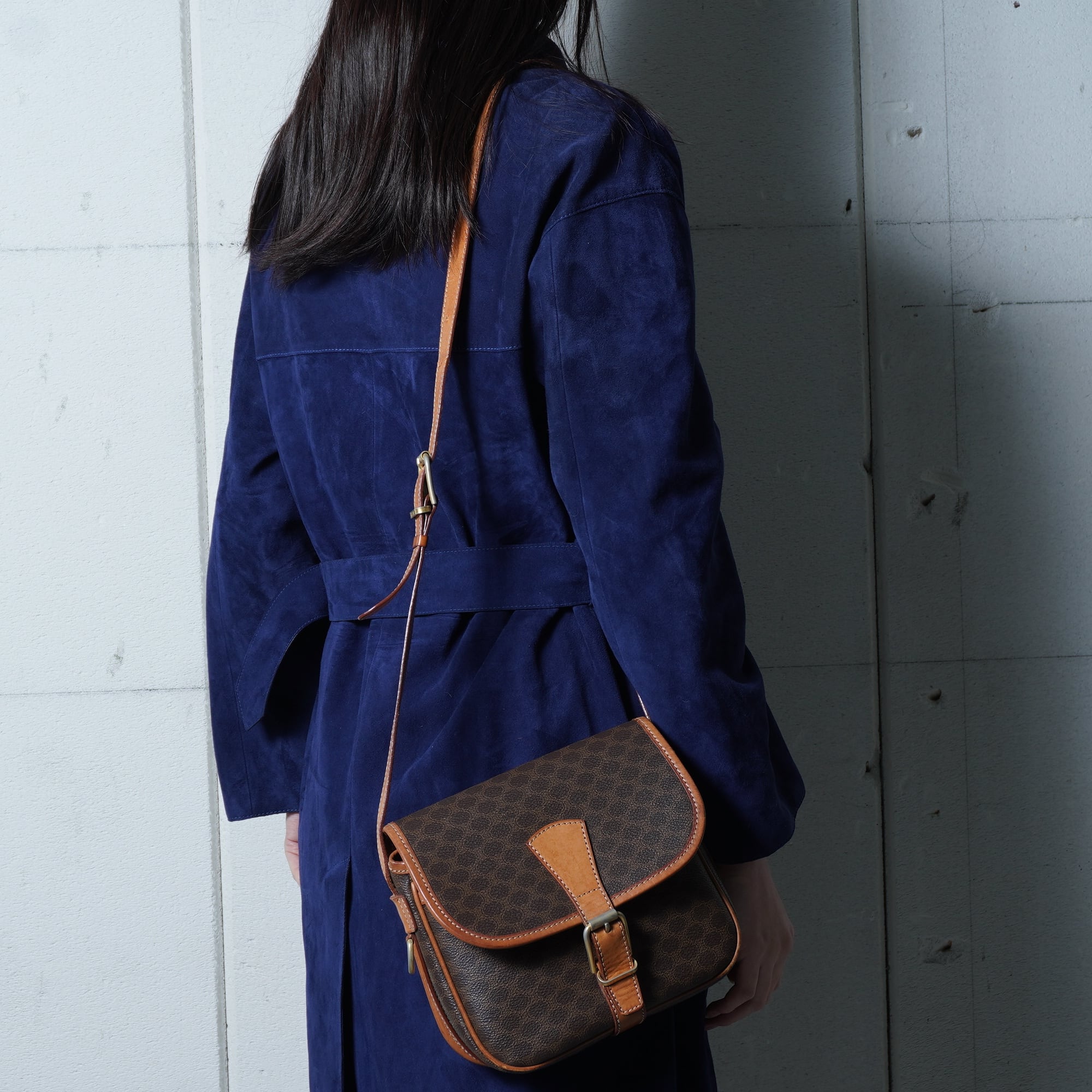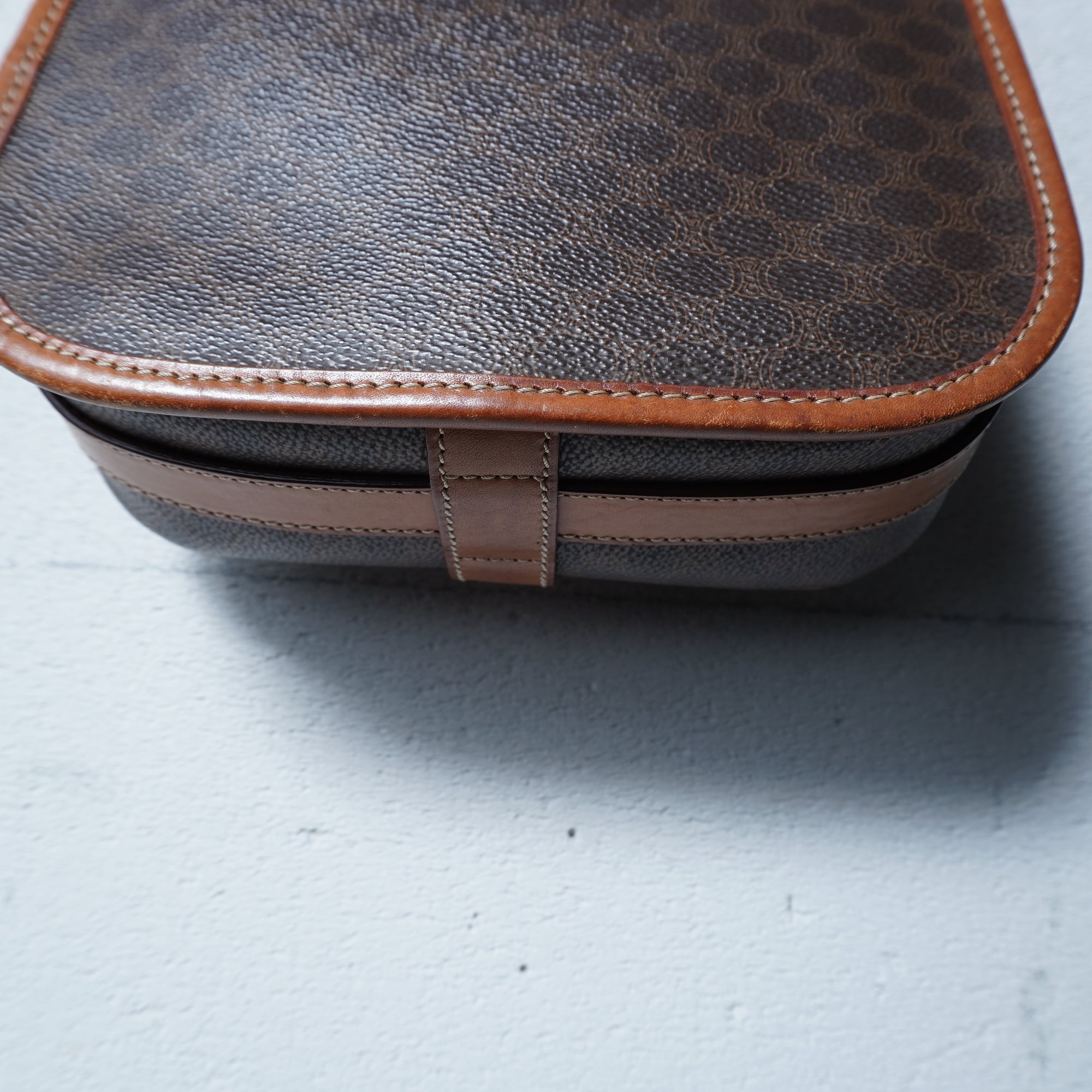 【CELINE】セリーヌ ”ロゴゴールド金具” マカダム柄レザーショルダーバッグ brown