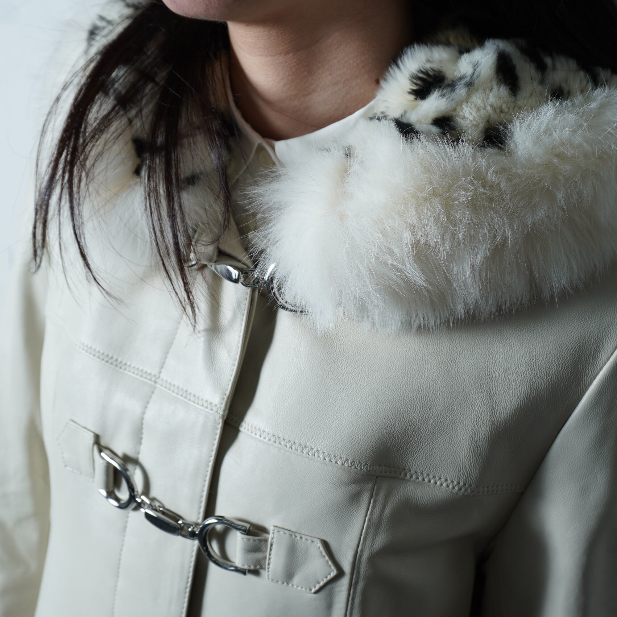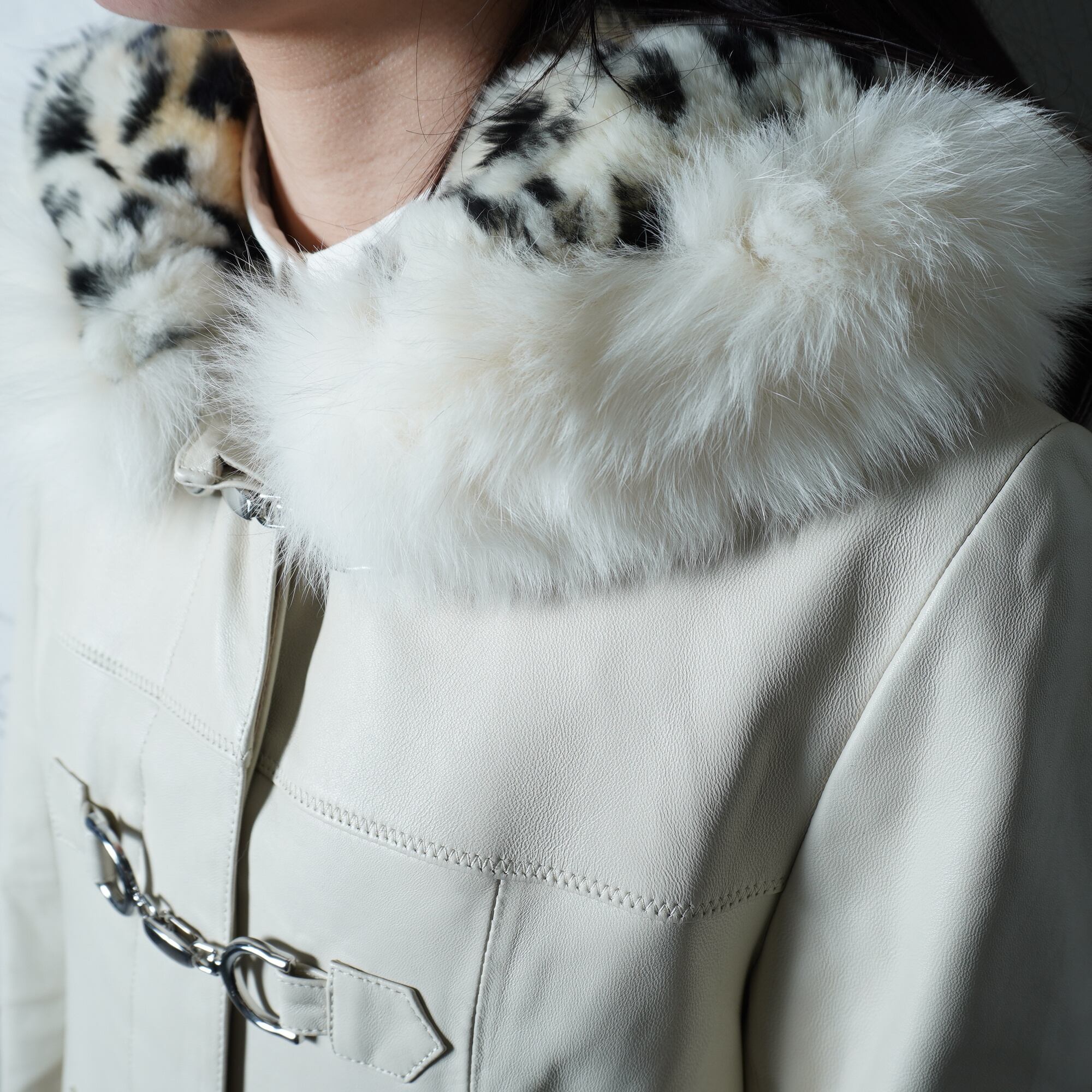 ・リアルフォッタスファーフードが印象的で、エレガントさを引き立てる