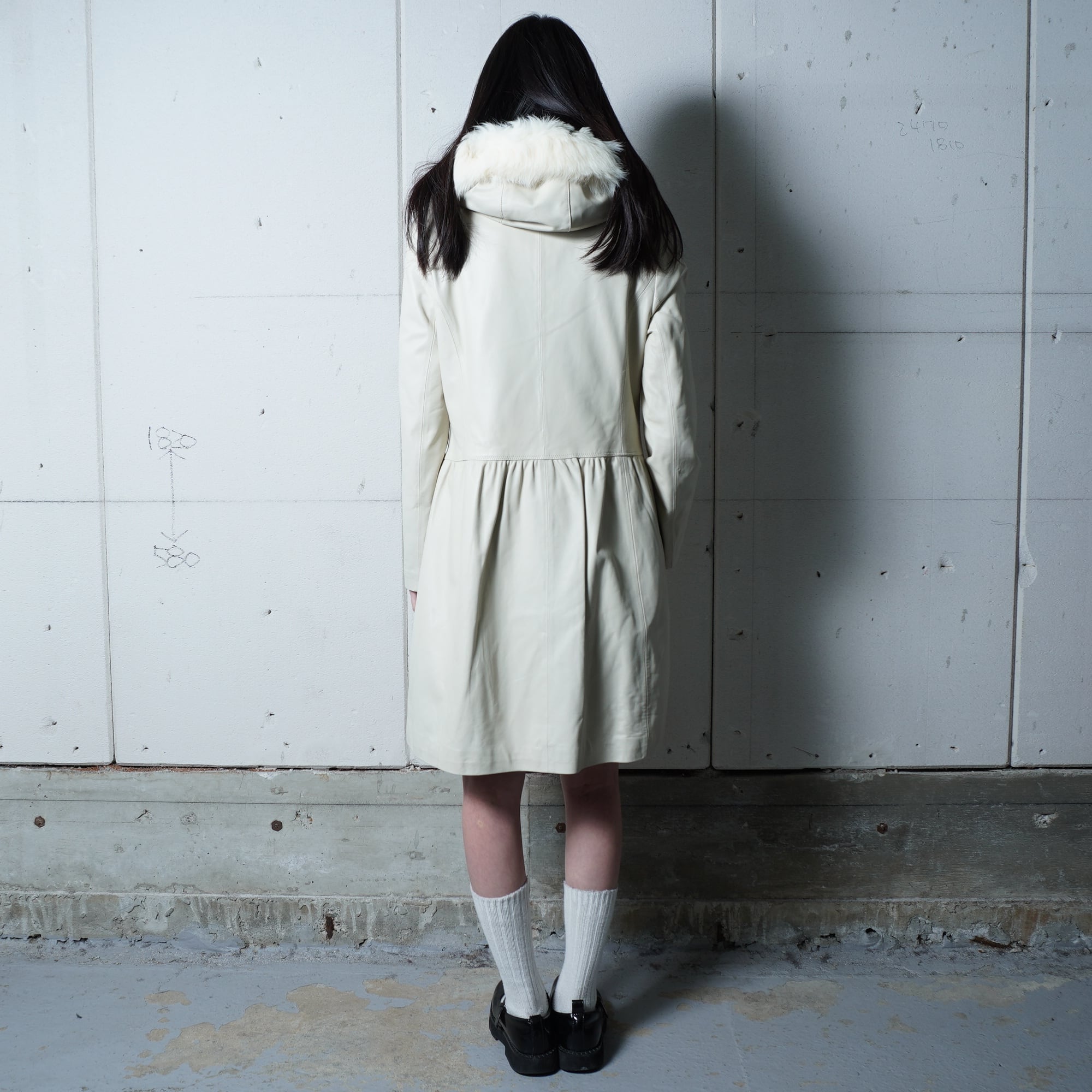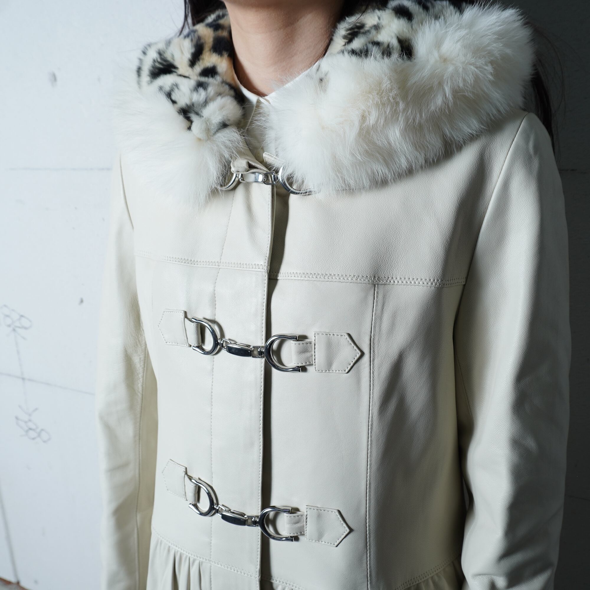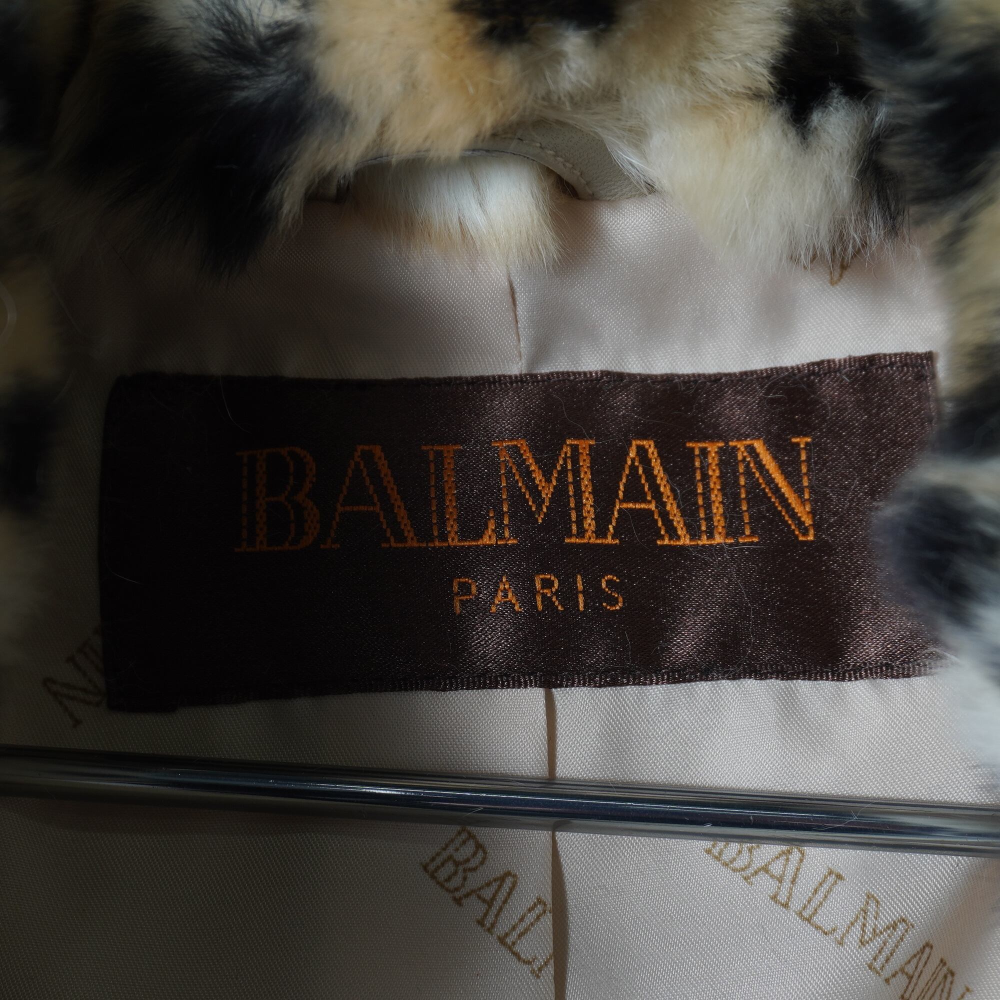 【BALMAIN】バルマン 極美品 タグ付きリアルフォッタスファーフード ラムレザーロングコート ivory