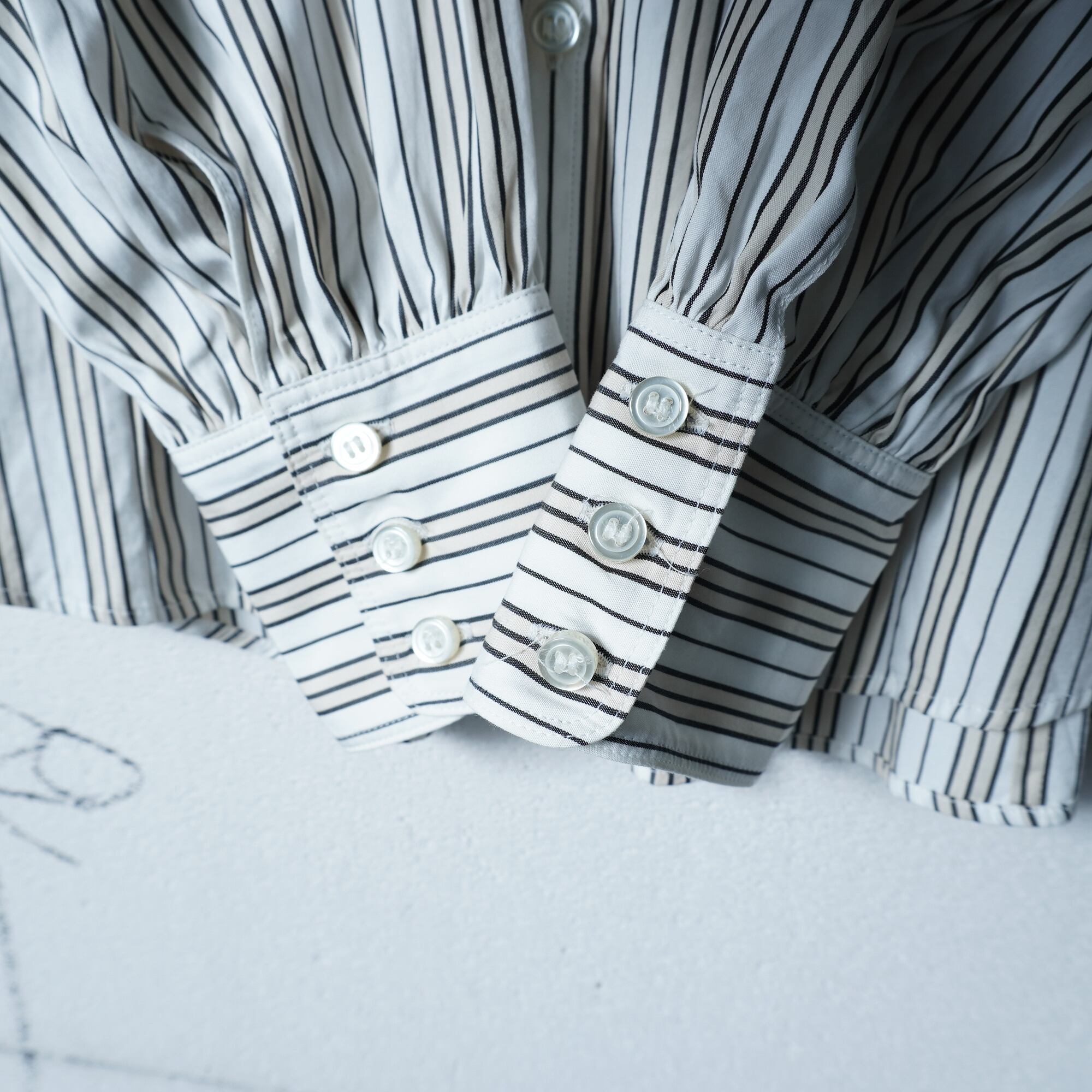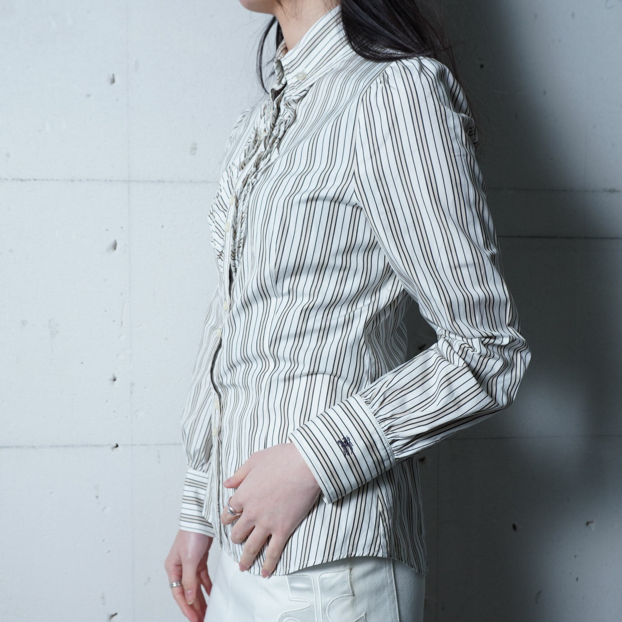 ・ストライプ柄に胸元にはフリル