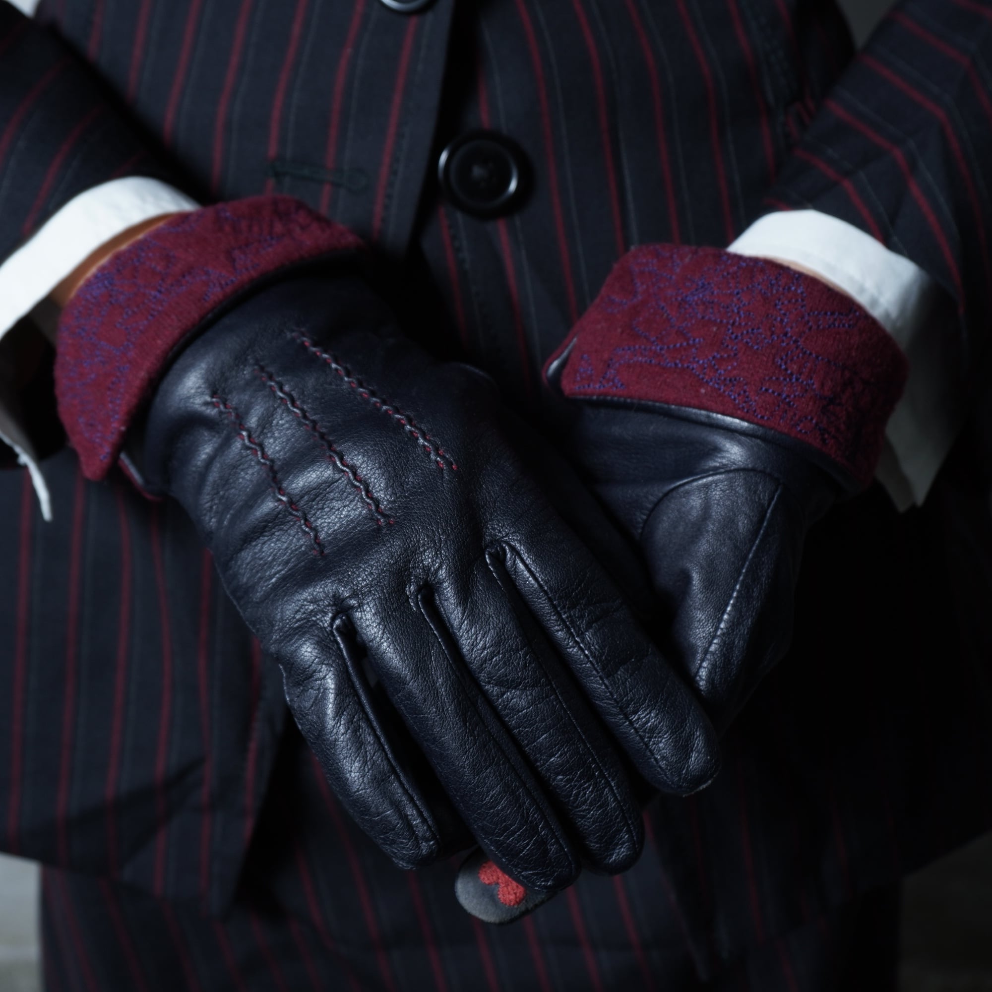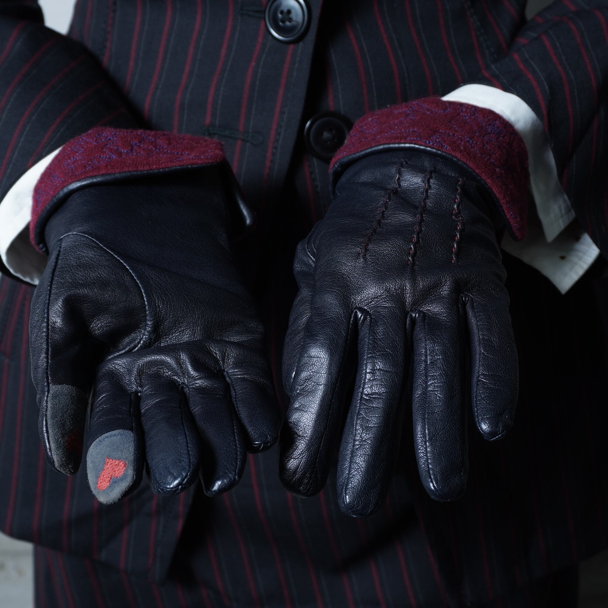 ・シックなブラックカラーが魅力のレザーグローブ