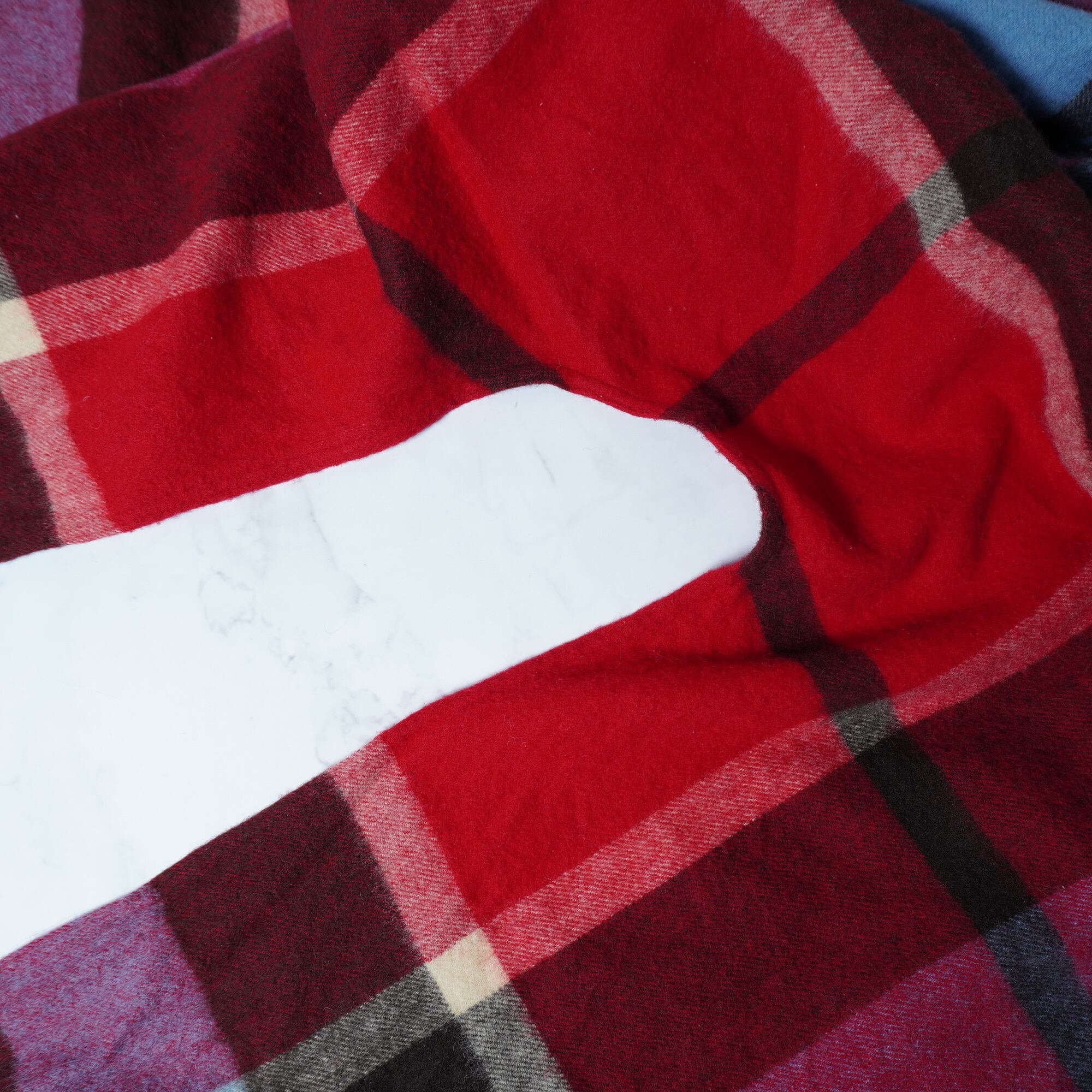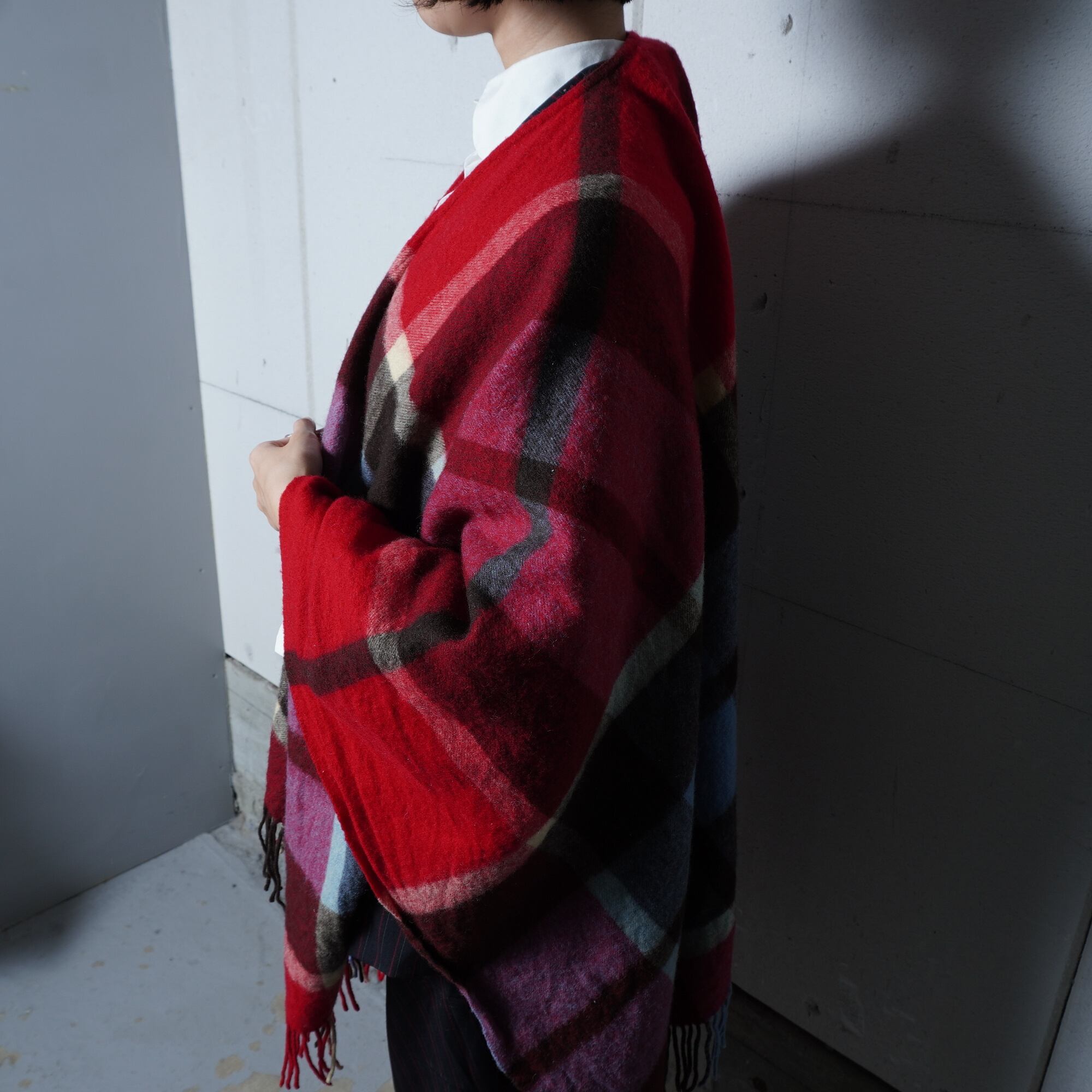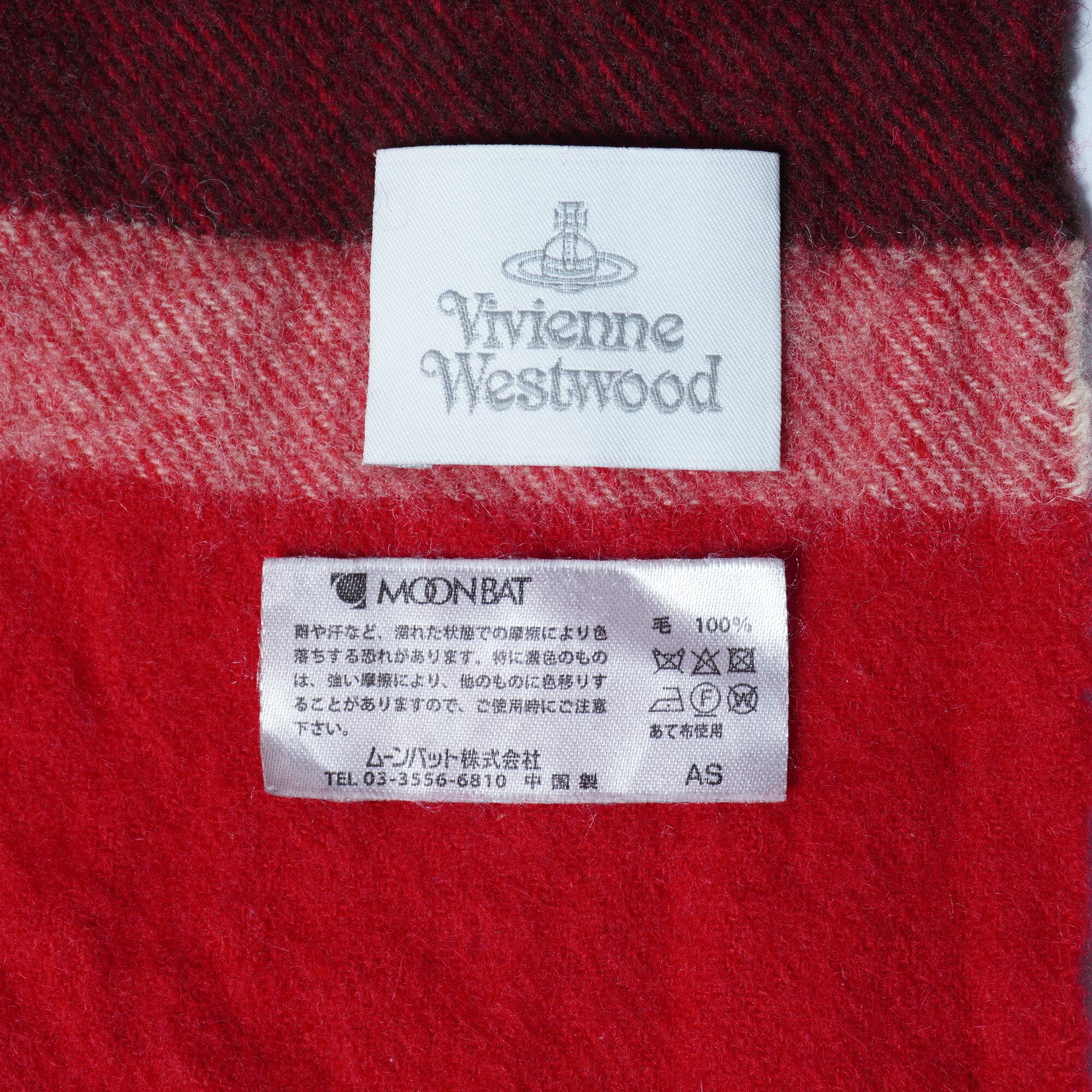 【Vivienne Westwood】ヴィヴィアンウエストウッド ”オーブロゴ刺繍” WOOL100%チェック柄ショールマフラー red&blue&brown