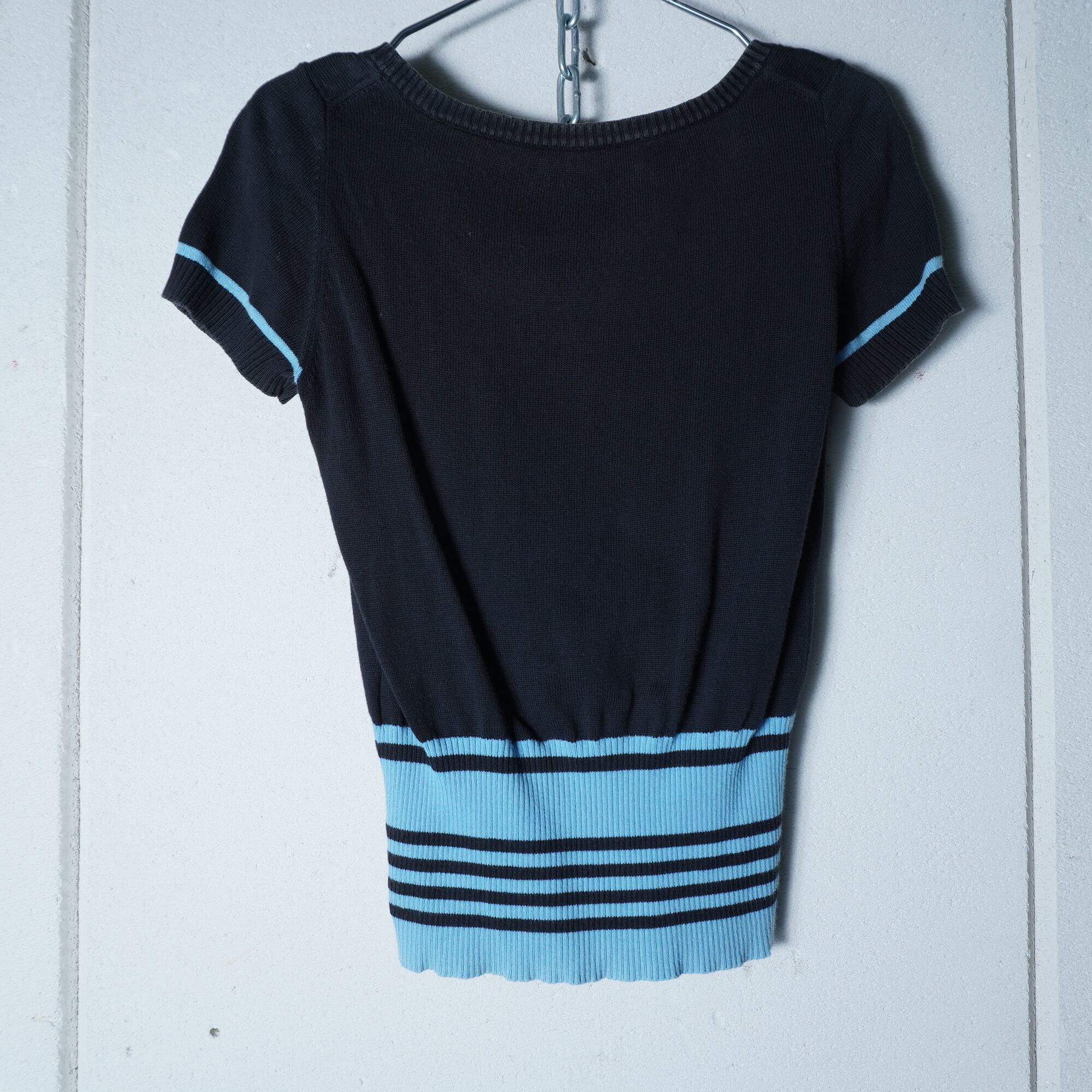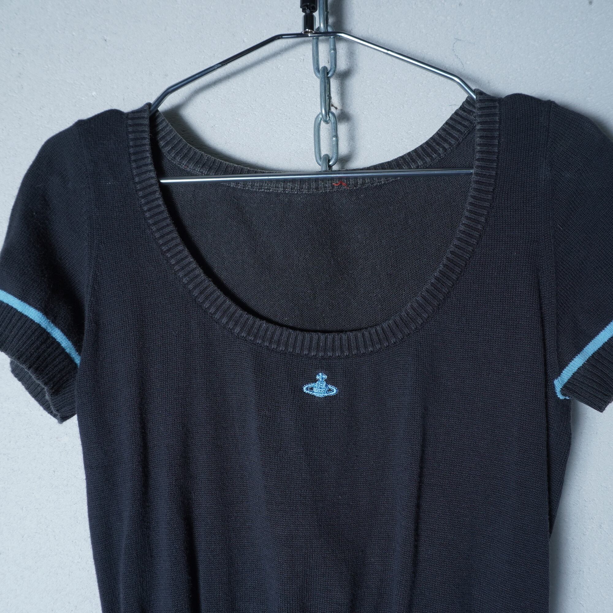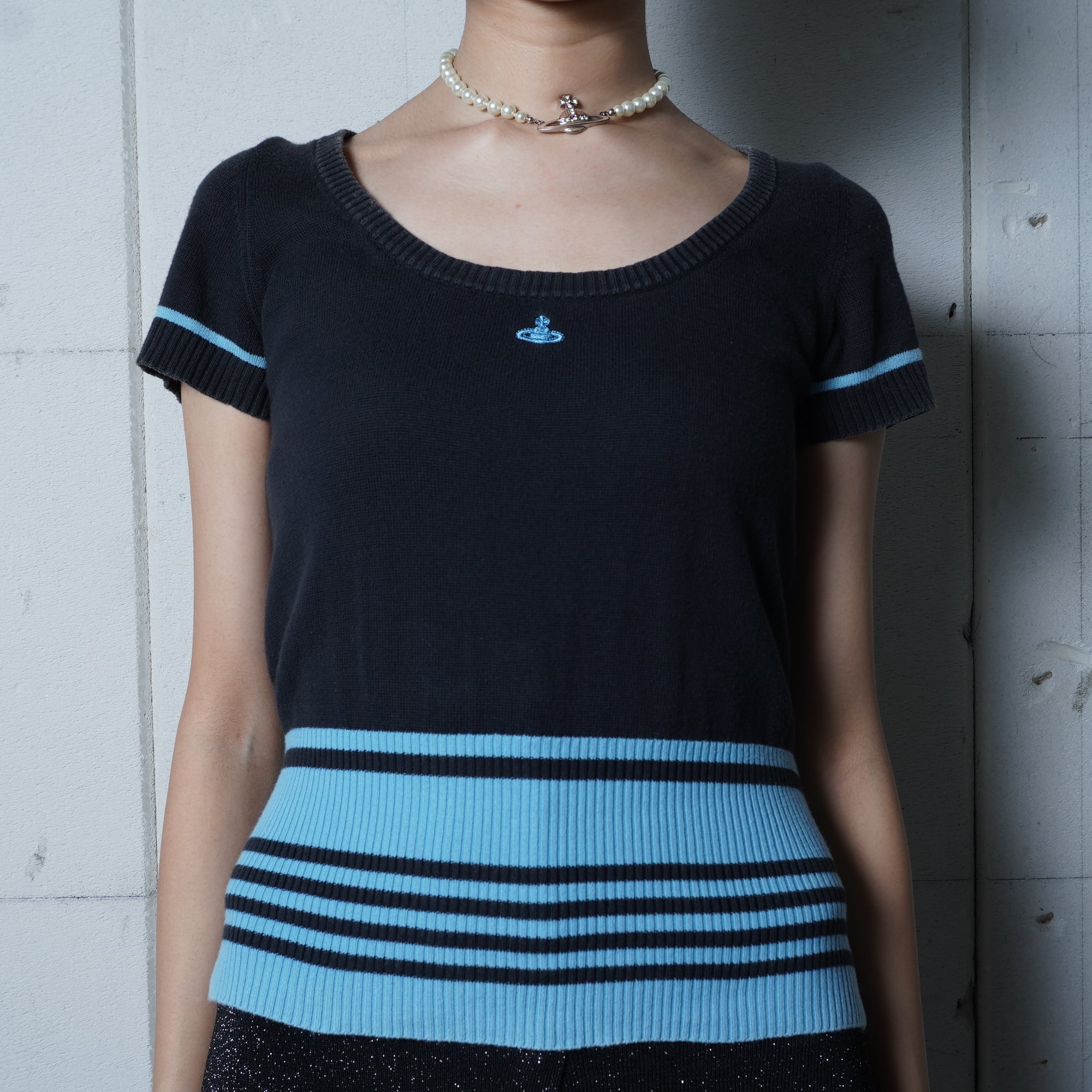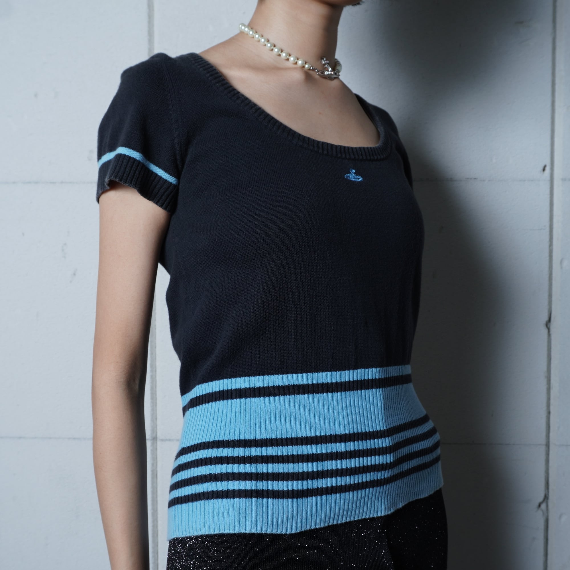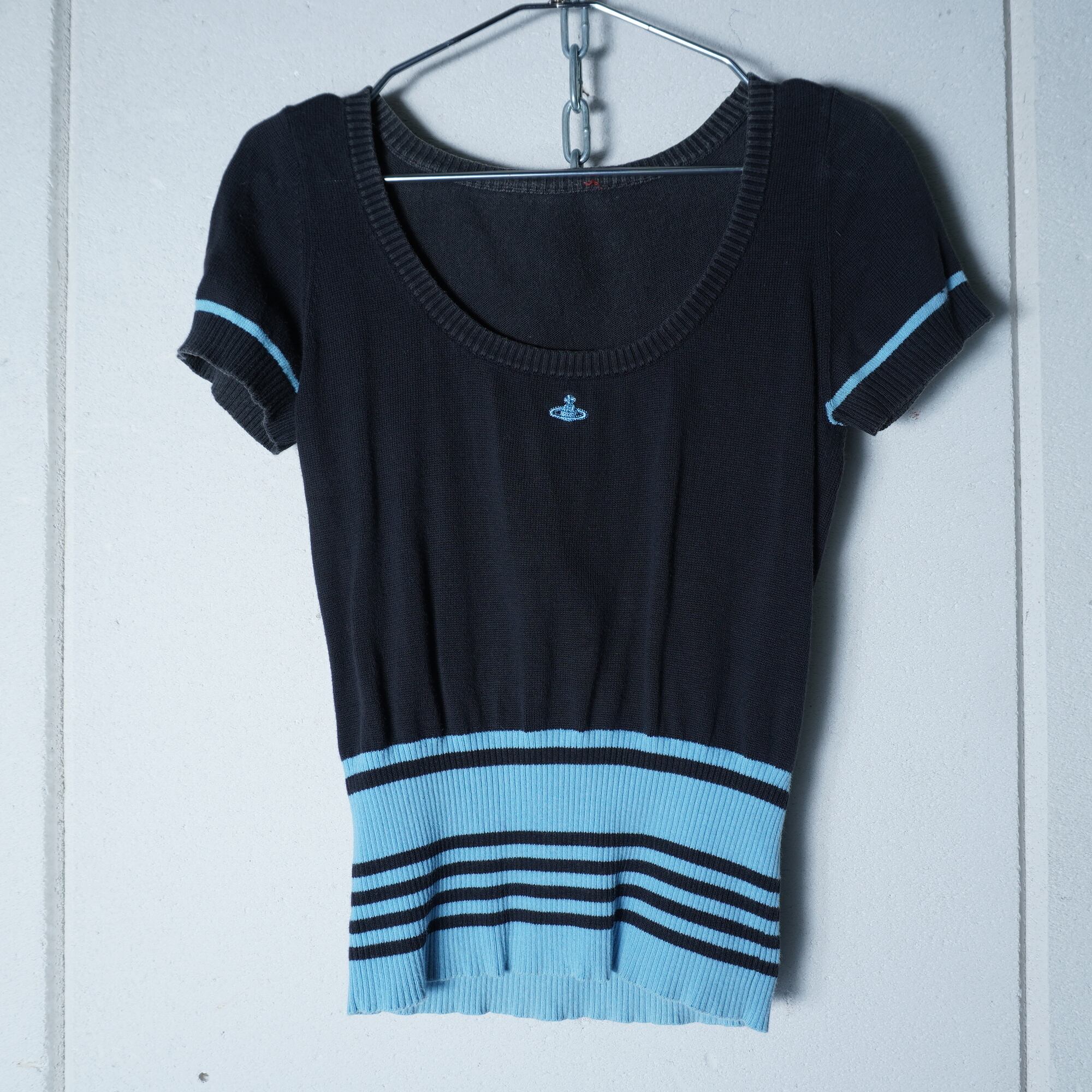 【Vivienne Westwood】ヴィヴィアンウエストウッド ”オーブロゴ刺繡”ショートスリーブボーダーニット black & blue