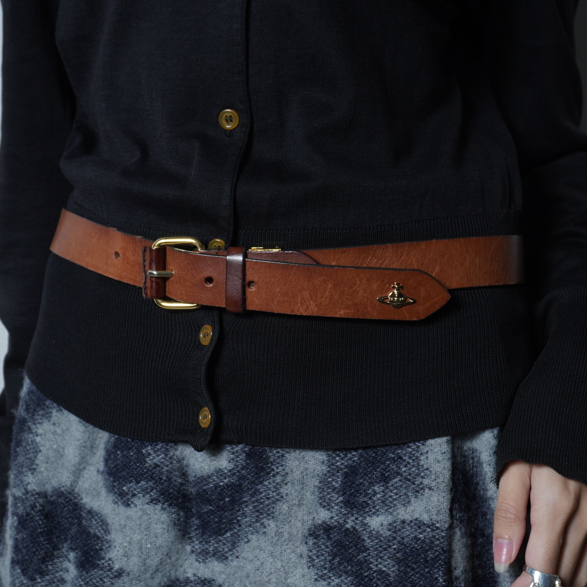 Vivienne Westwood "オーブロゴ"ゴールドロゴバックルレザーベルト brown