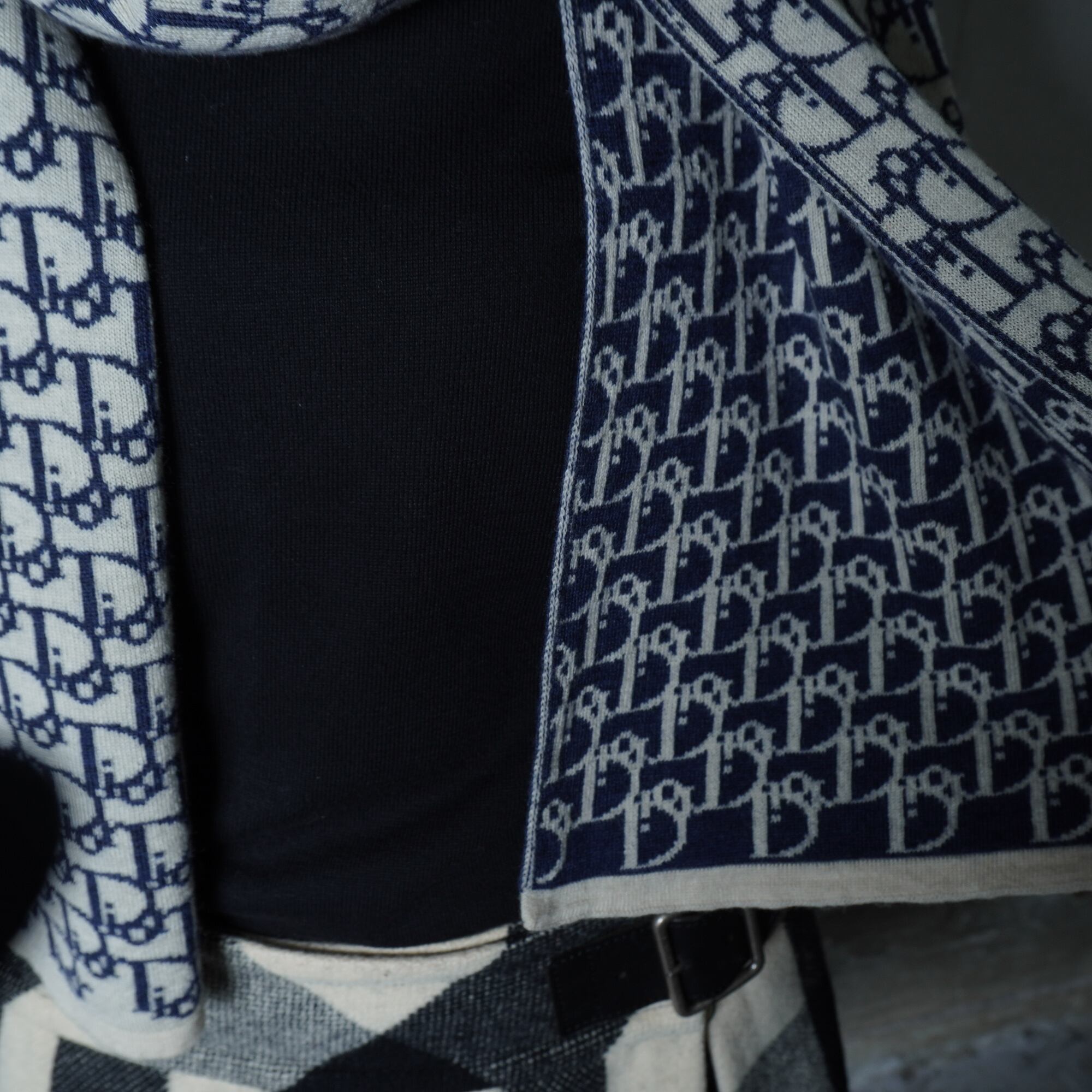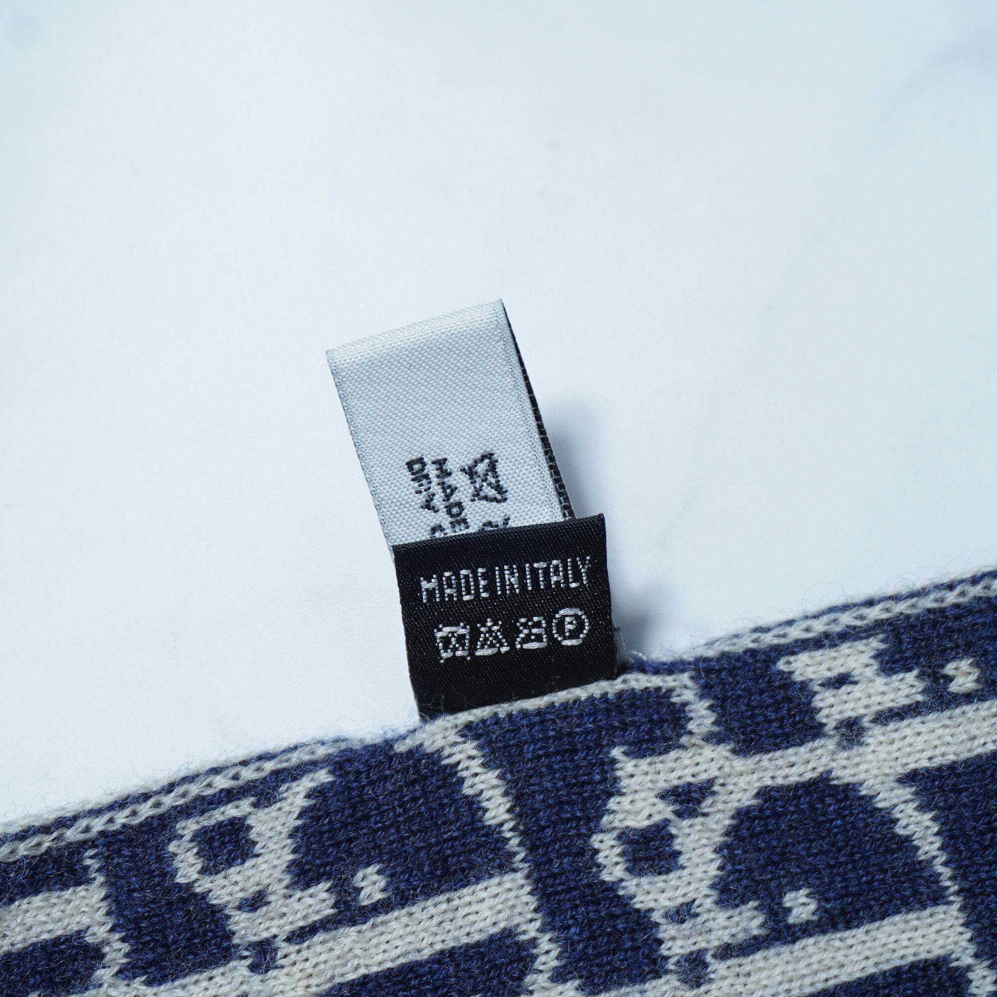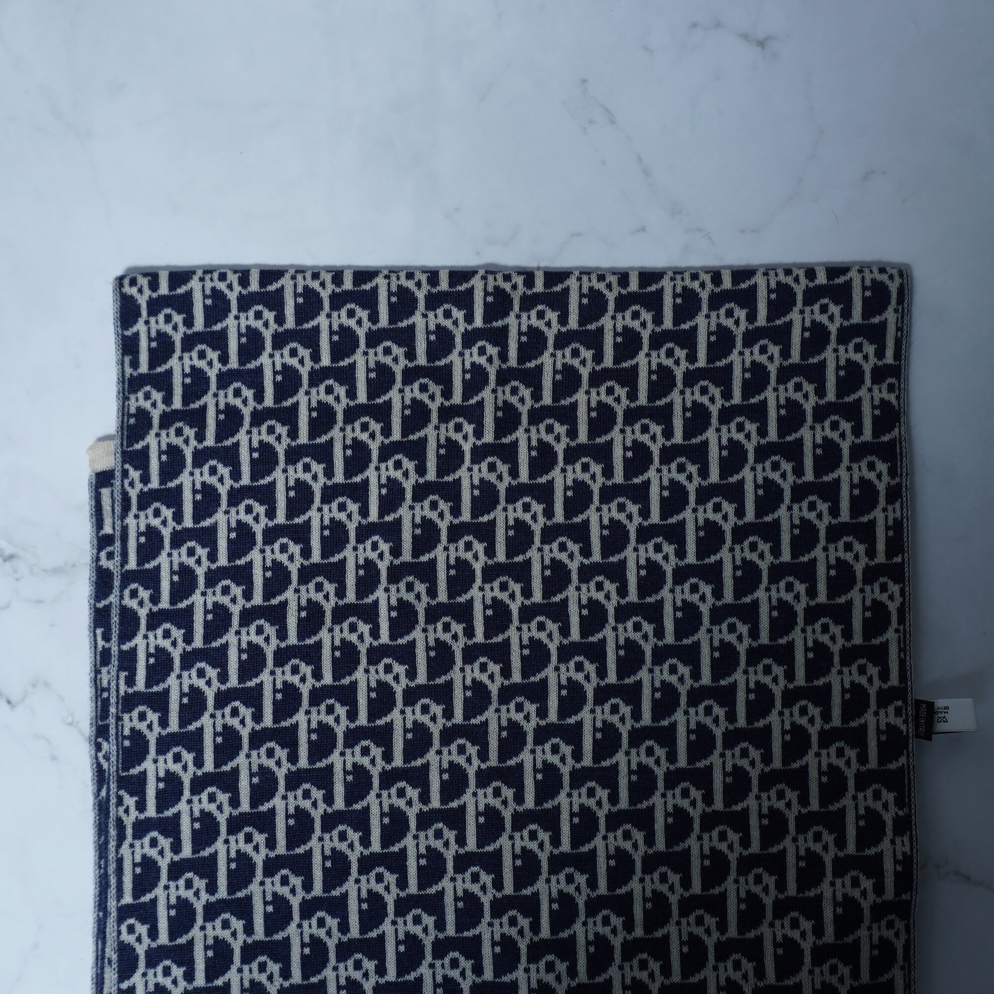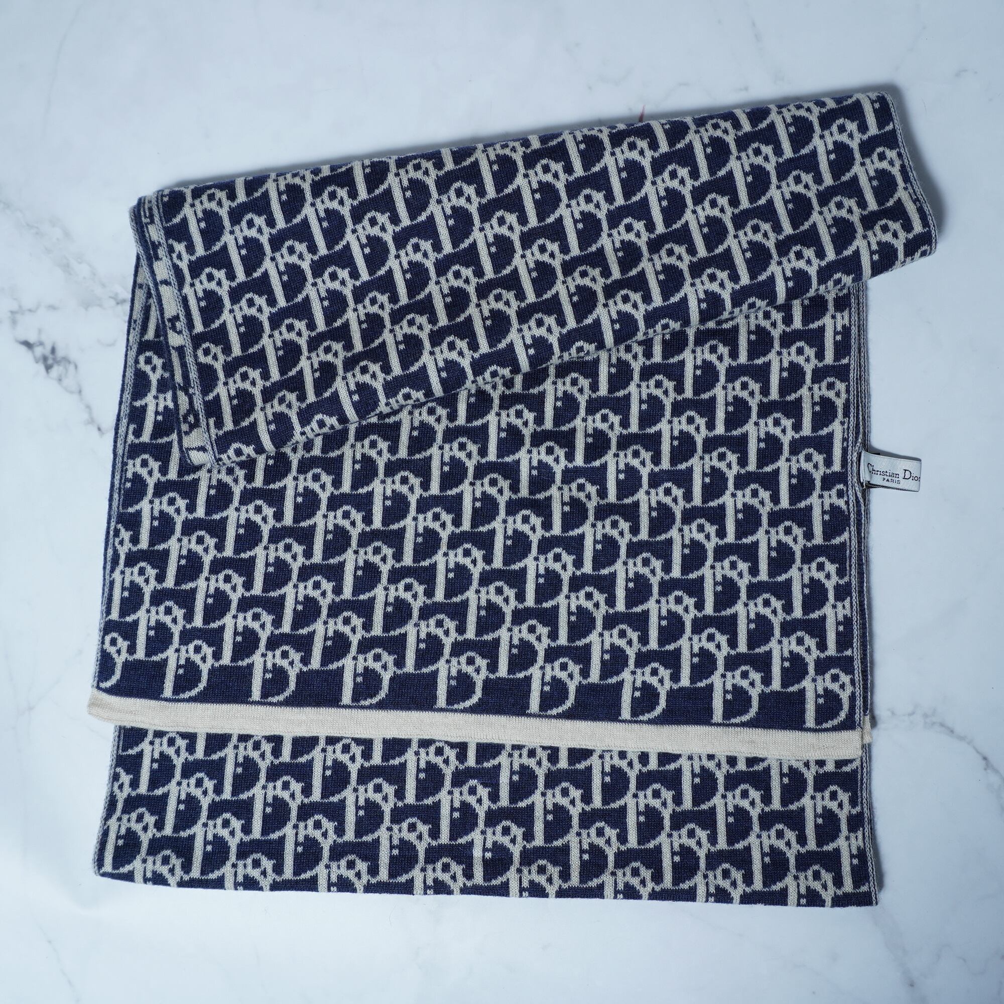 【Christian Dior】クリスチャンディオール トロッター総柄 ウール100%マフラー navy&whiyte
