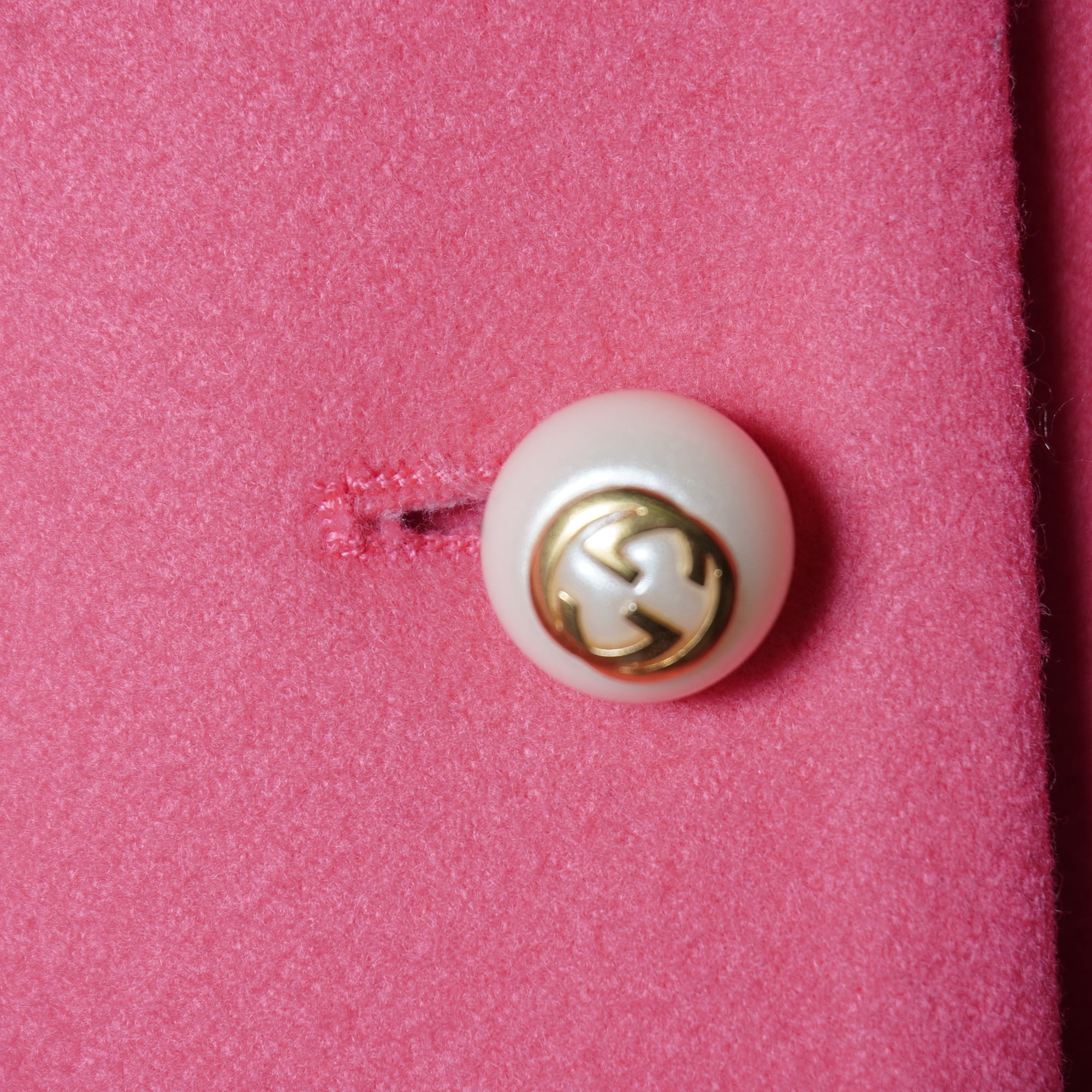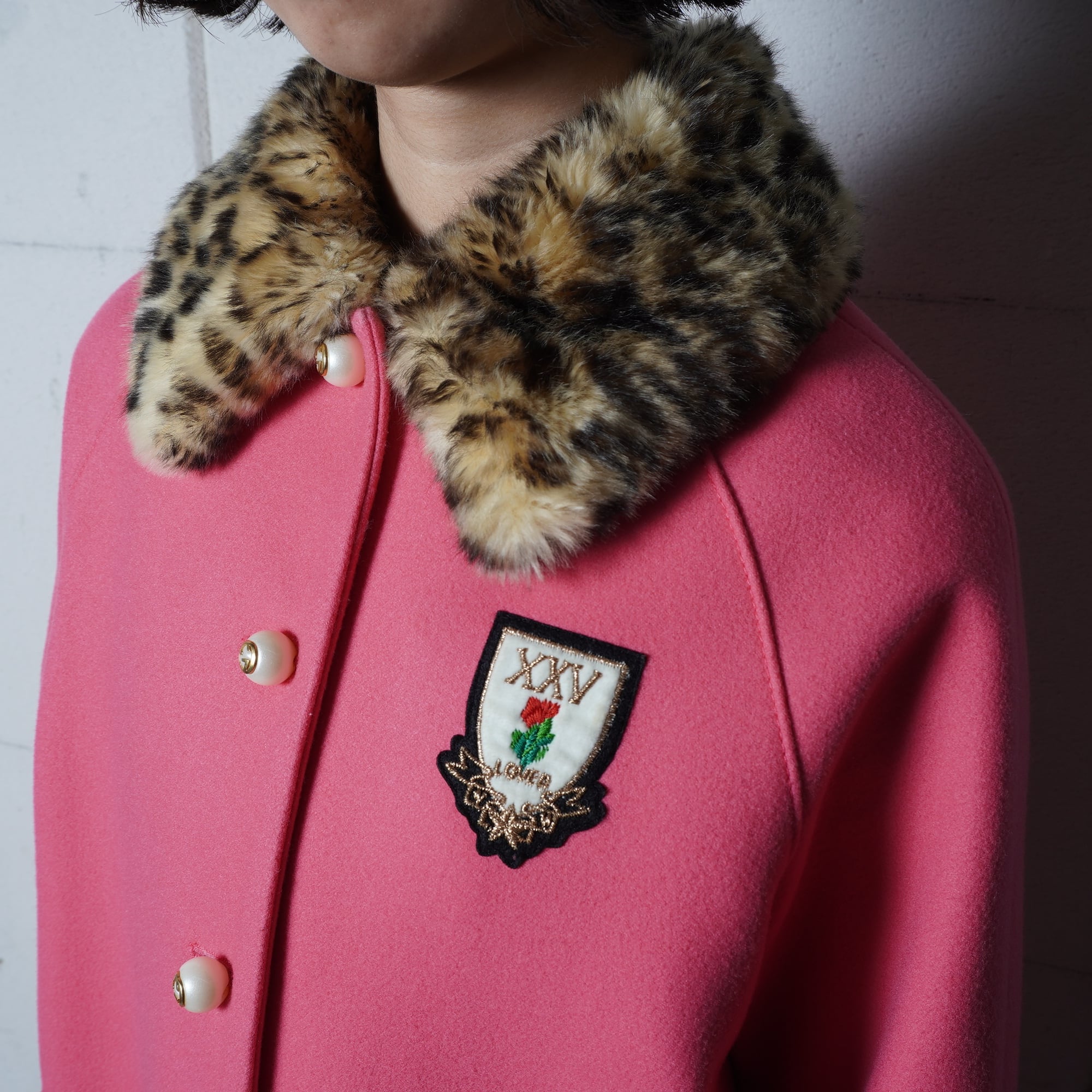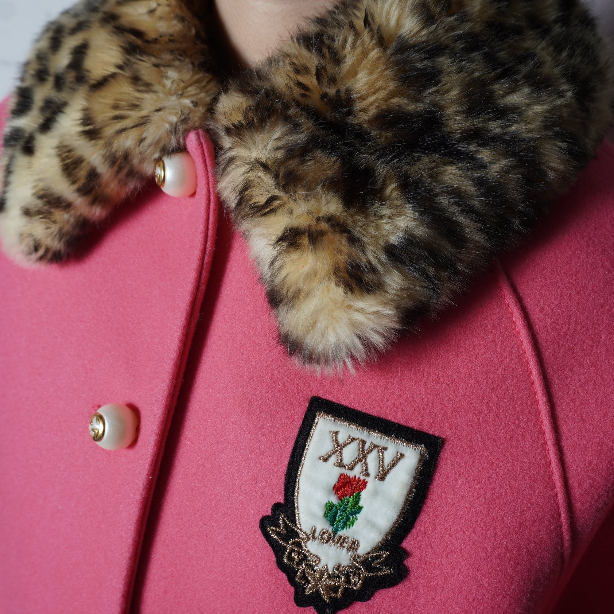 【GUCCI】グッチ "インターロッキングGボタン”レオパードファーWOOL100%コート pink
