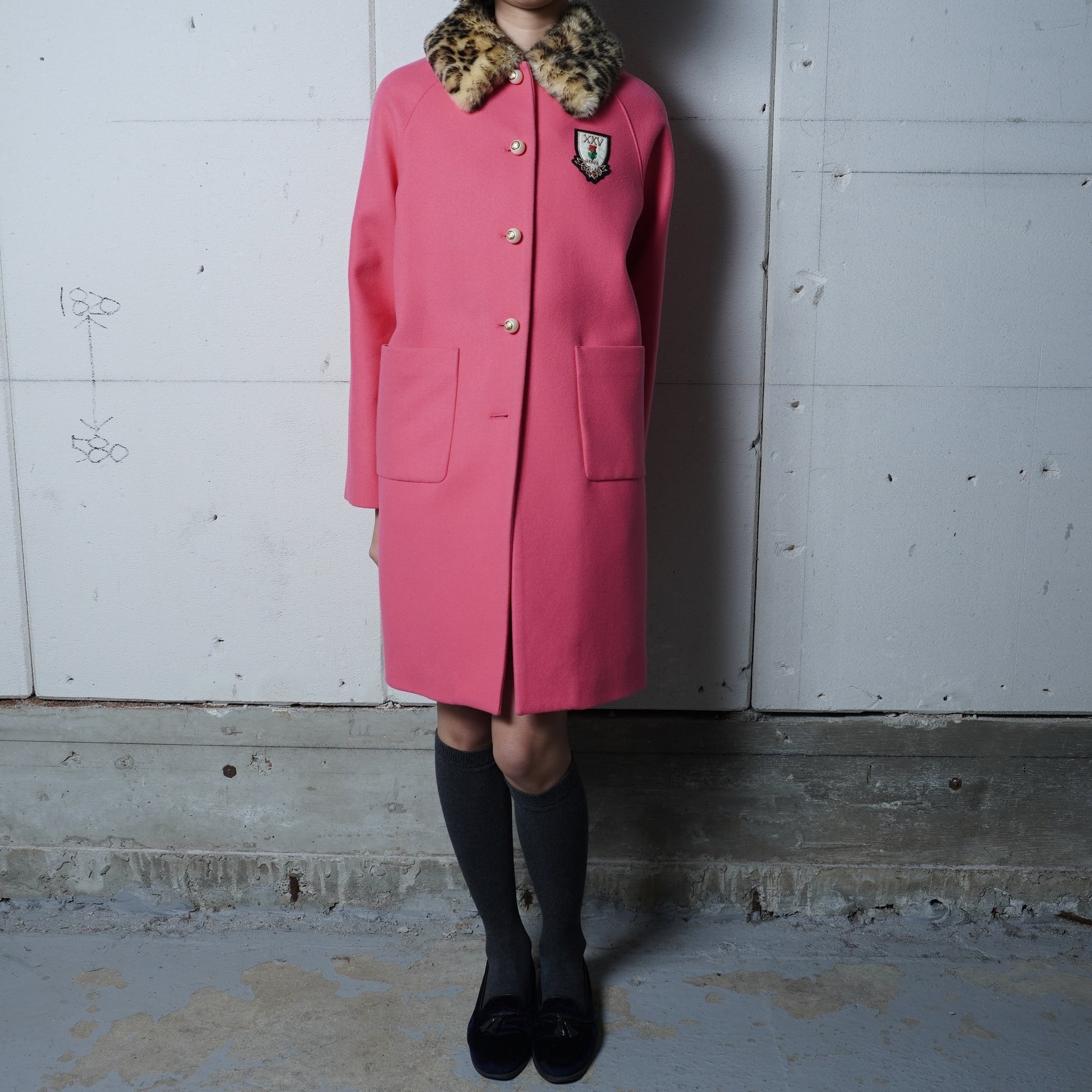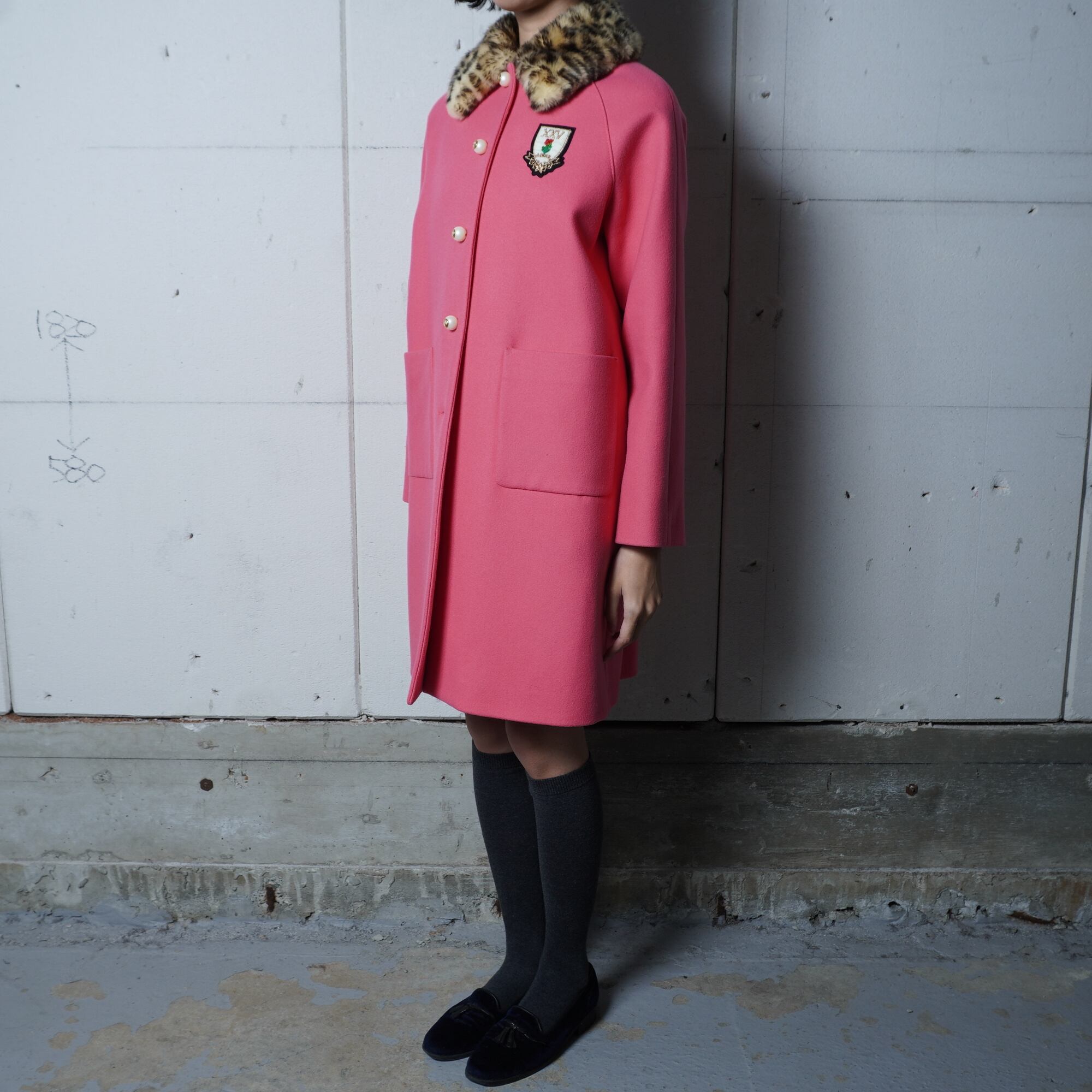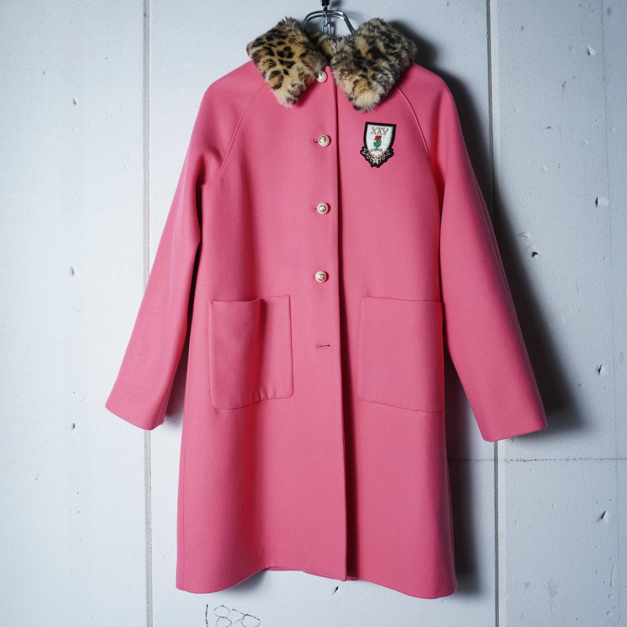 【GUCCI】グッチ "インターロッキングGボタン”レオパードファーWOOL100%コート pink