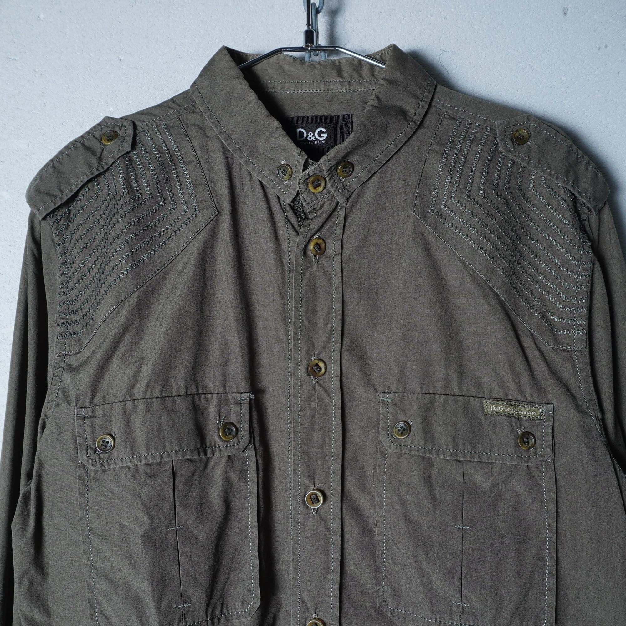 ・洗練されたデザインが魅力の【DOLCE&GABBANA】ドルチェ&ガッバーナ ”ARCHIVE” エルボー刺繍ミリタリーボタンダウンシャツ