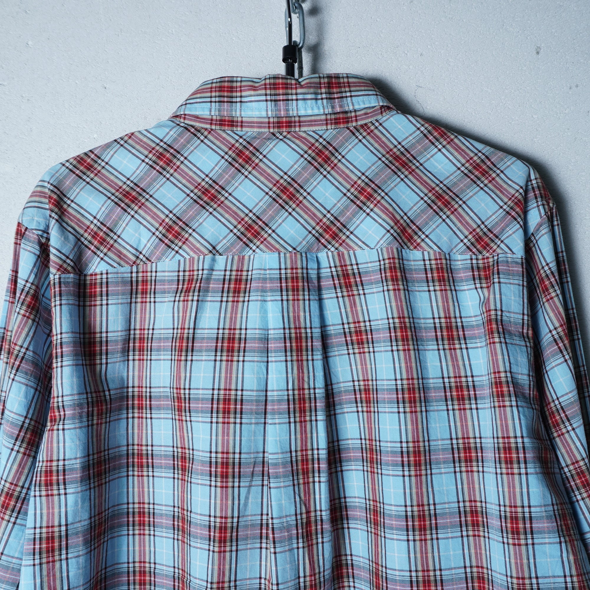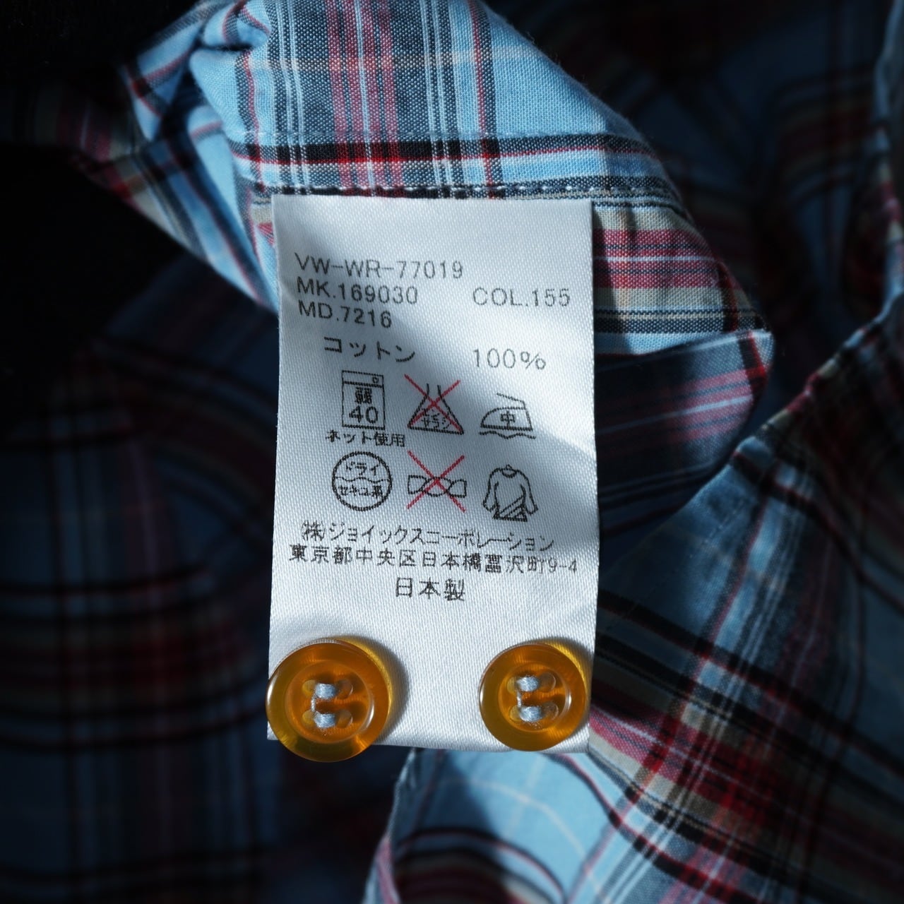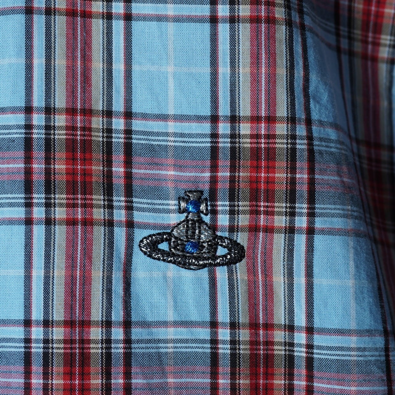 ・青と赤のチェック柄が、ファッションに遊び心をプラス