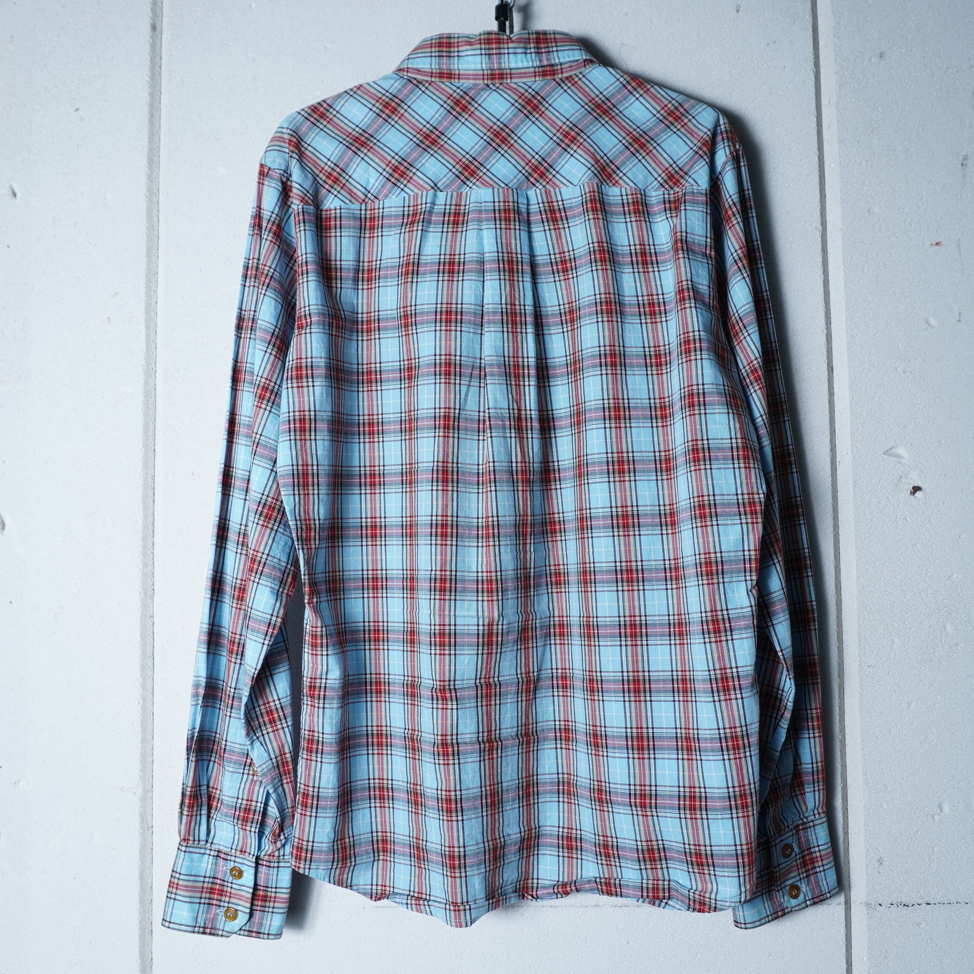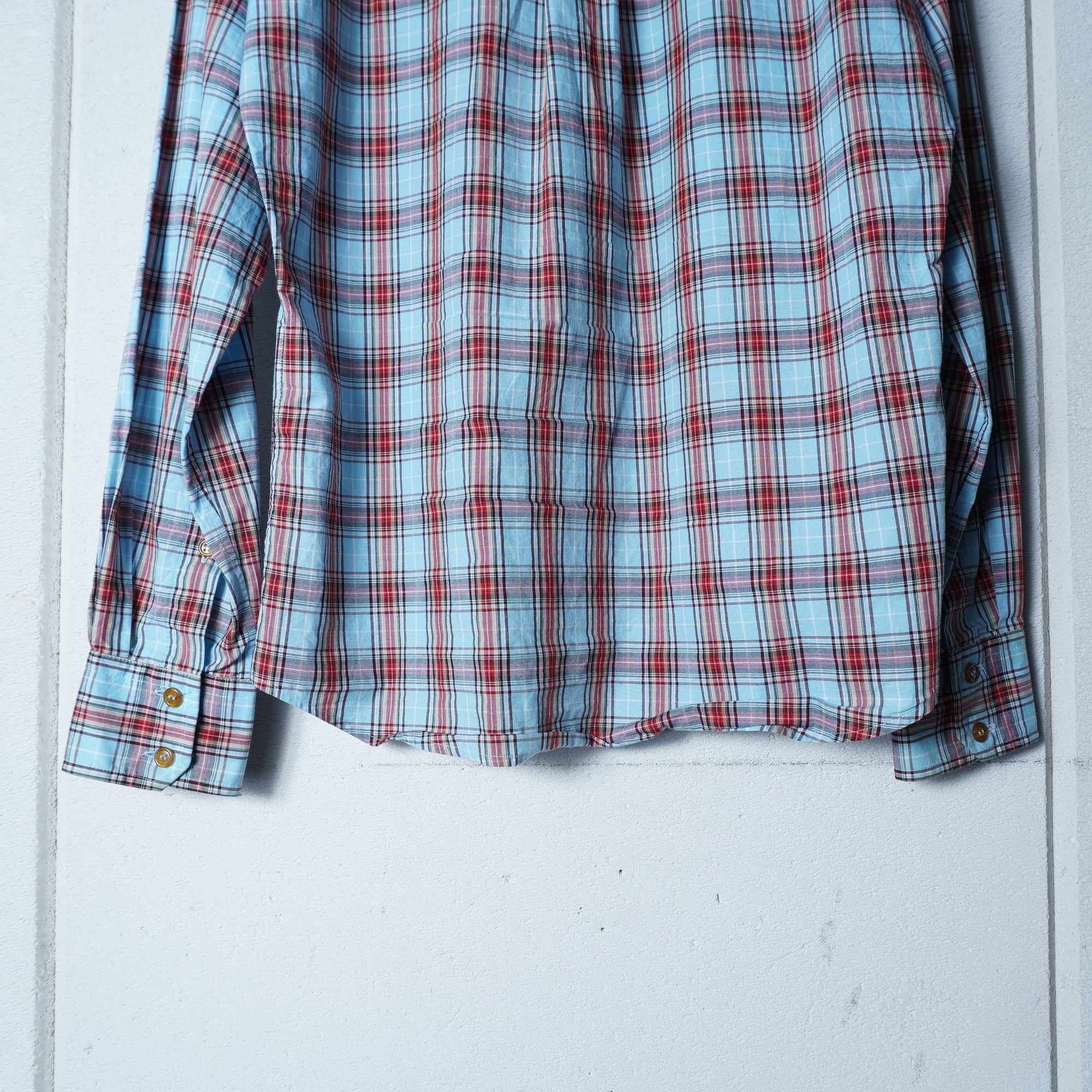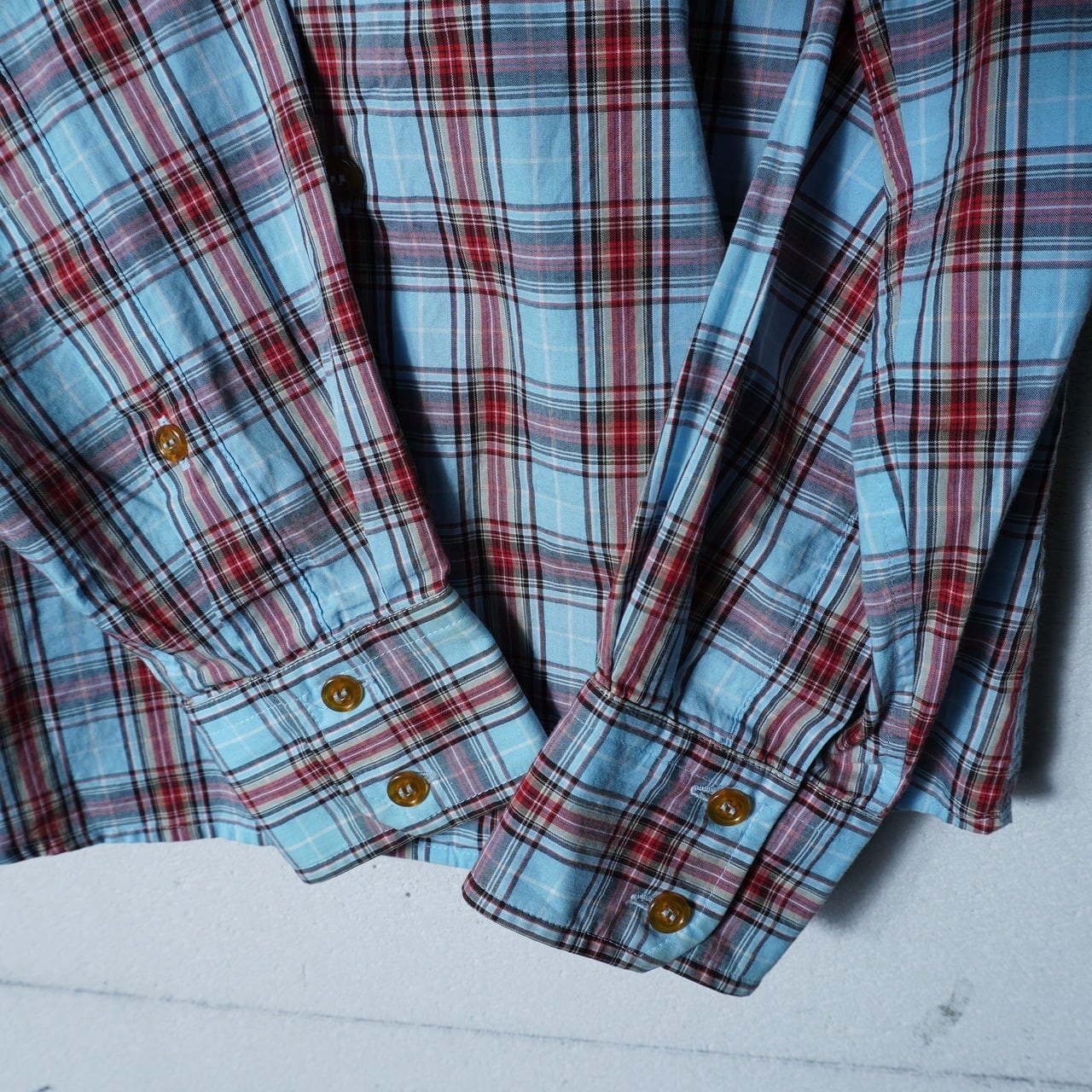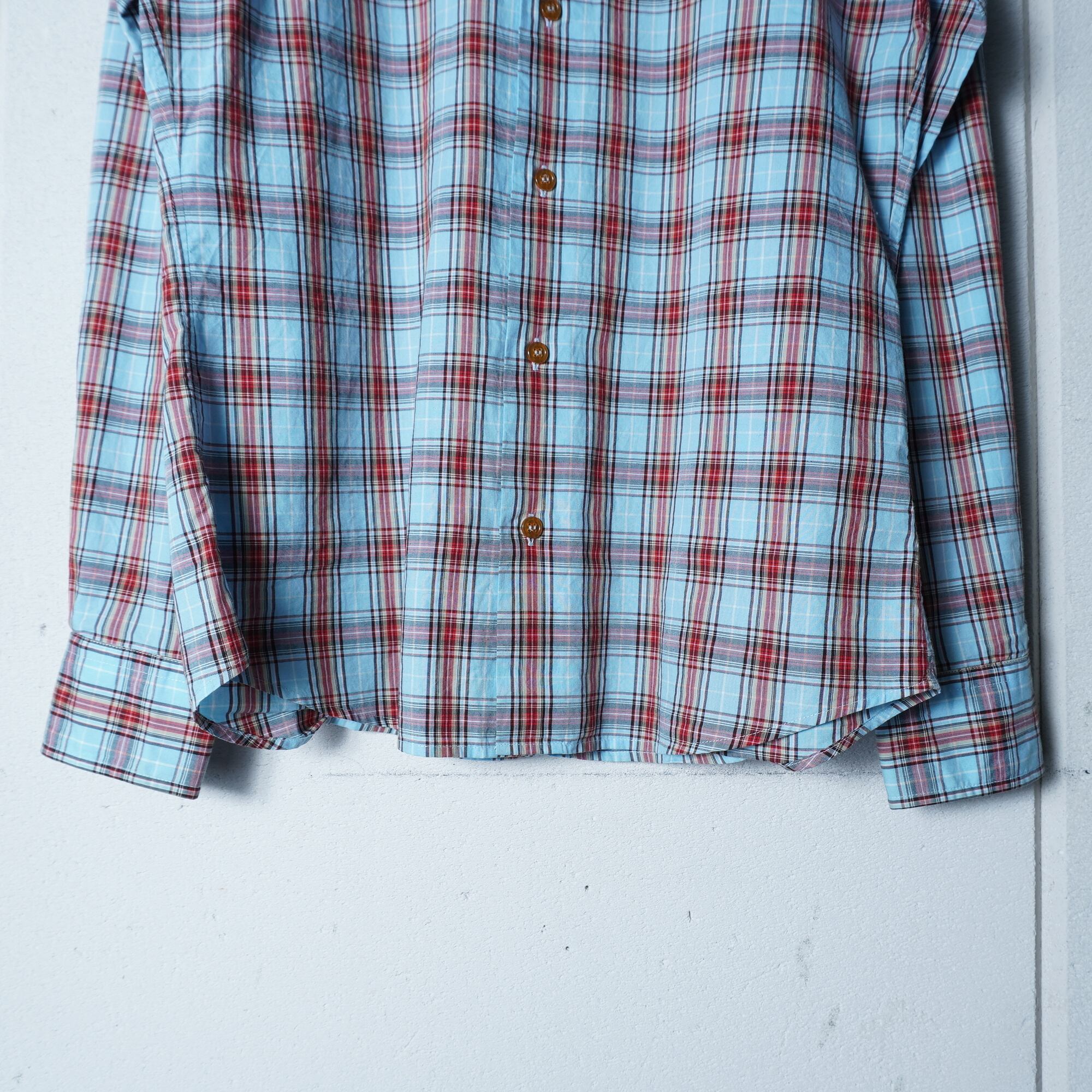 ・青と赤のチェック柄が、ファッションに遊び心をプラス