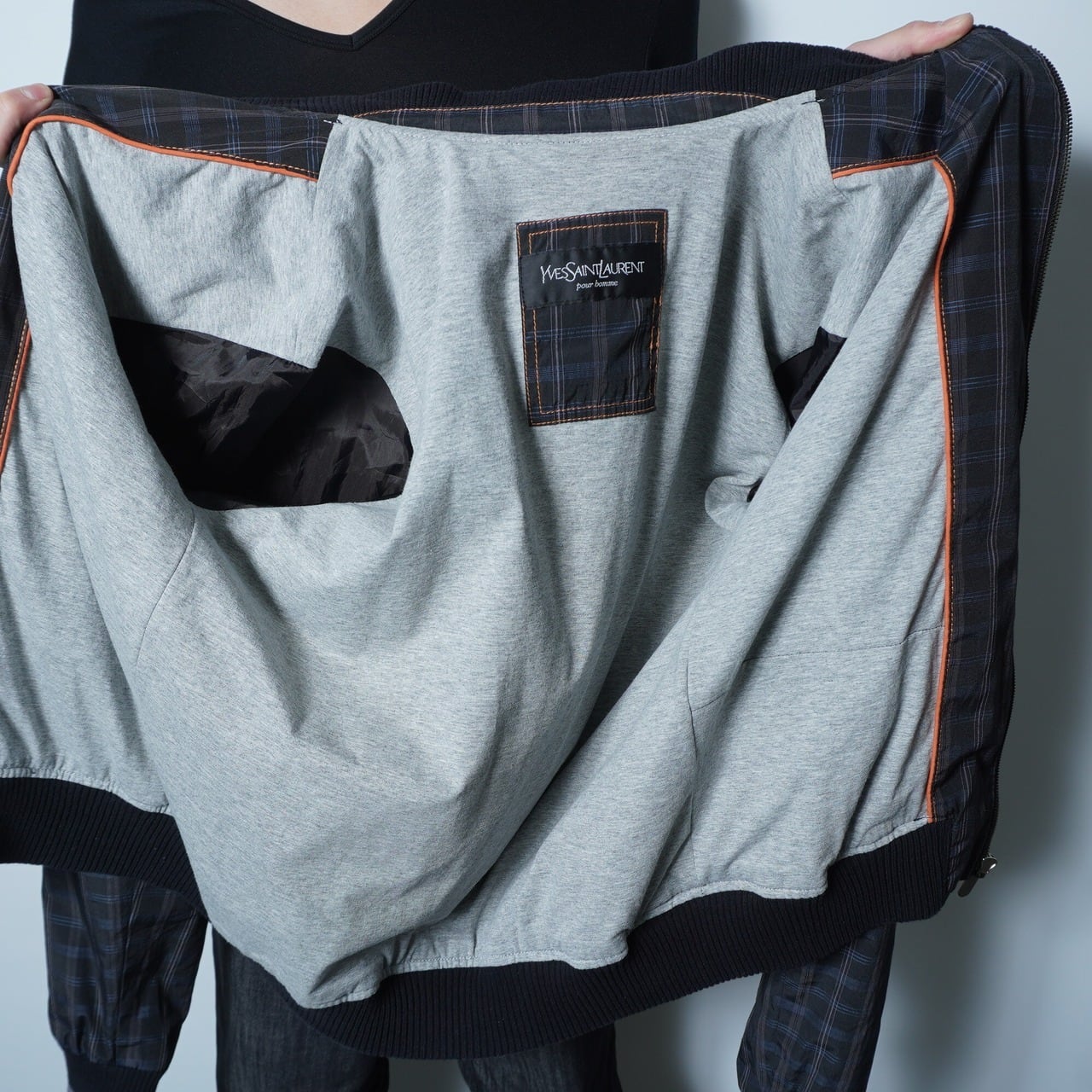 【Yves Saint Laurent】イブサンローラン ”YSLロゴ” チェック柄ボマージャケット gray