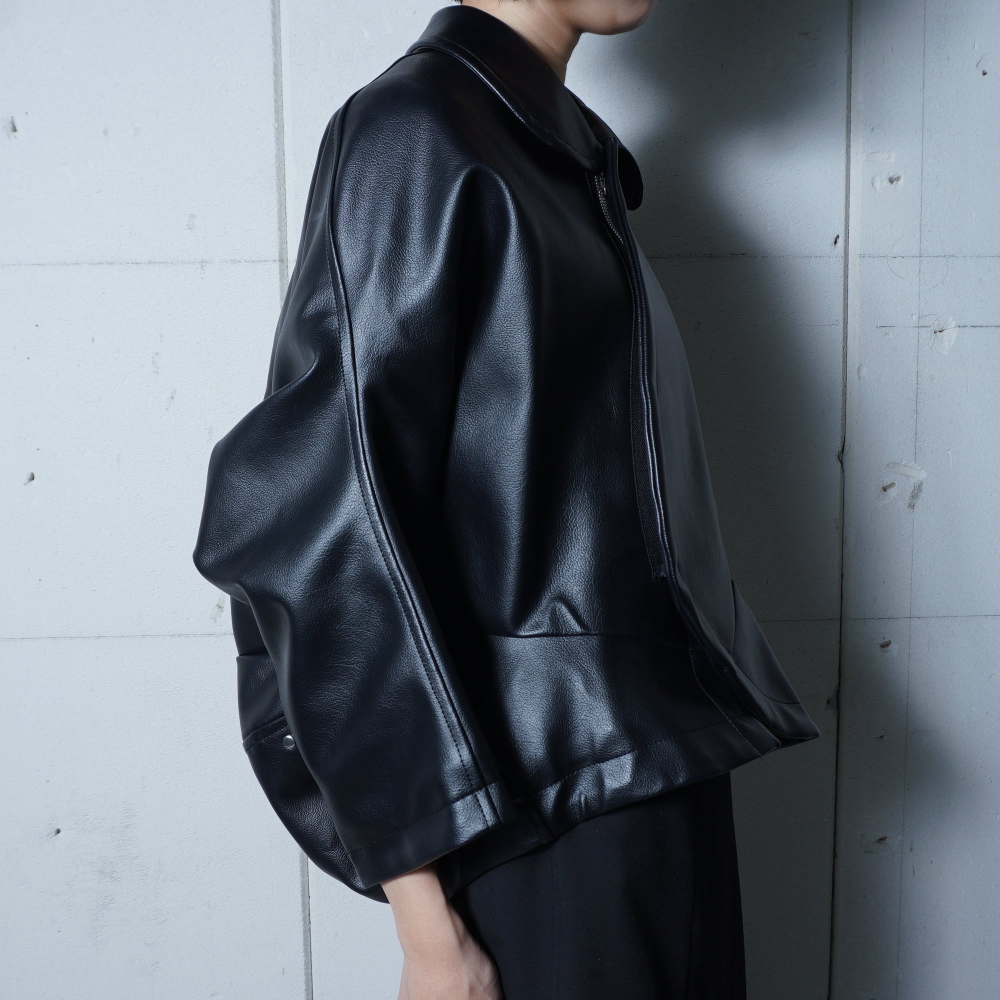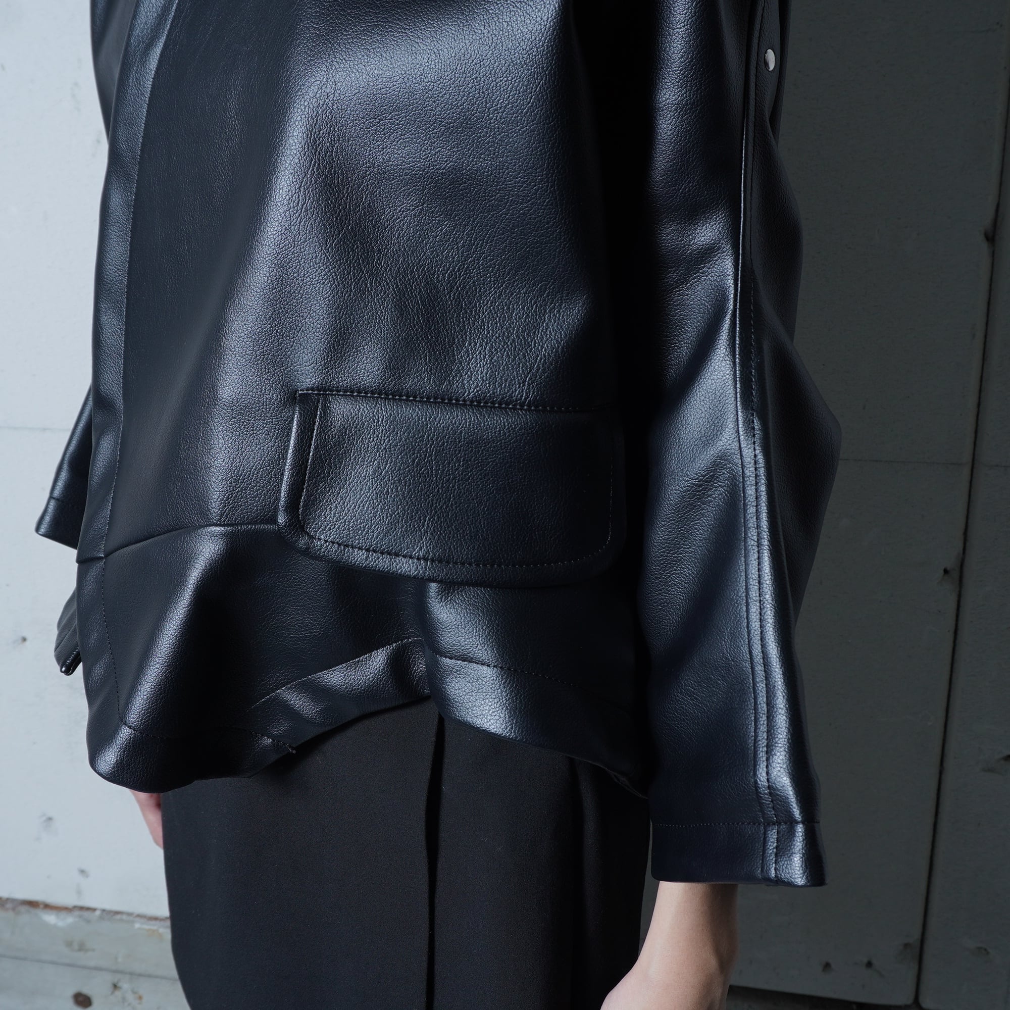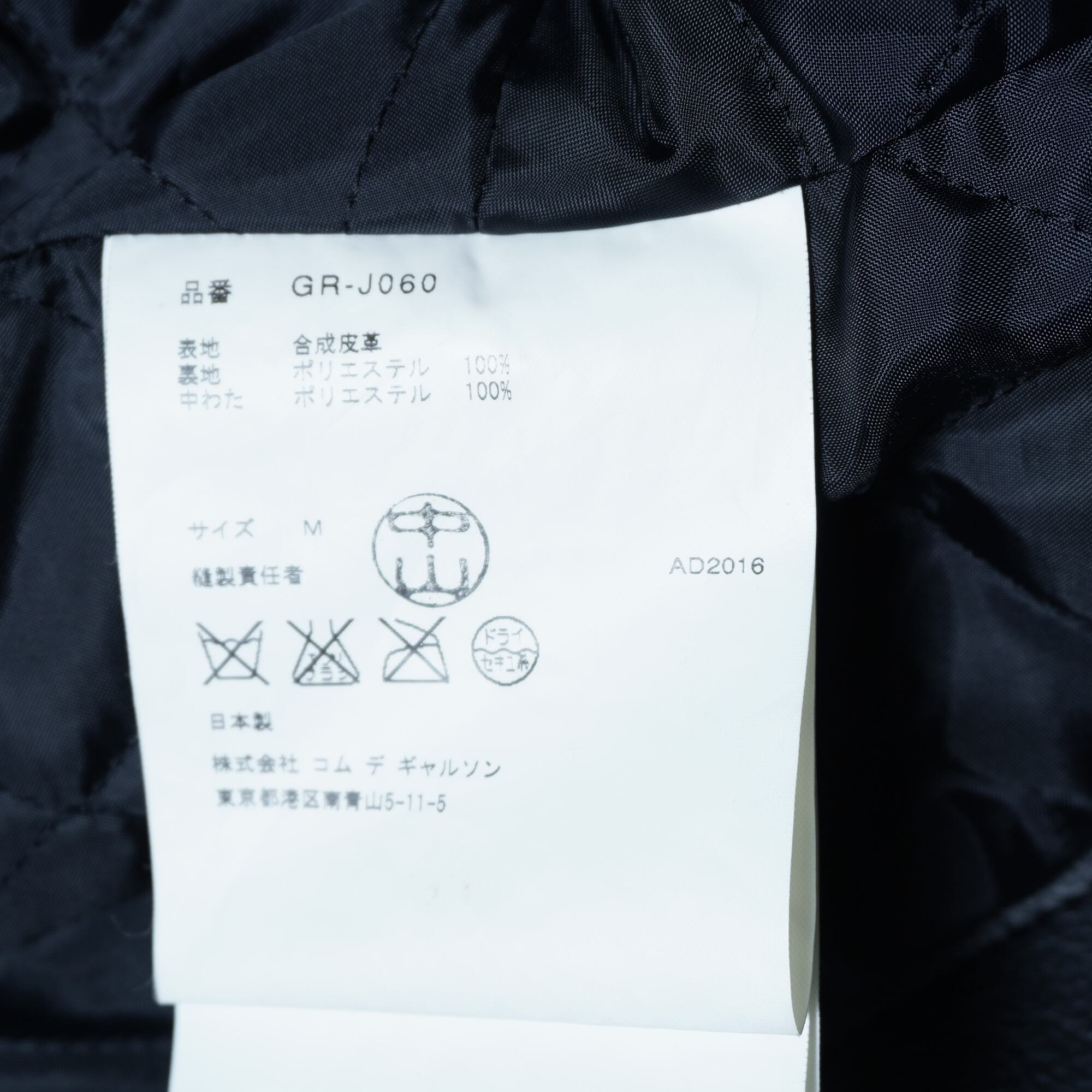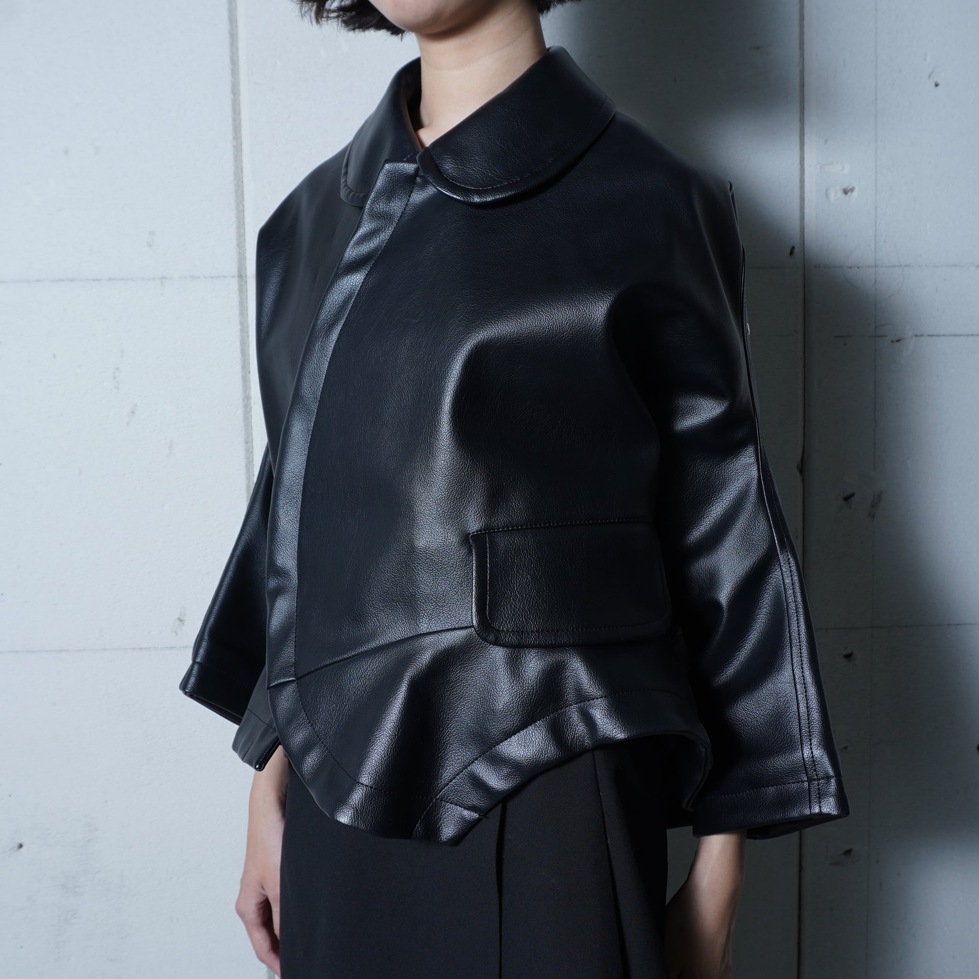 【COMME des GARCONS】コムデギャルソン 16年製 合皮レザー変形ジップジャケット black