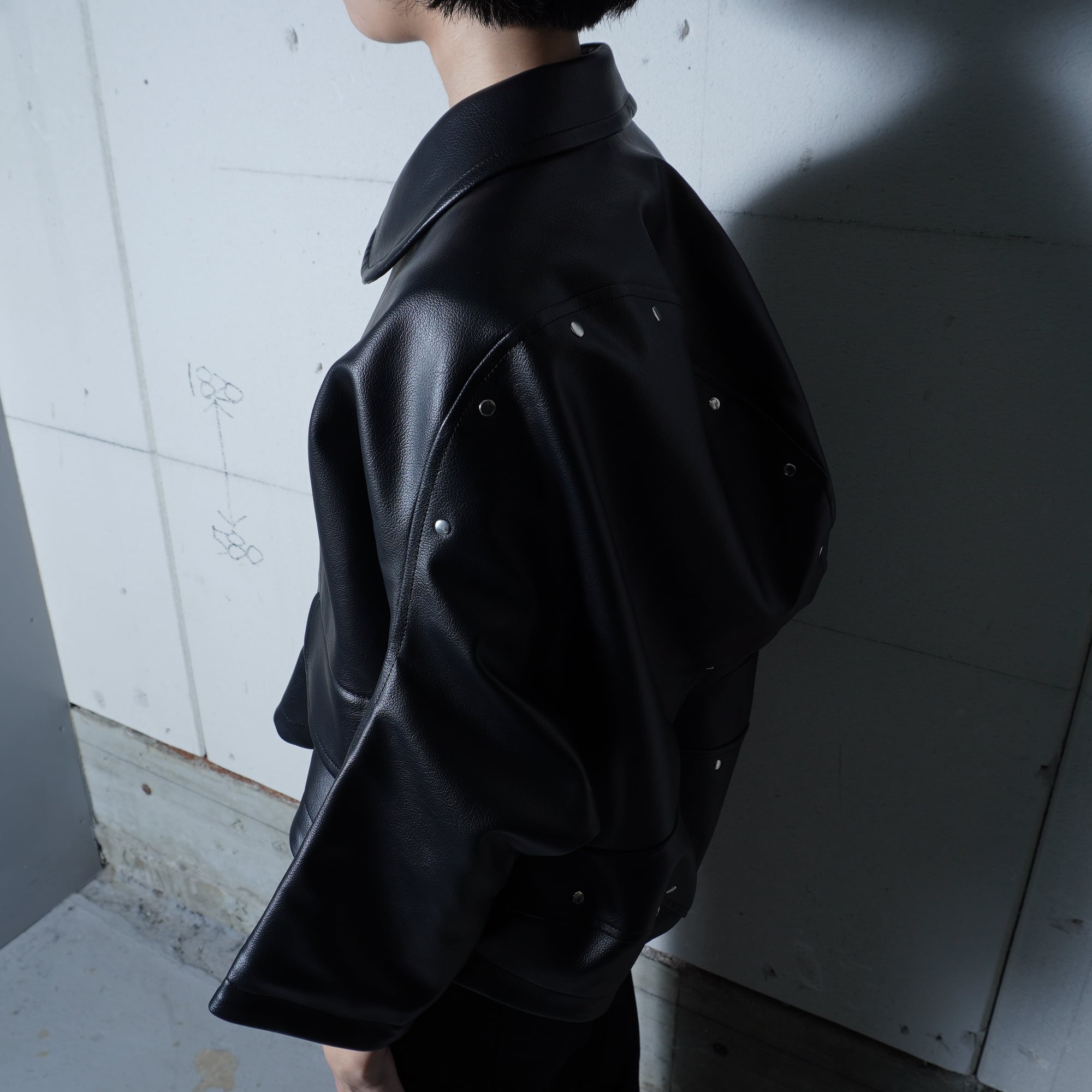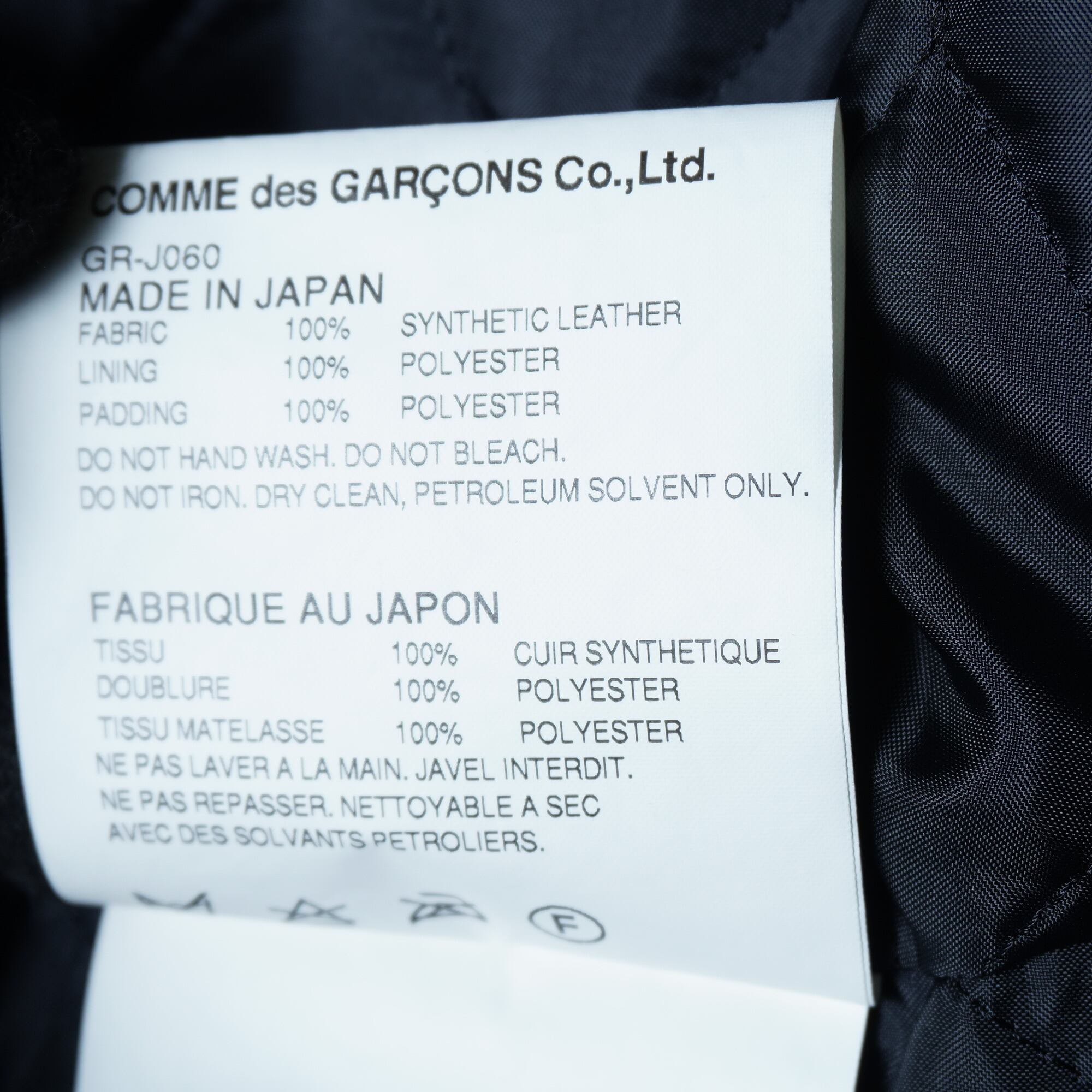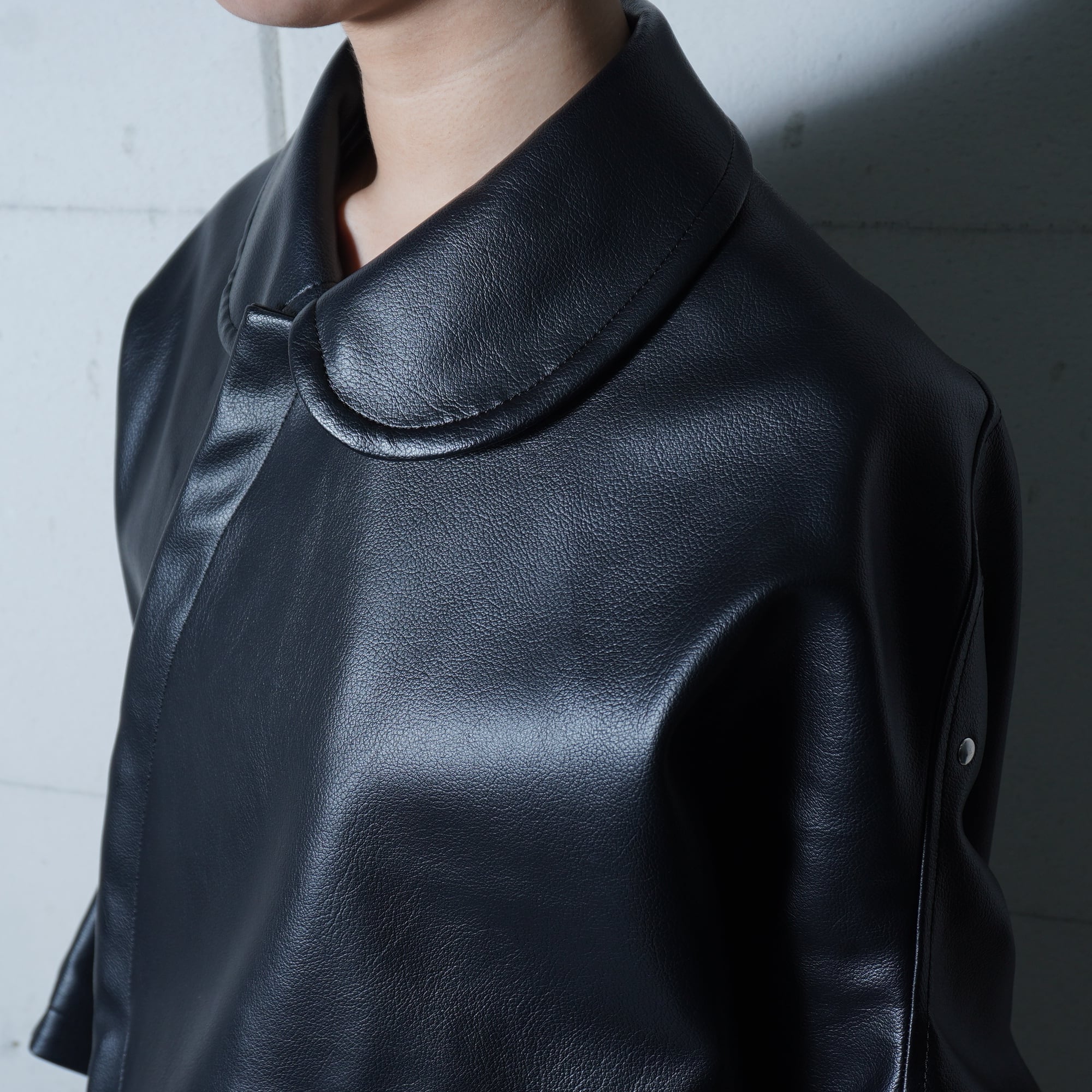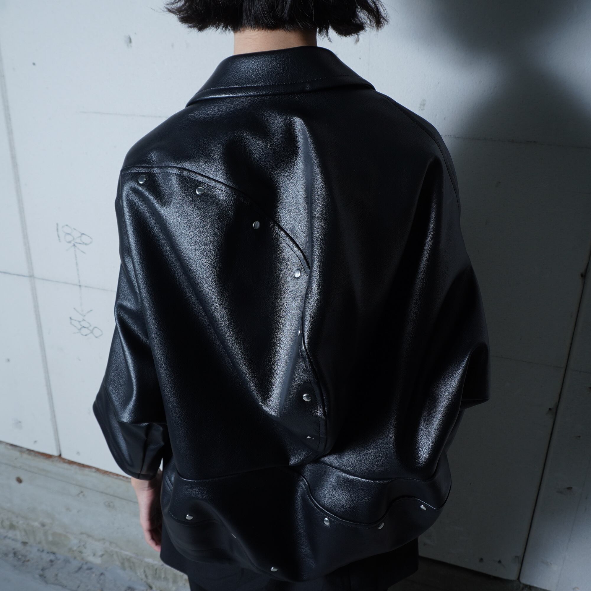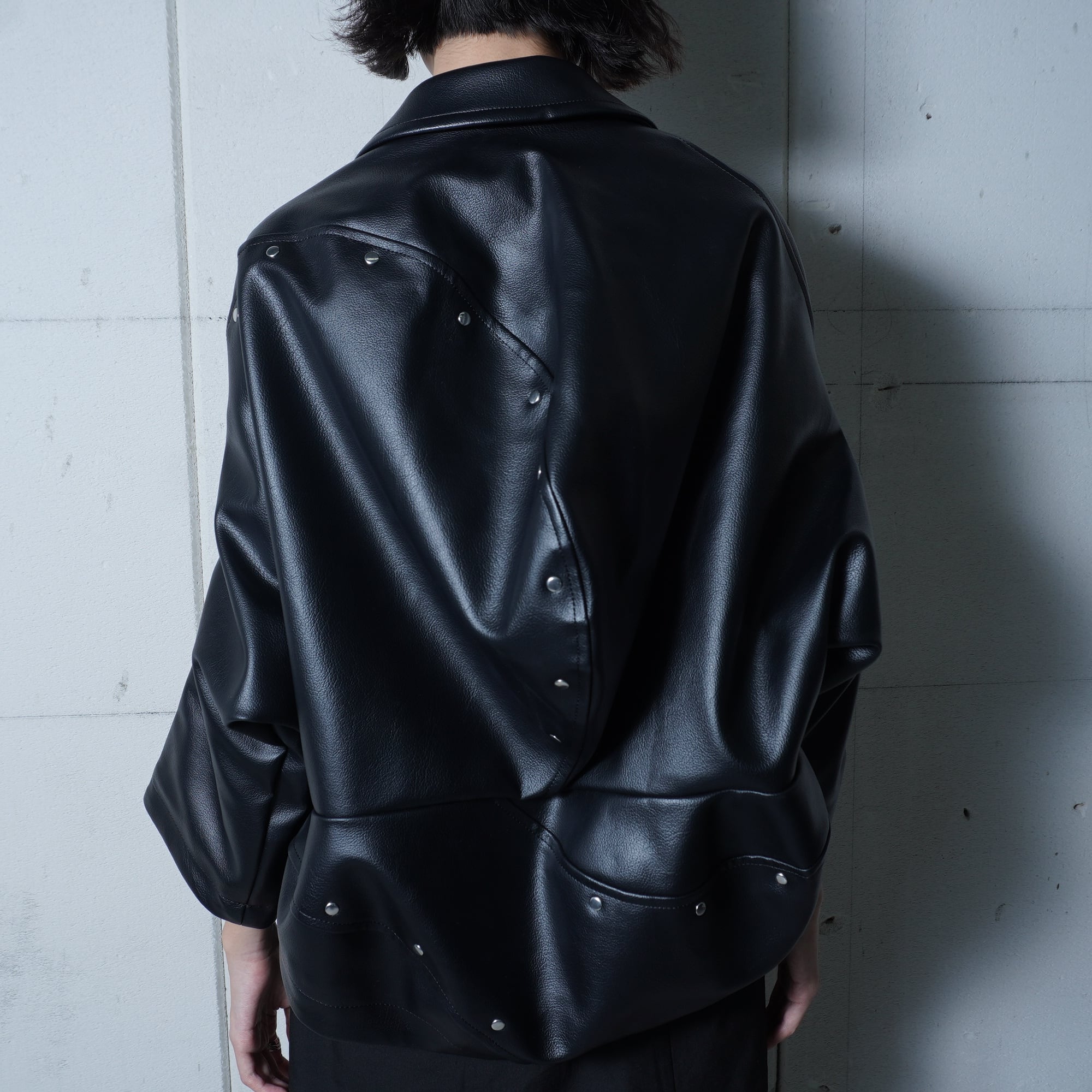 【COMME des GARCONS】コムデギャルソン 16年製 合皮レザー変形ジップジャケット black