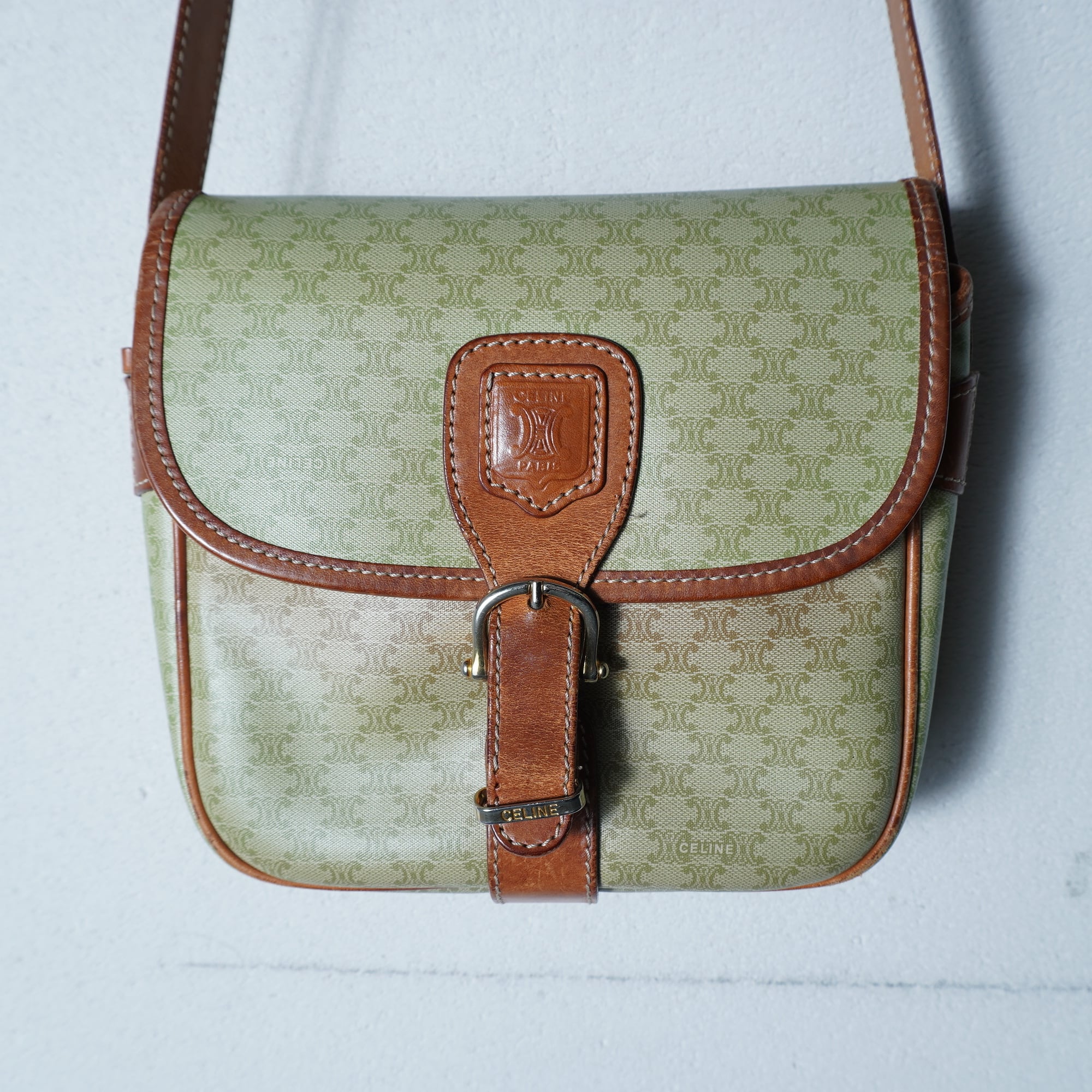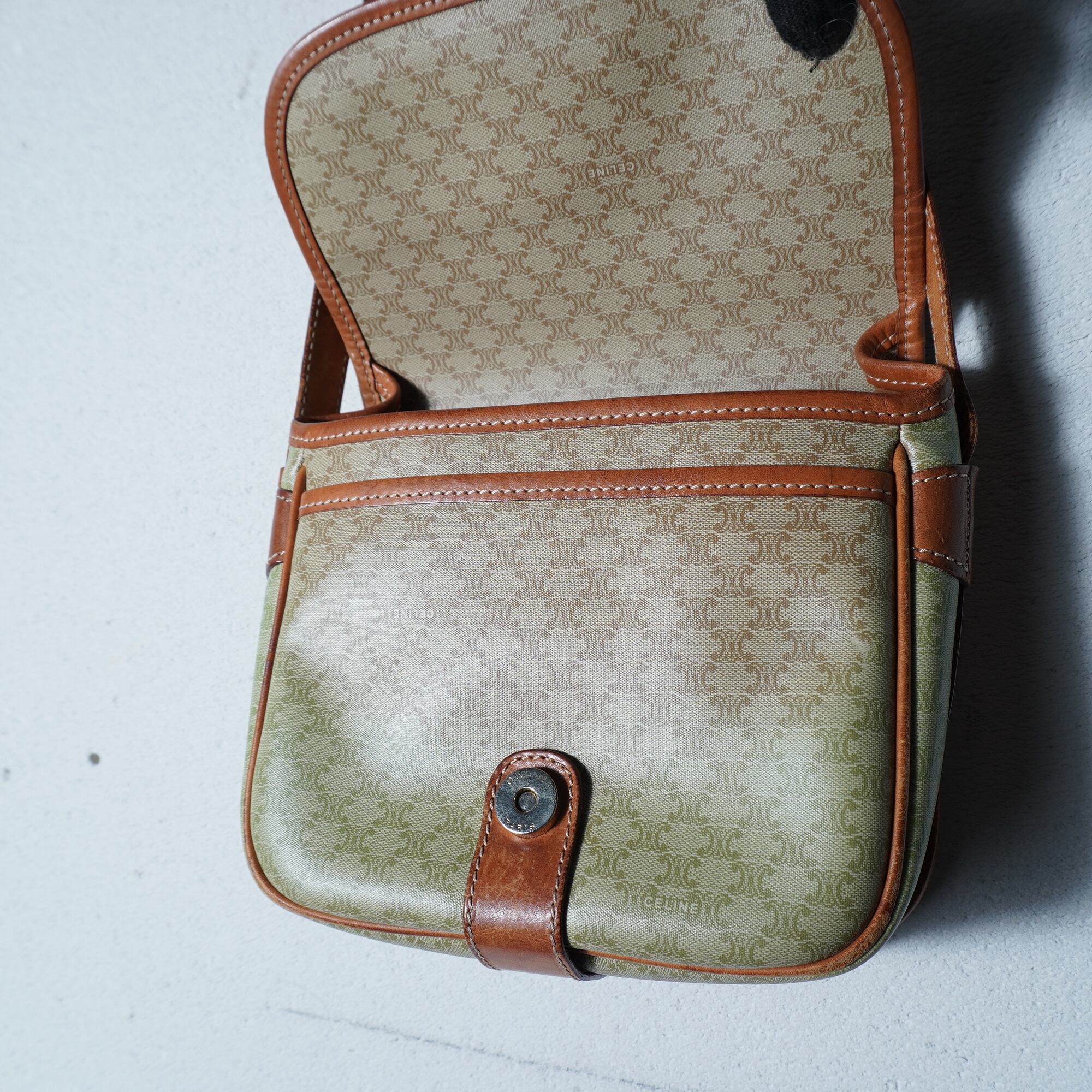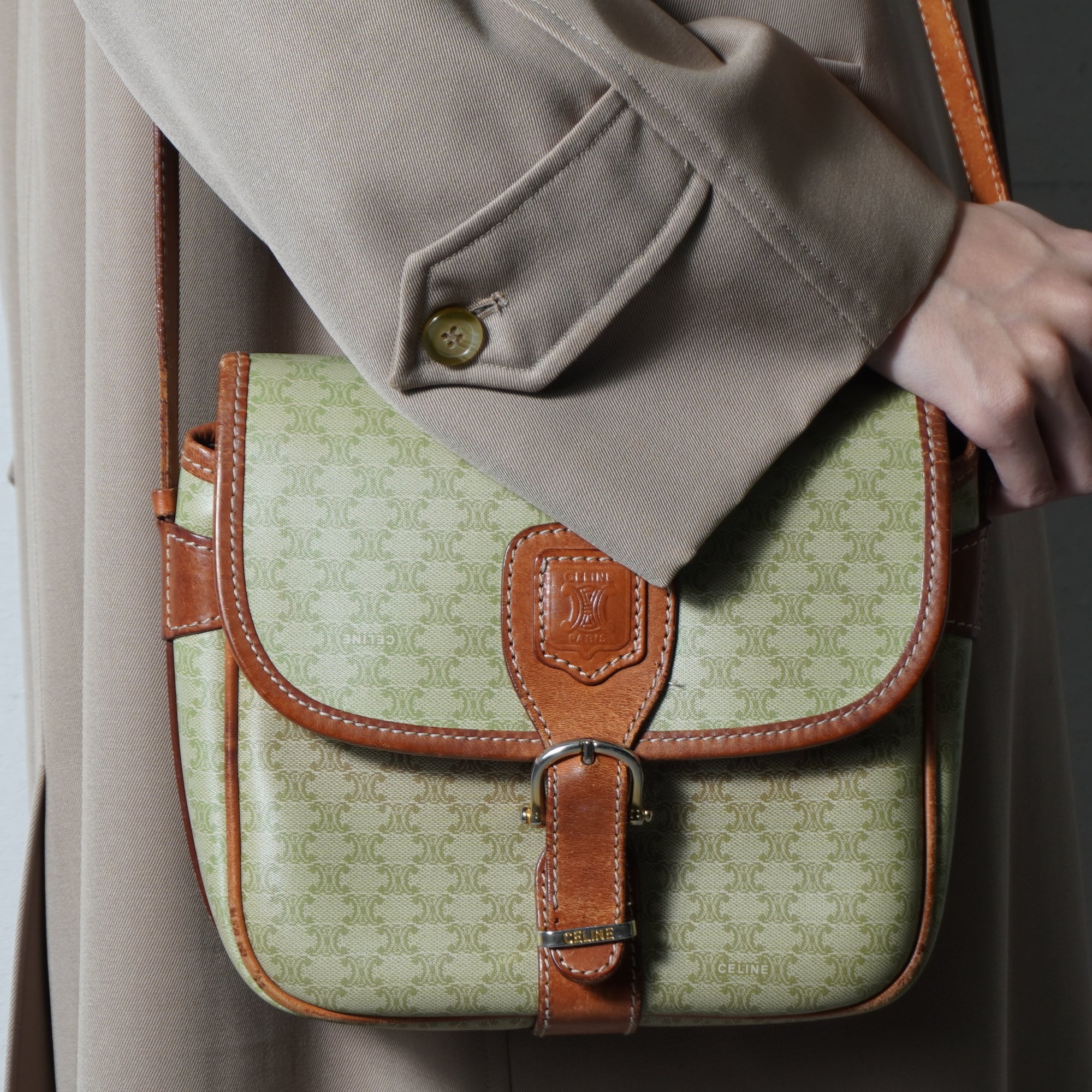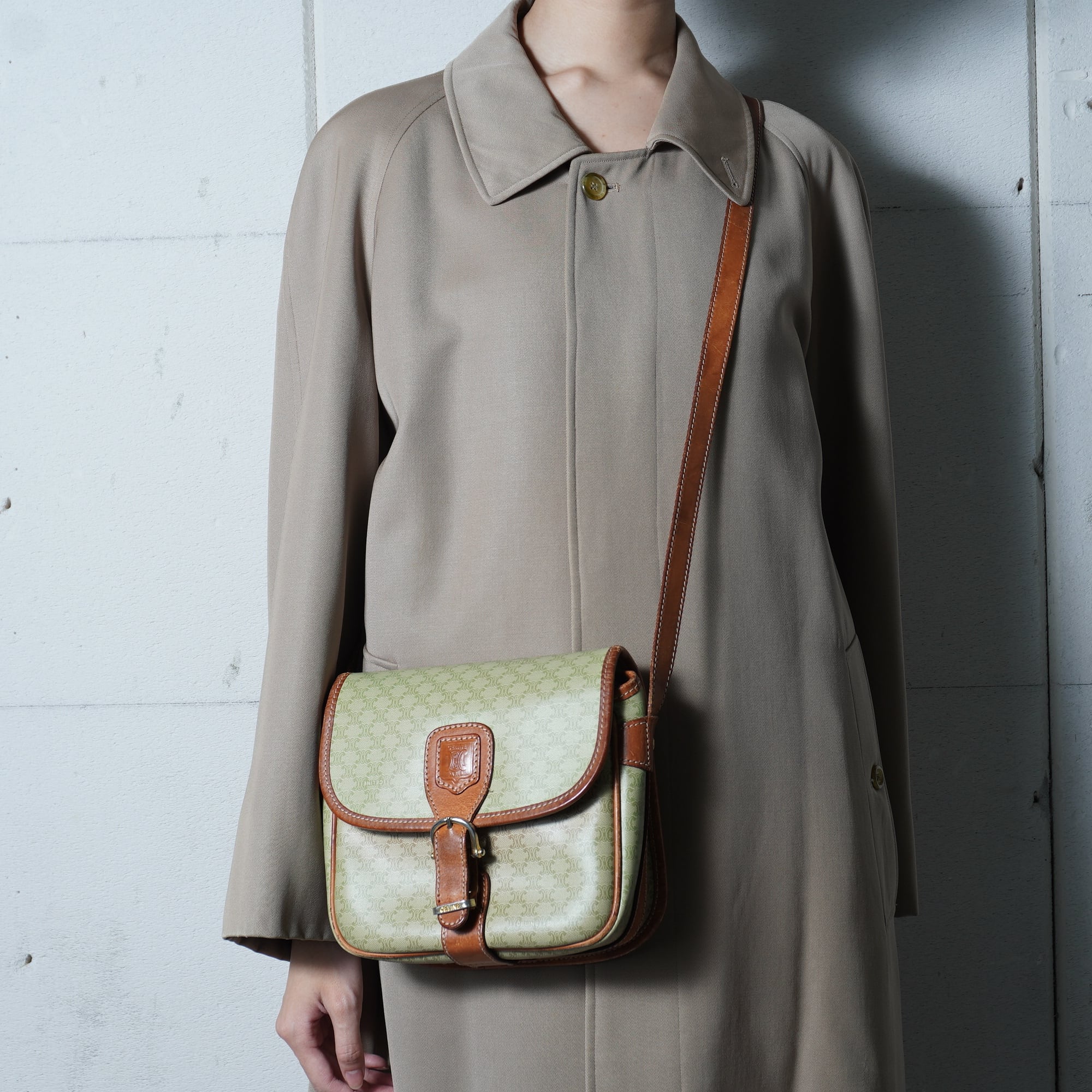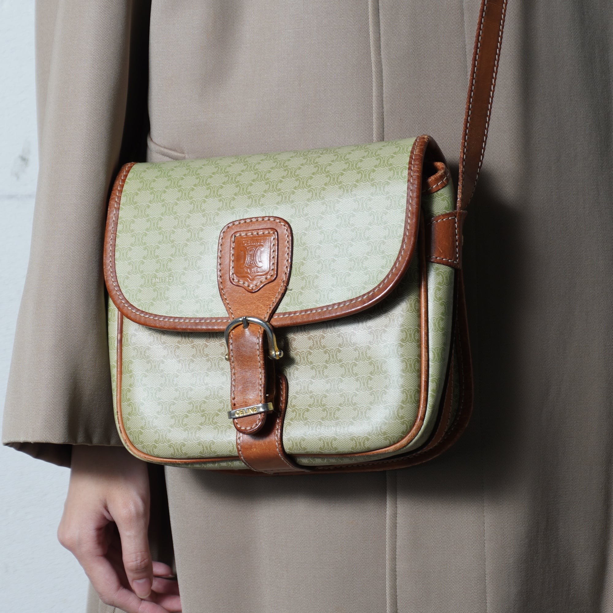 【CELINE】セリーヌ ”トリオンフロゴ” マカダム柄レザーショルダー beige