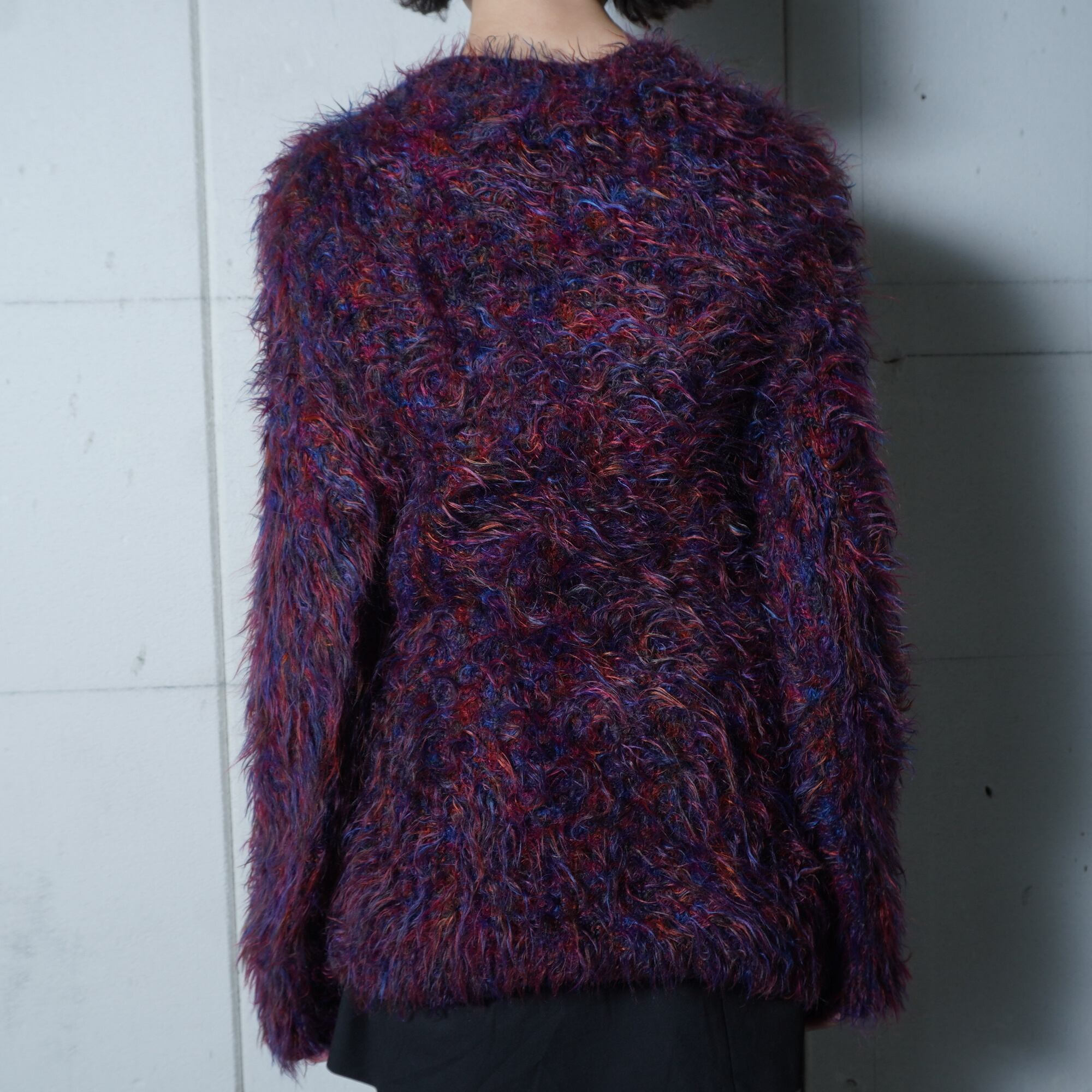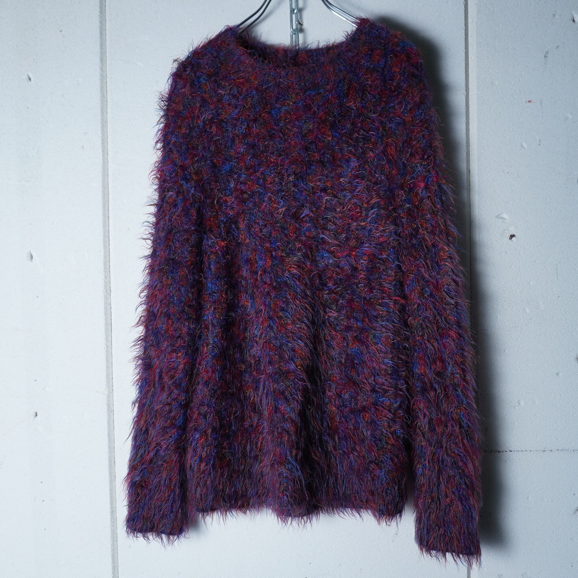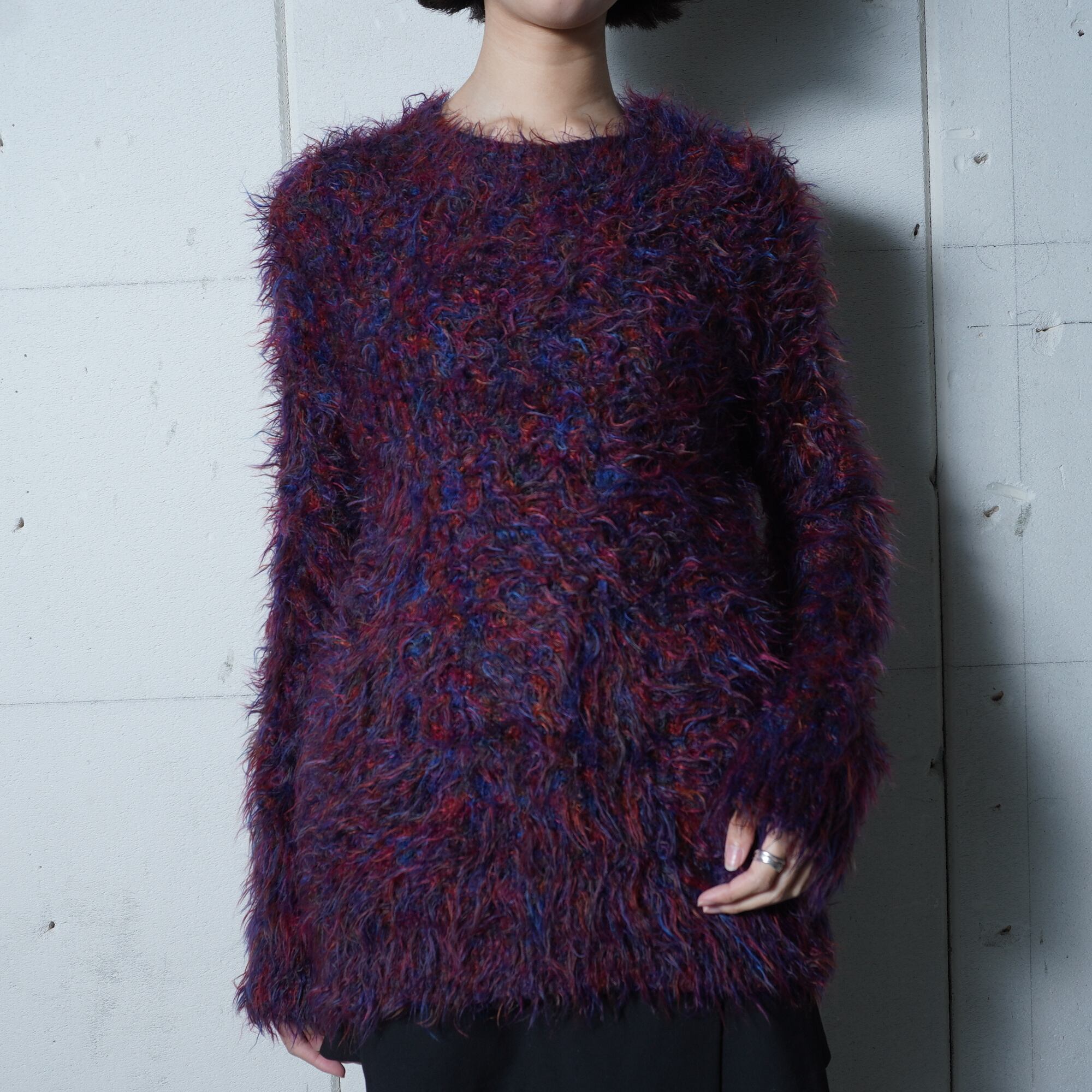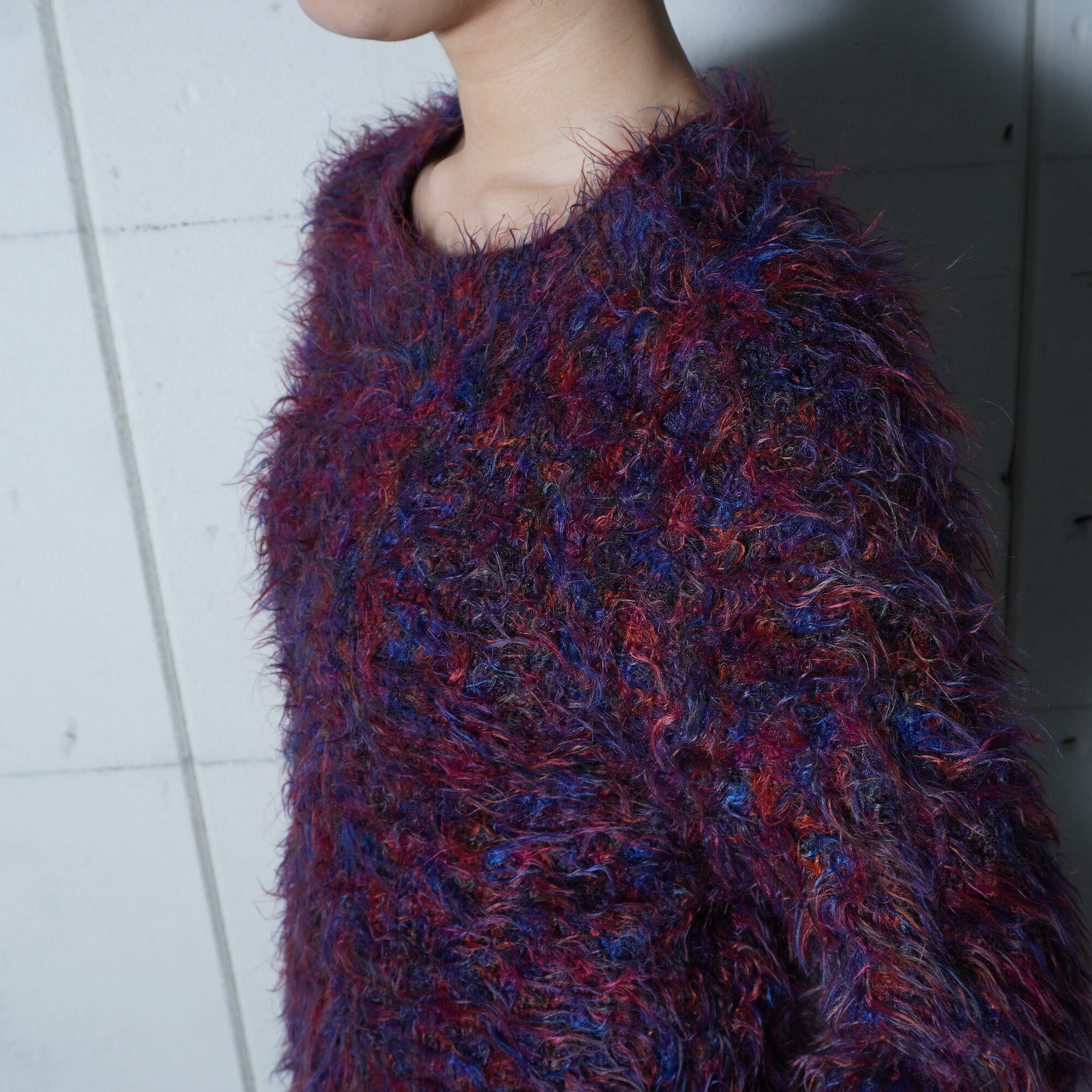 ・個性的なカラーが目を引くシャギーウールニット
