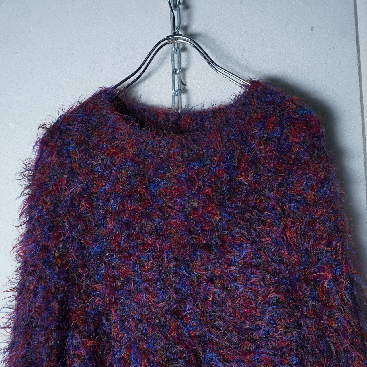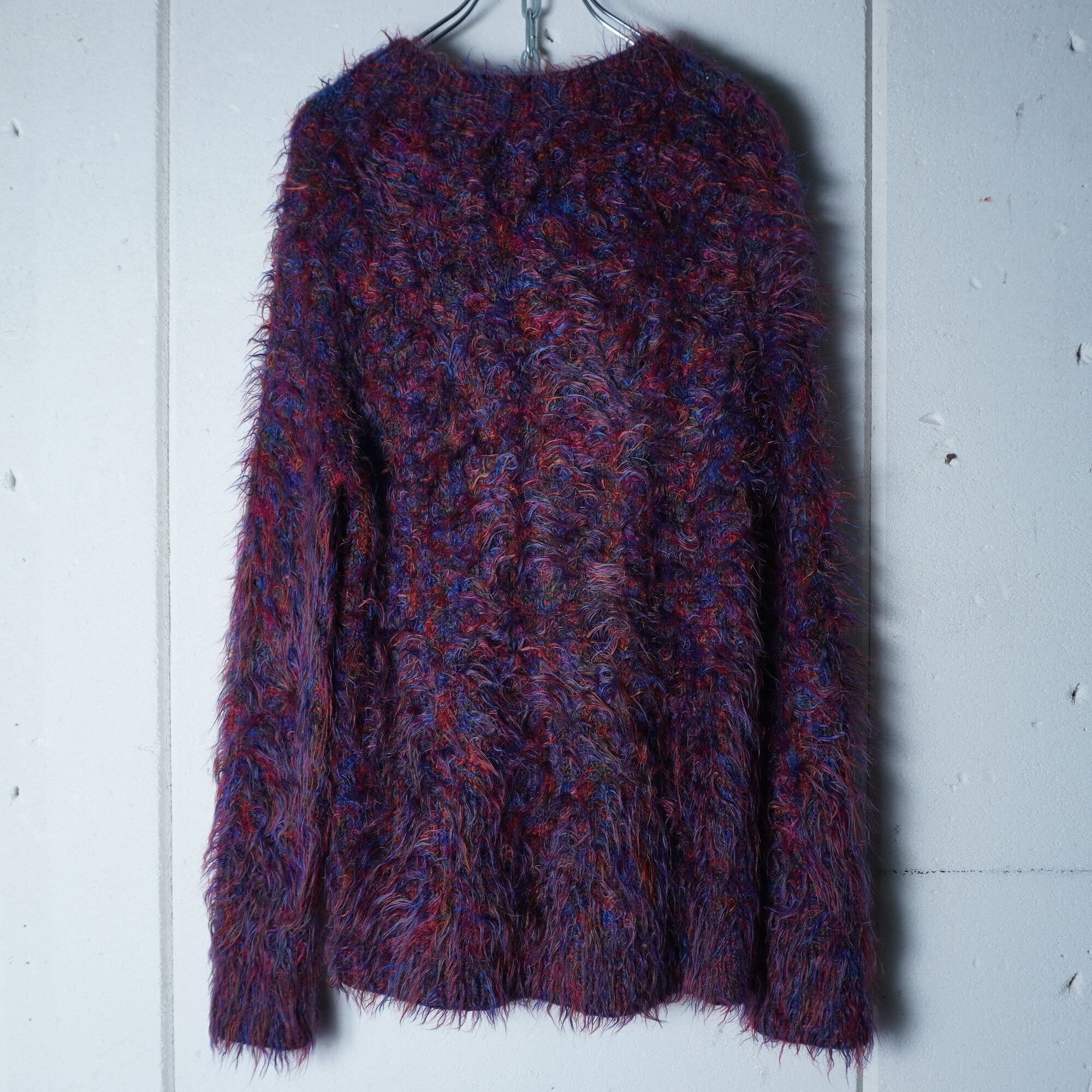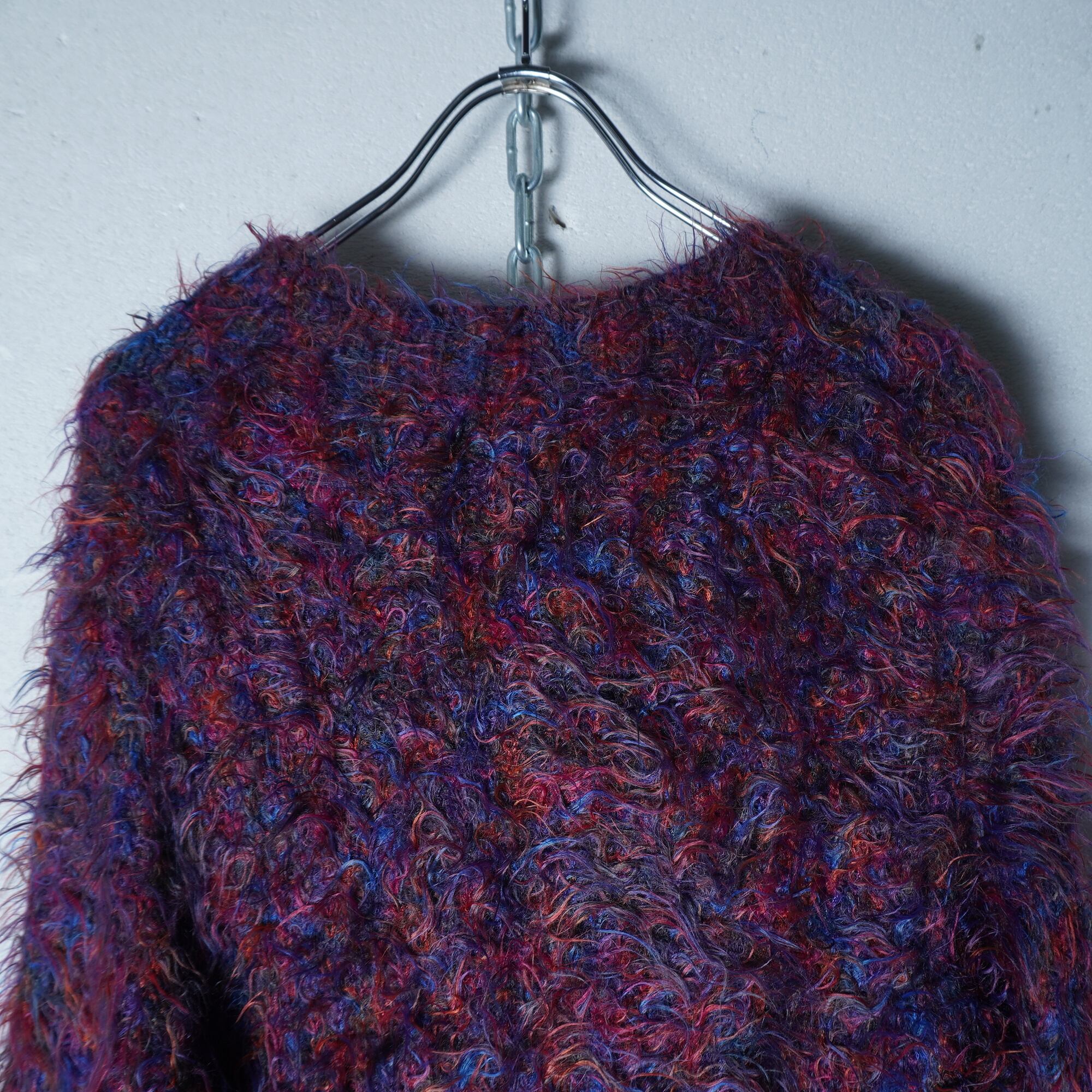 ・個性的なカラーが目を引くシャギーウールニット