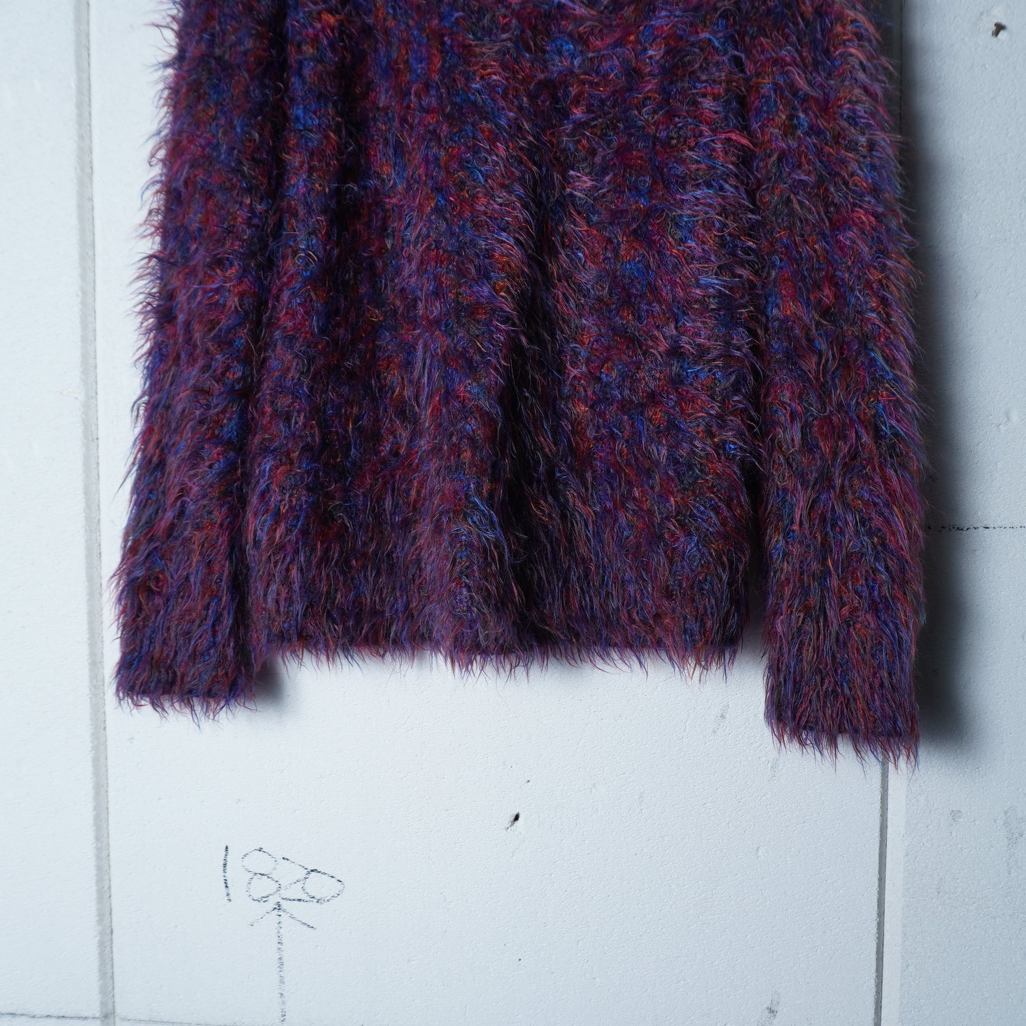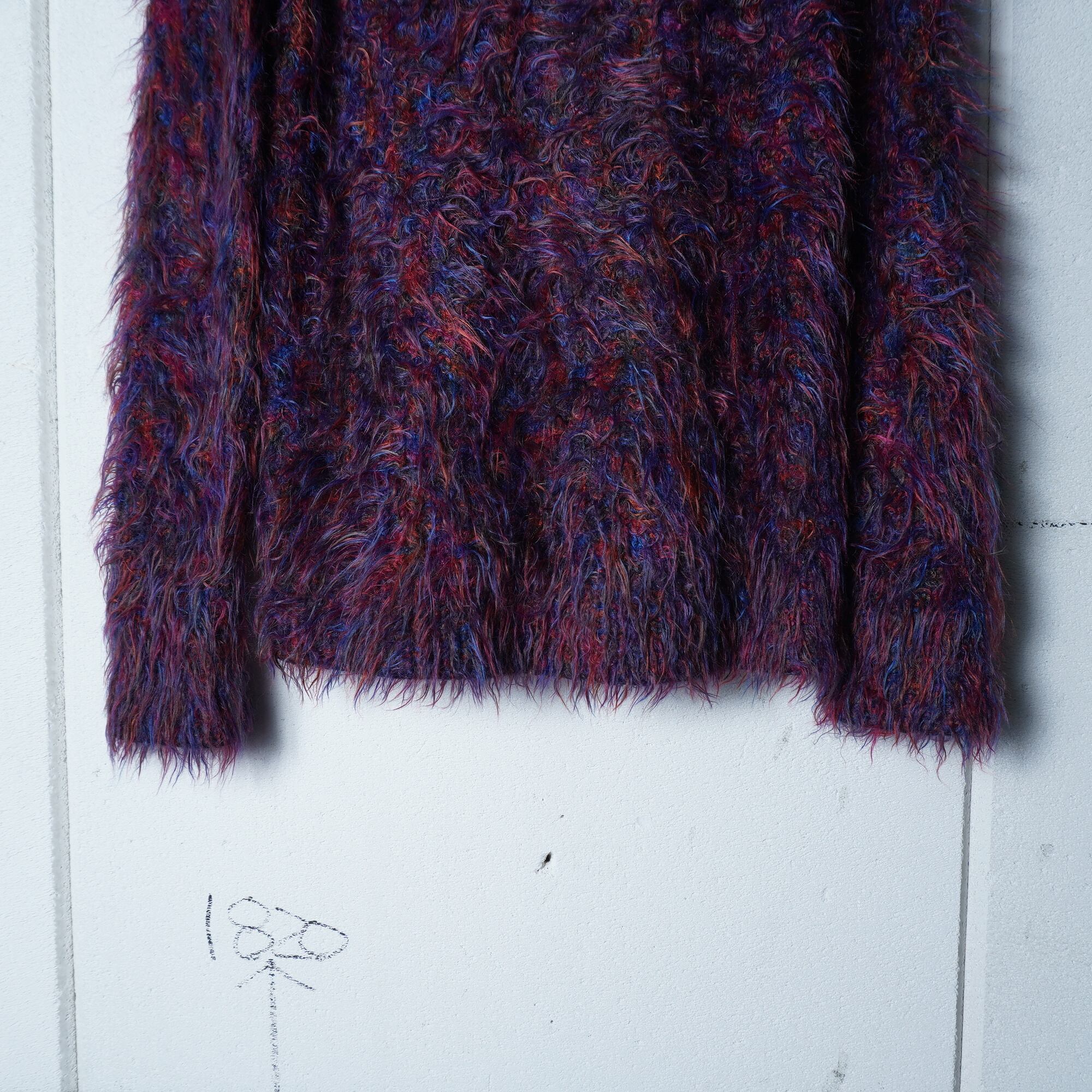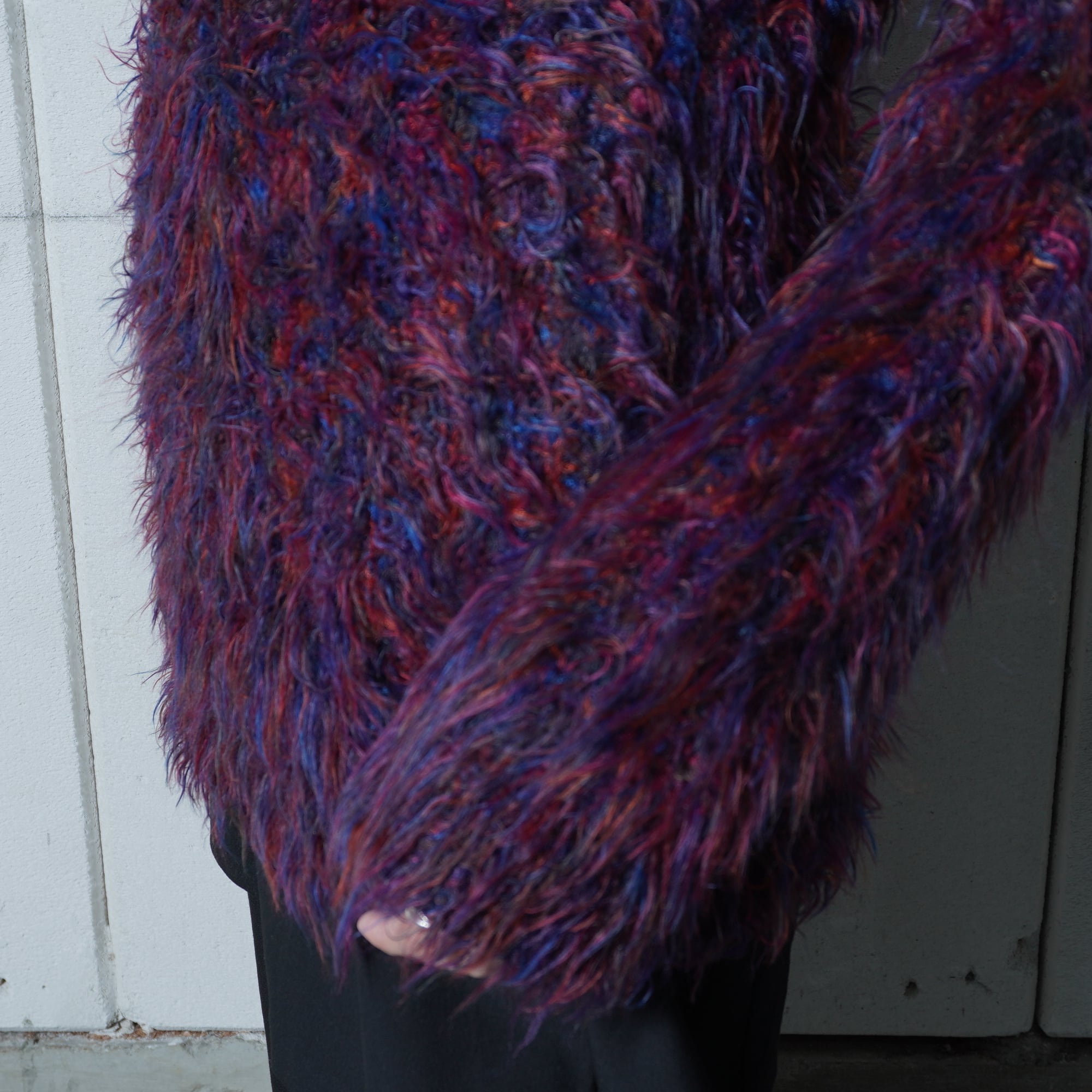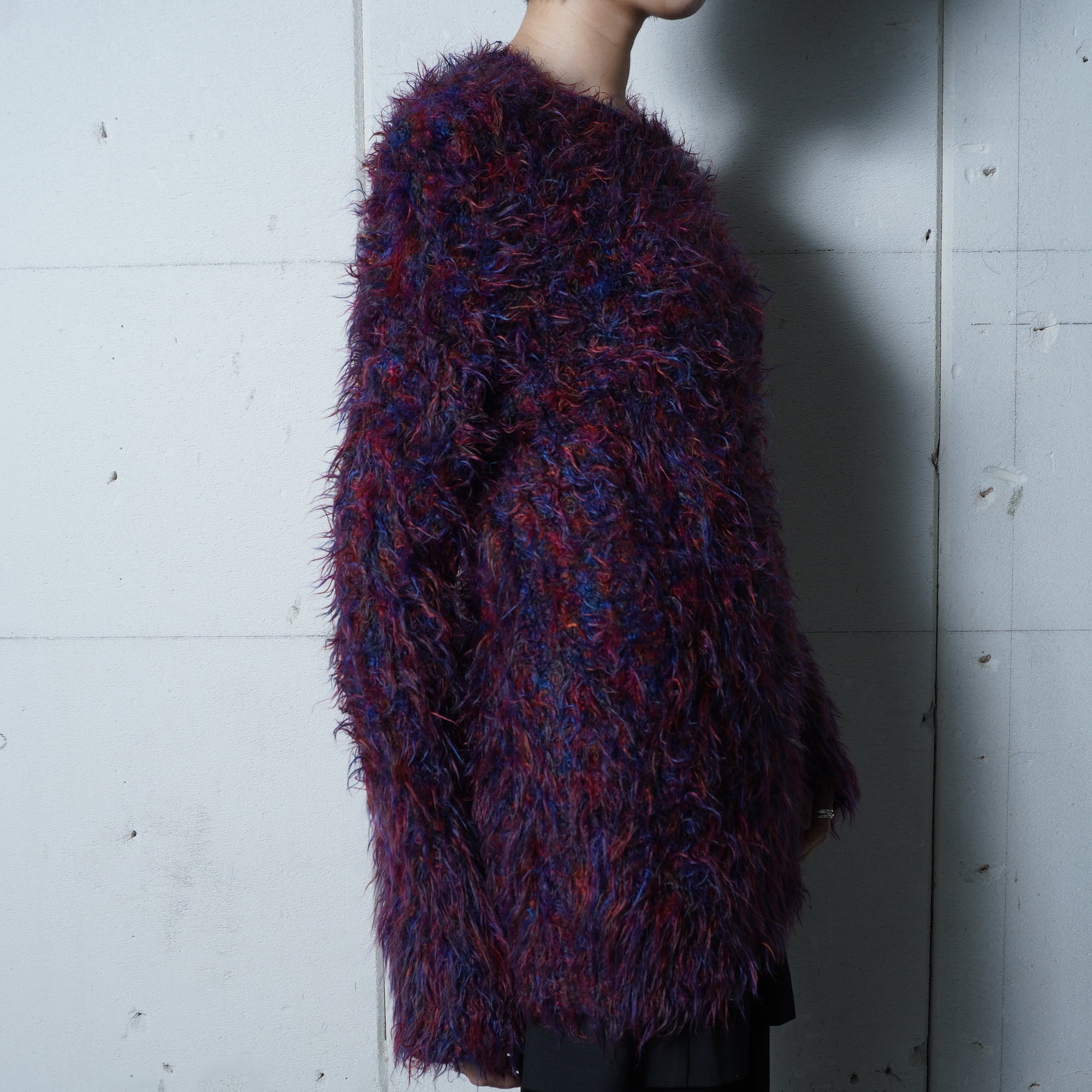 ・個性的なカラーが目を引くシャギーウールニット
