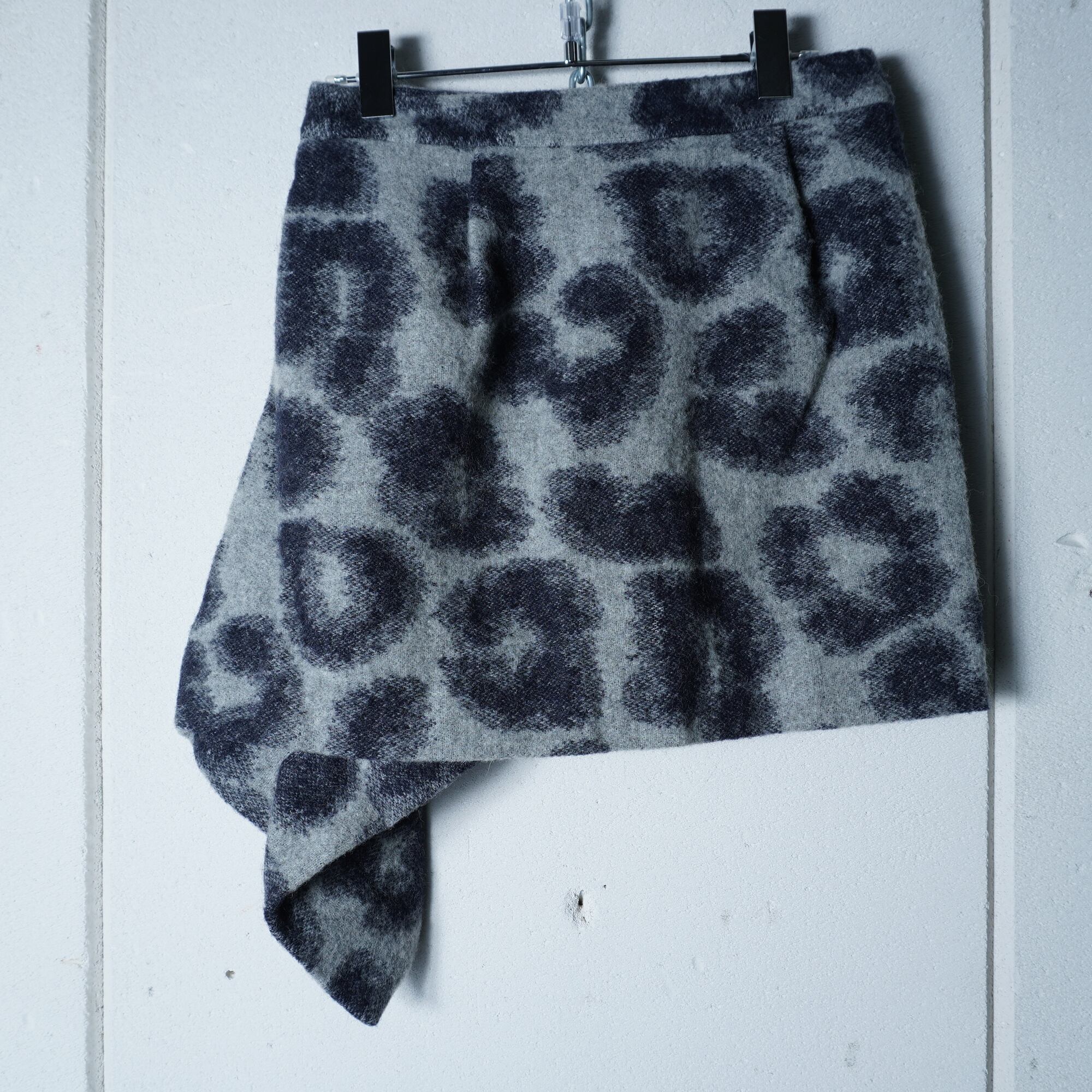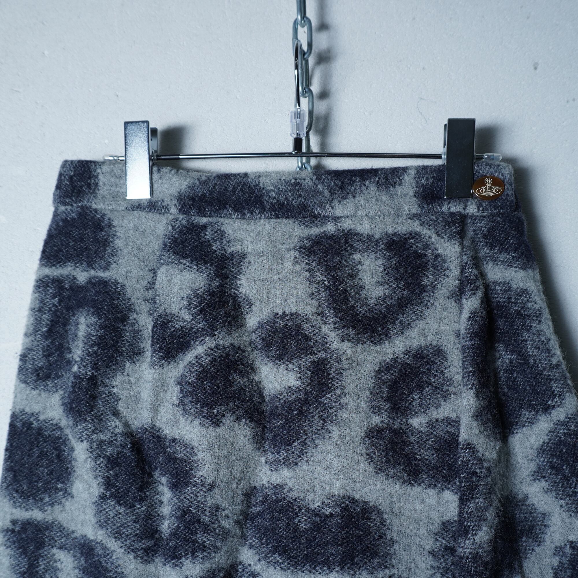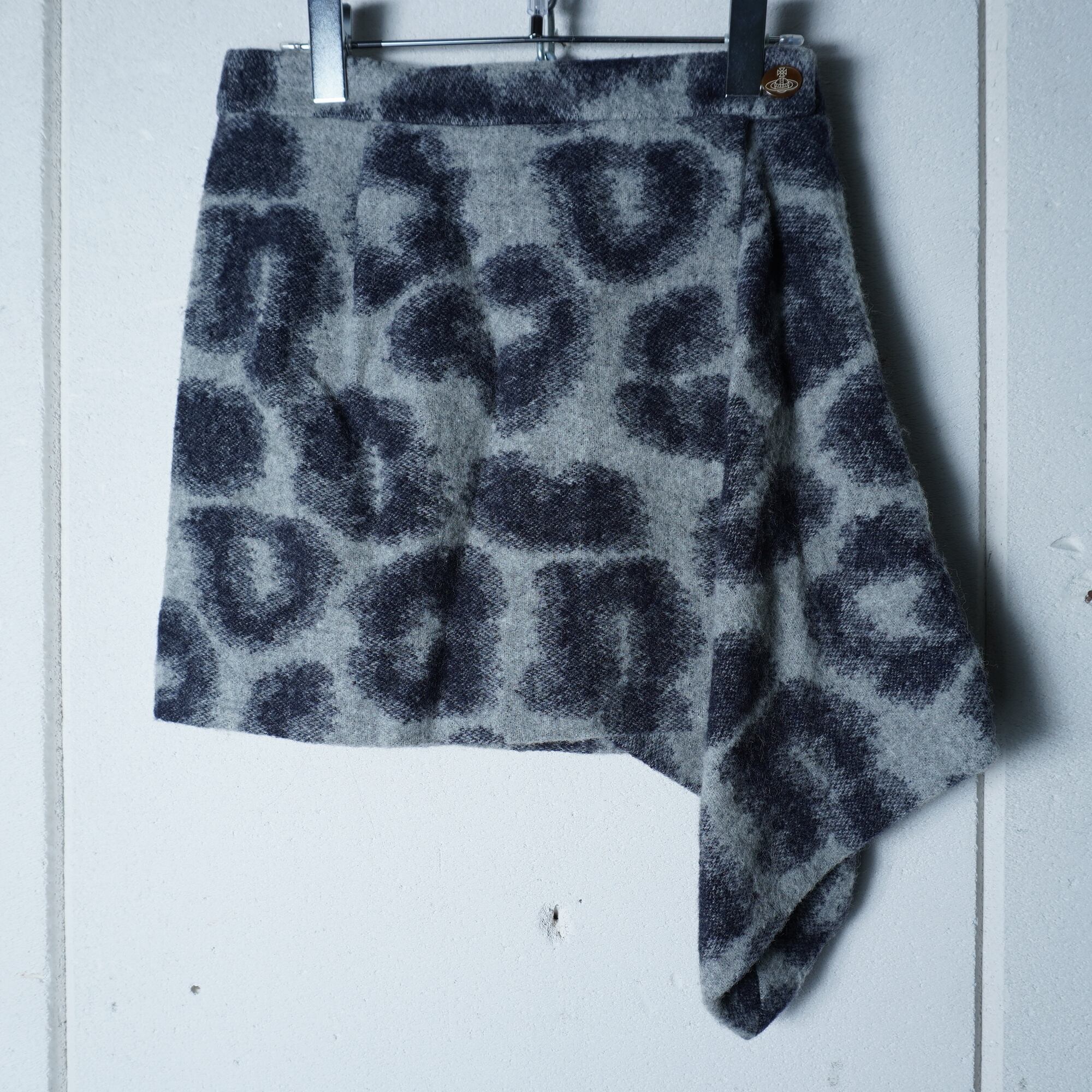 【Vivienne Westwood】ヴィヴィアンウエストウッド ”オーブロゴボタン” レオパード柄変形ミニスカート black&white
