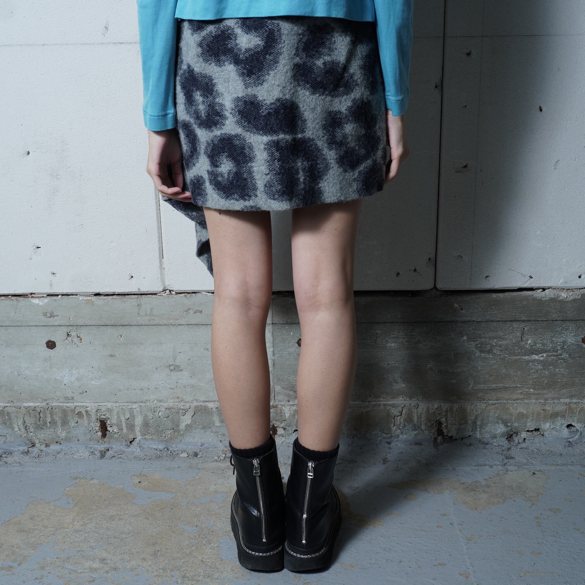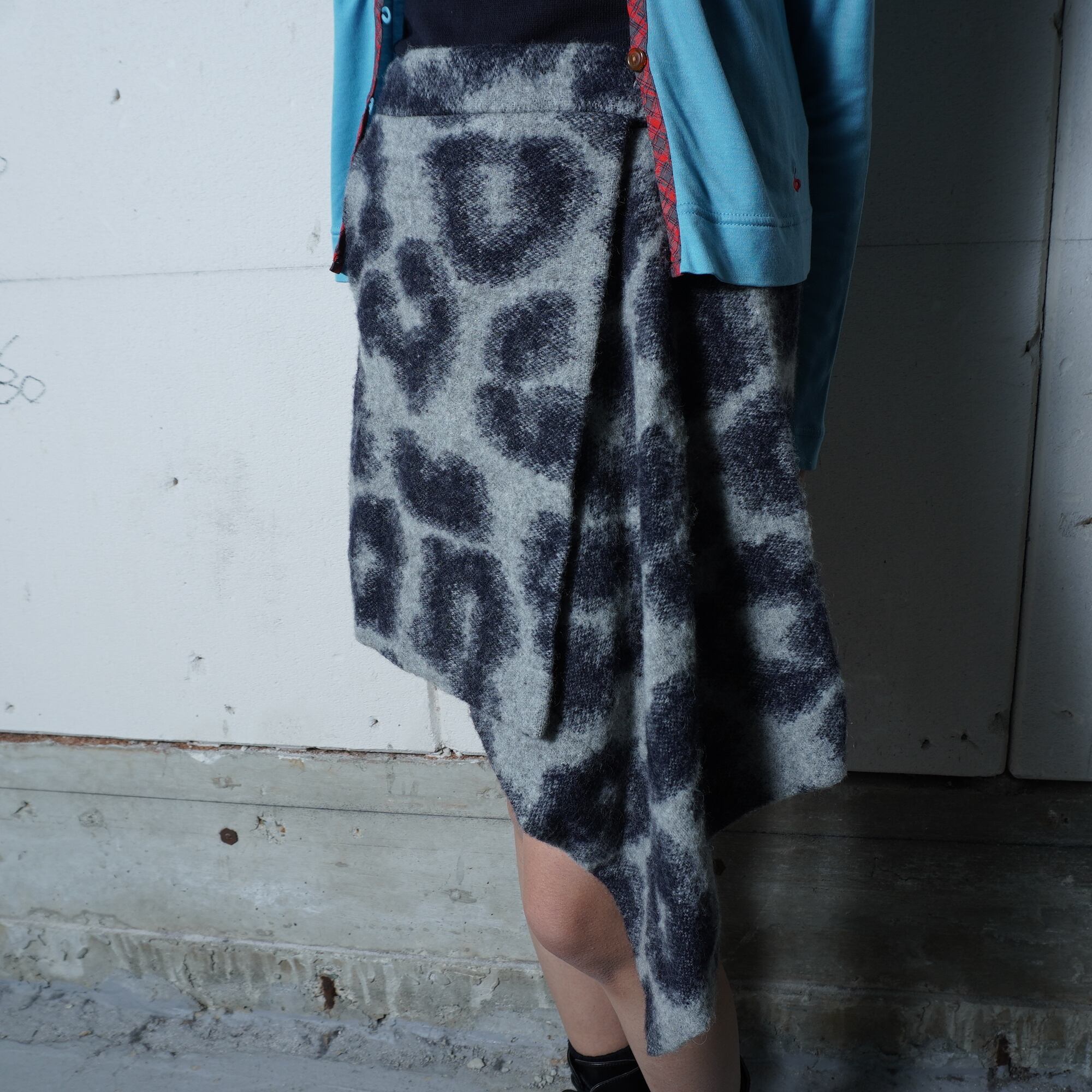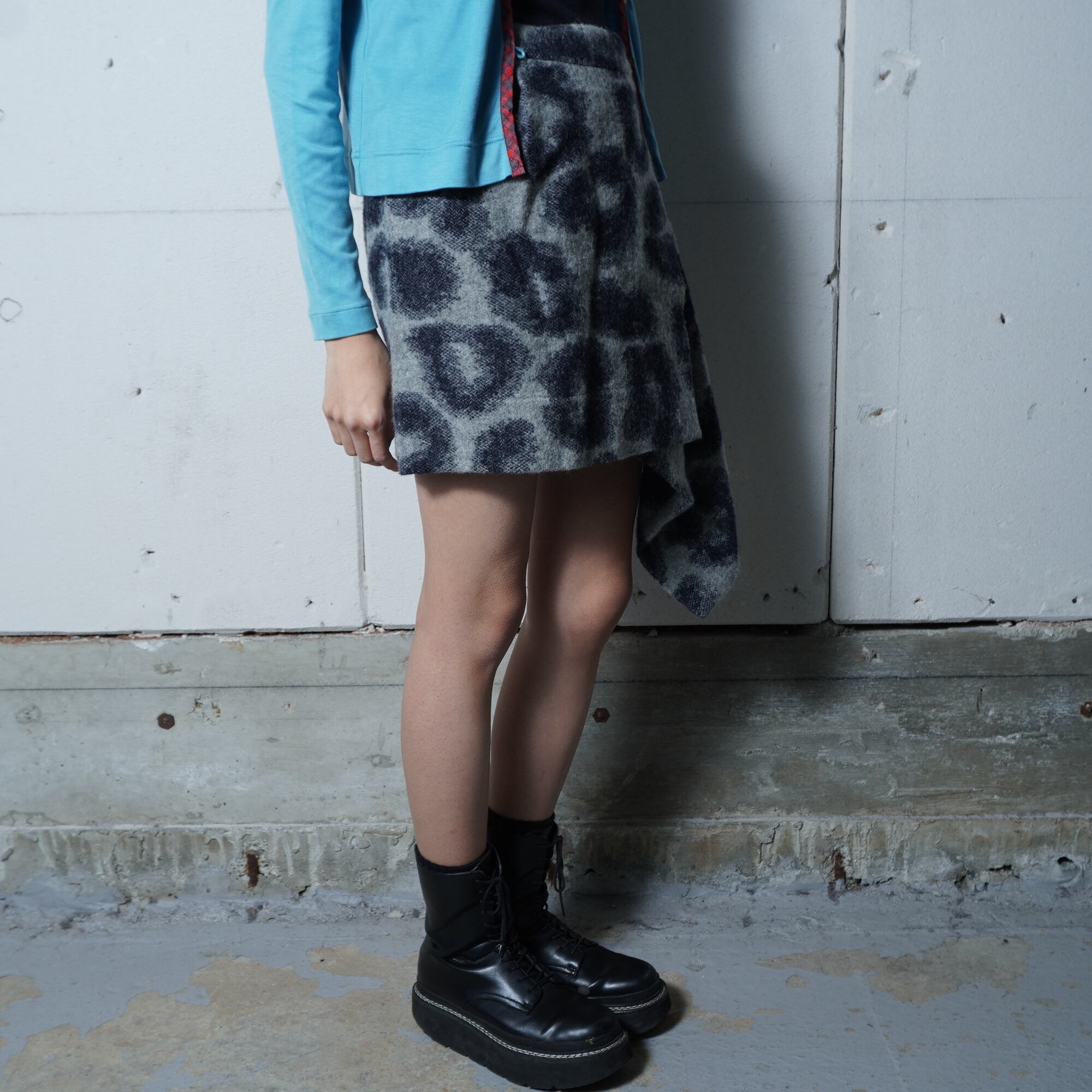 【Vivienne Westwood】ヴィヴィアンウエストウッド ”オーブロゴボタン” レオパード柄変形ミニスカート black&white