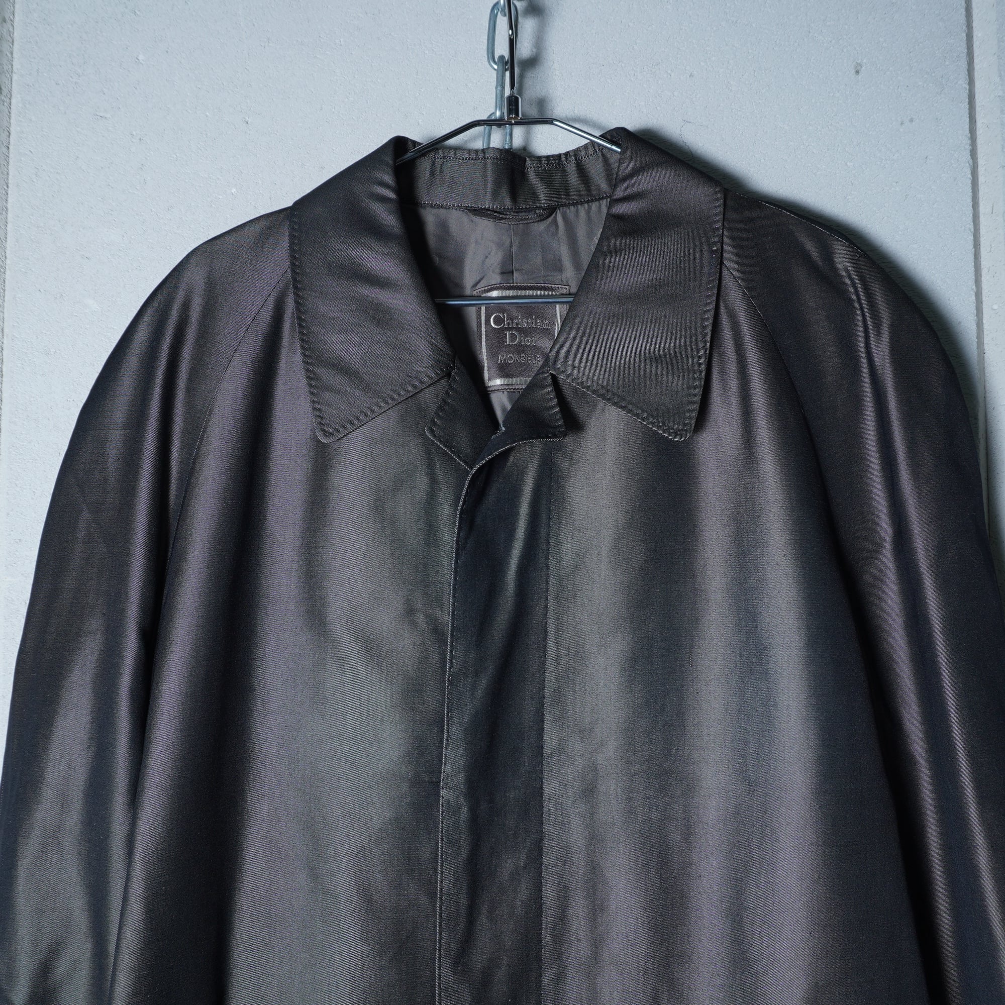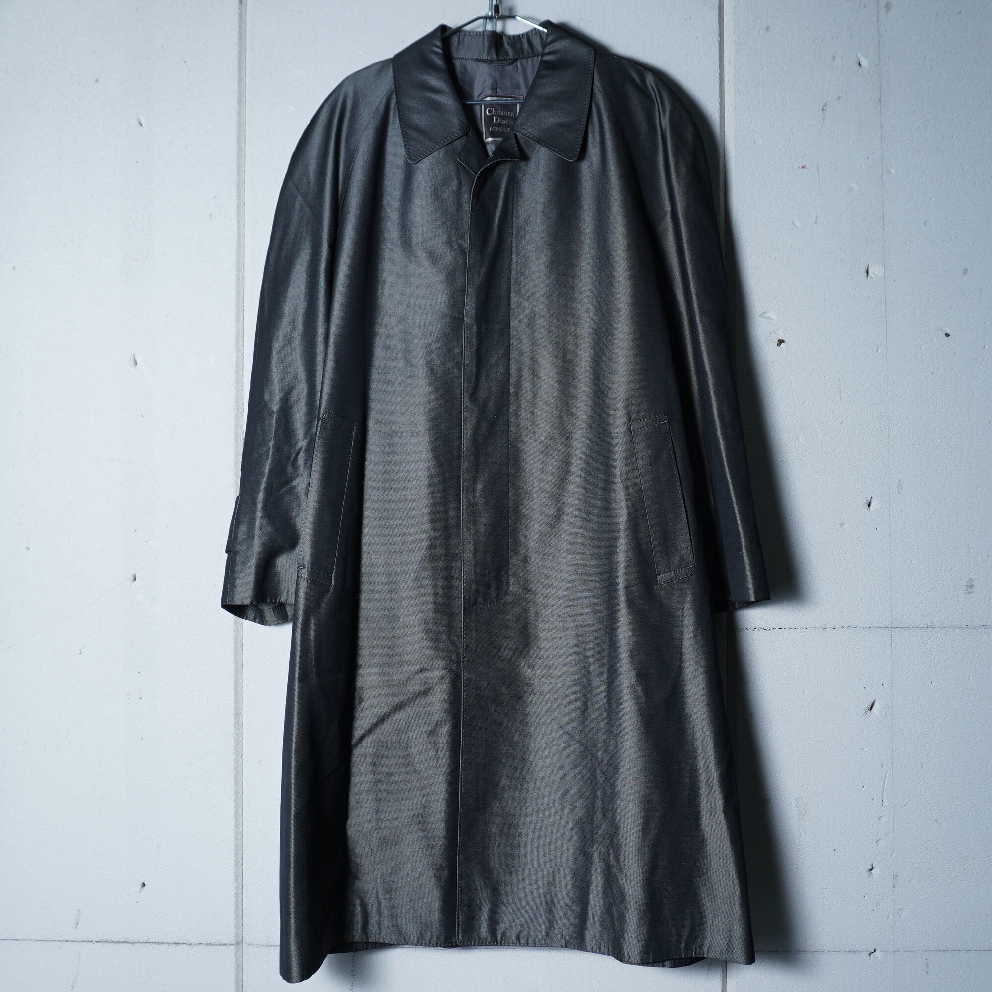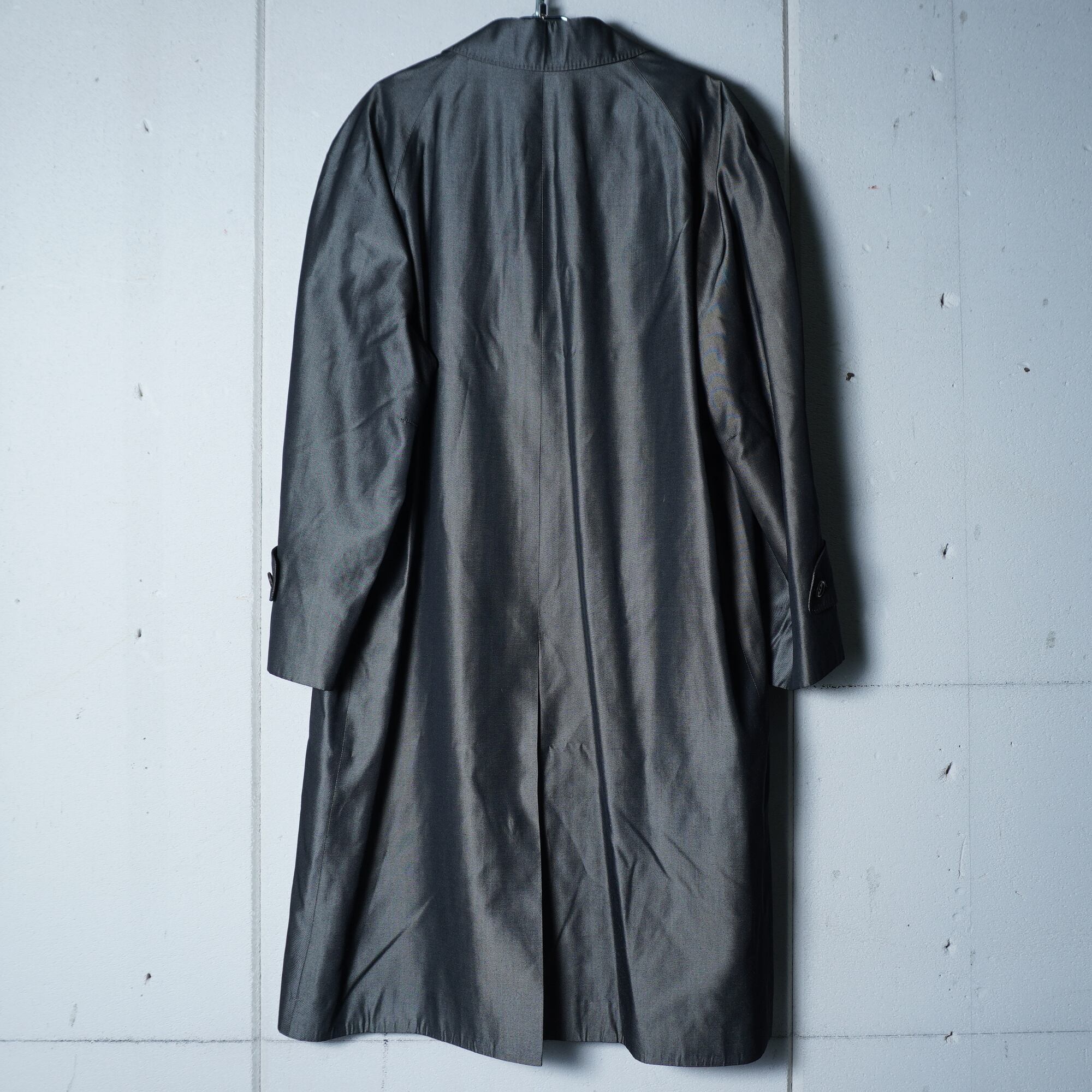 【Christian Dior】クリスチャンディオール 光沢シルク100% ステンカラーコート gray