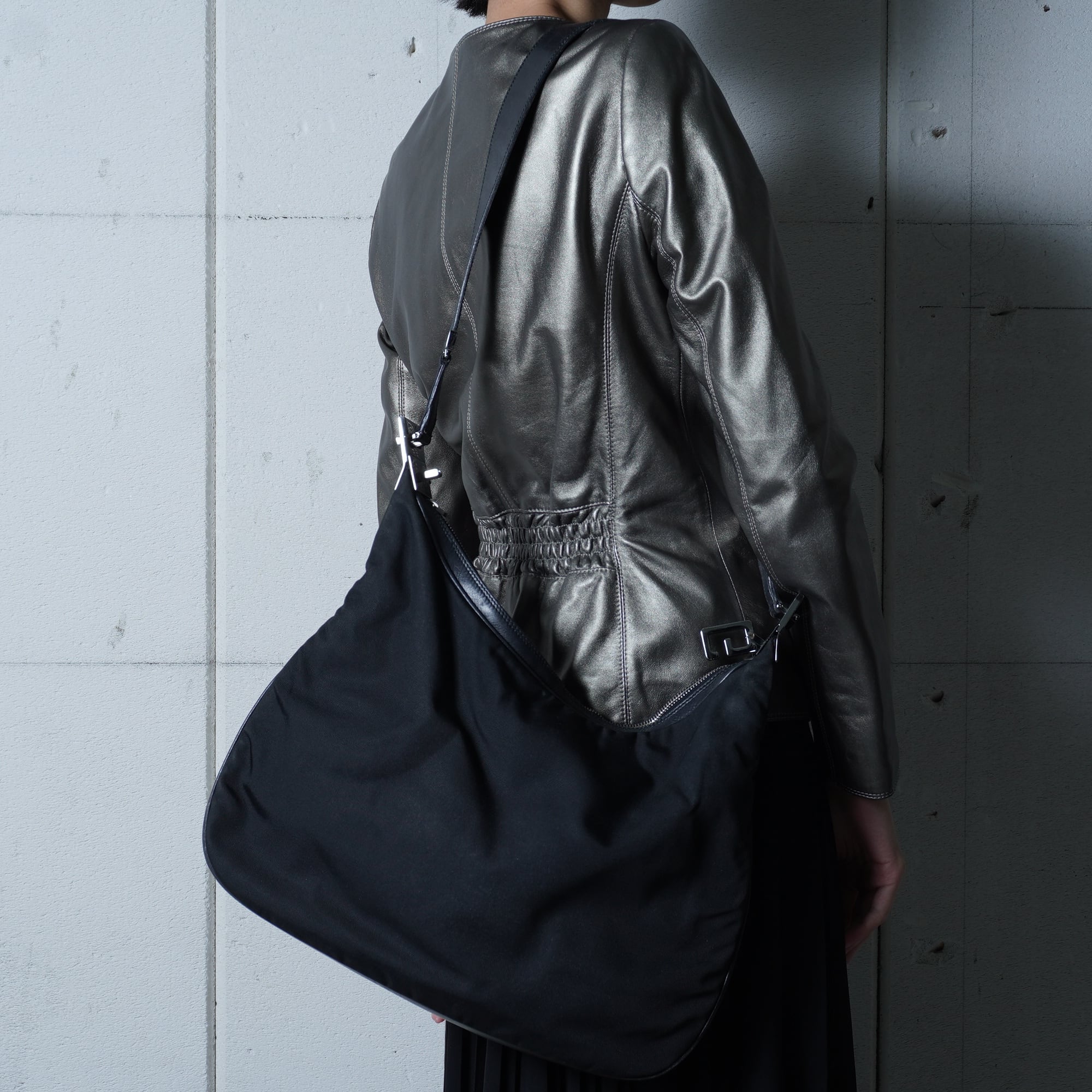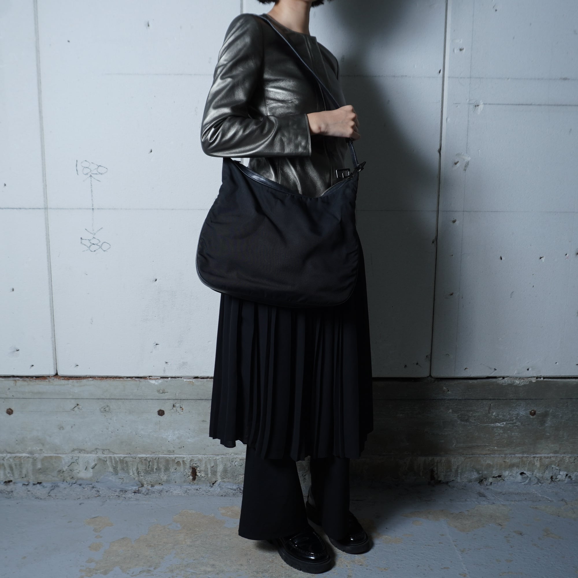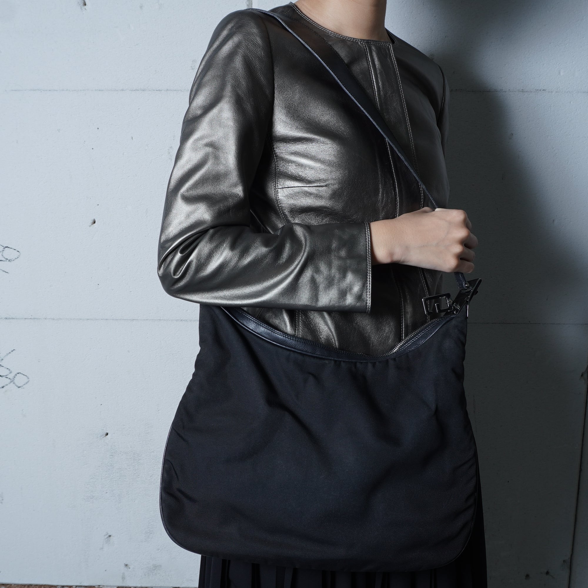 【GUCCI】グッチ ”ロゴ入” レザーワンショルダーバッグ black