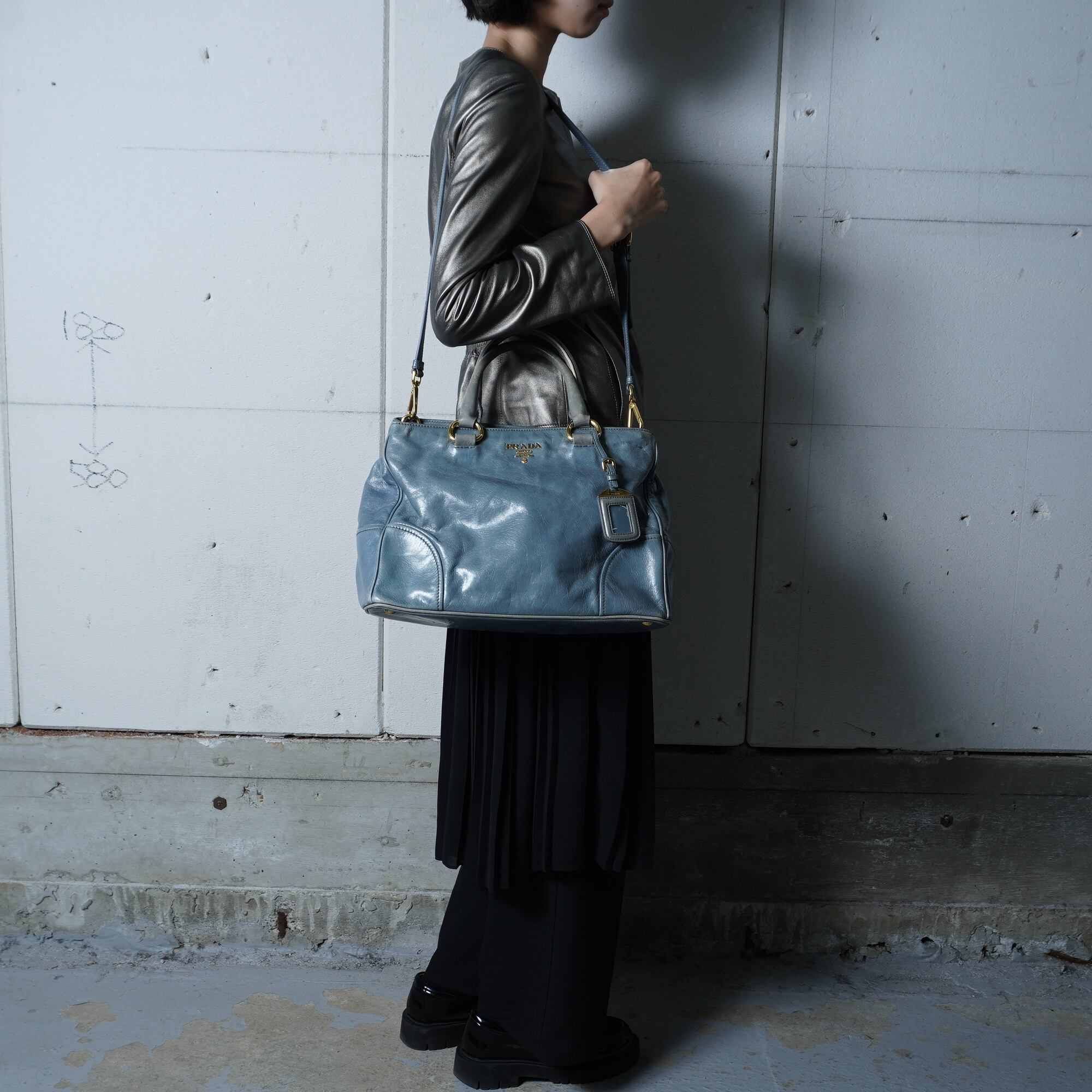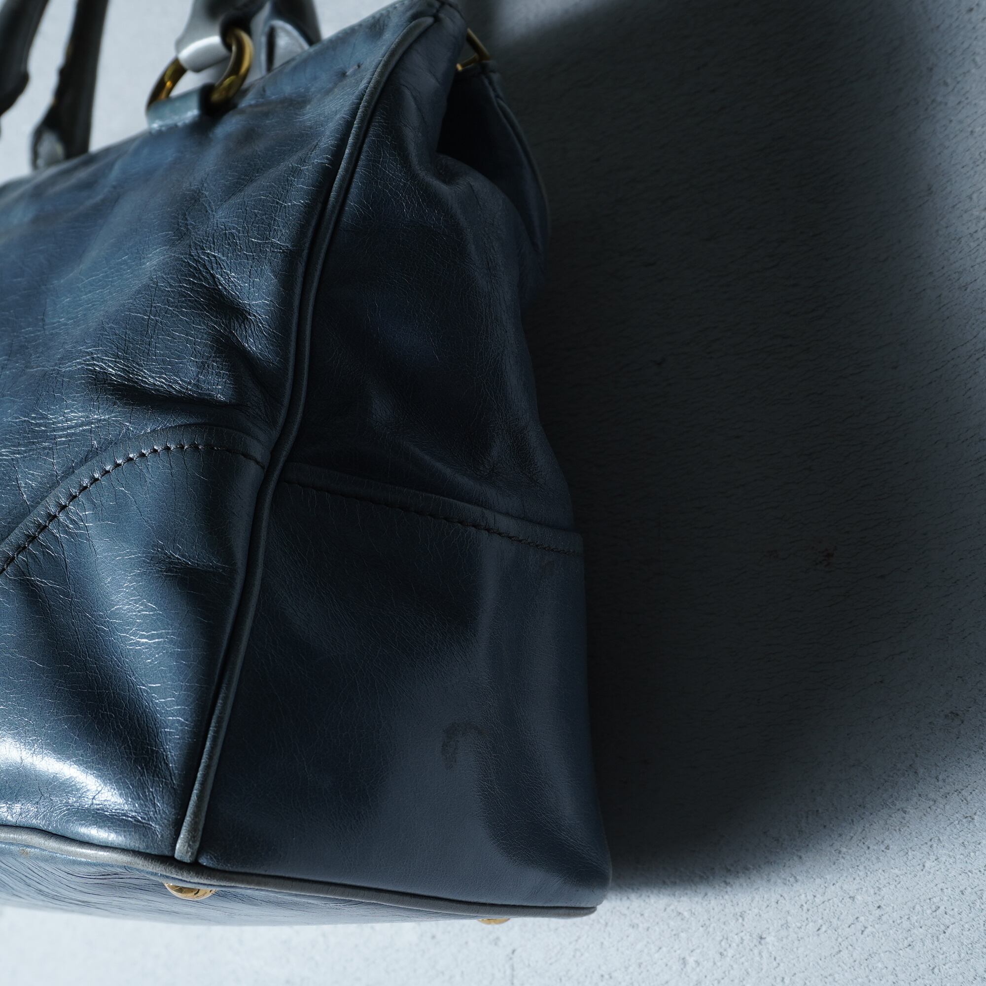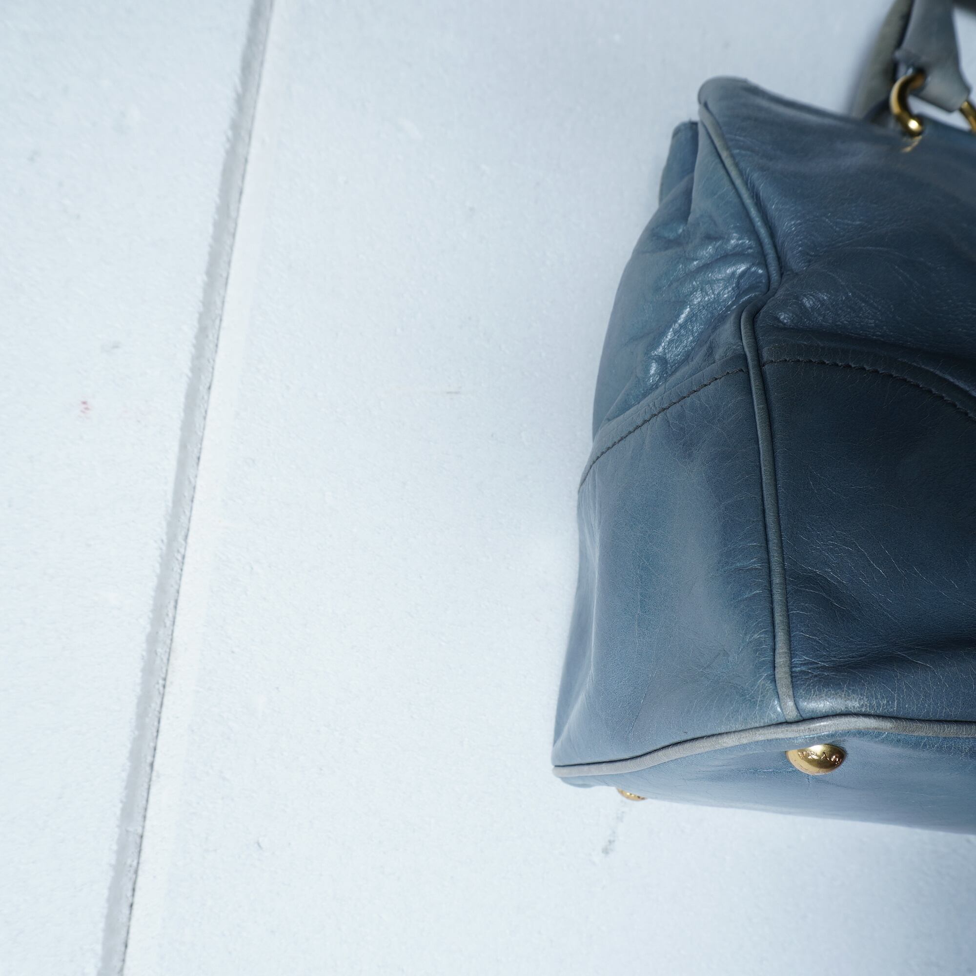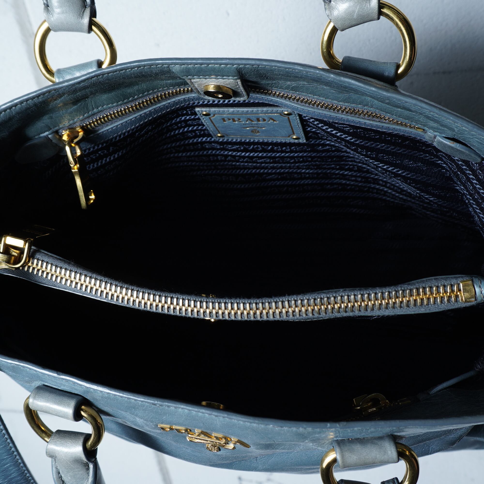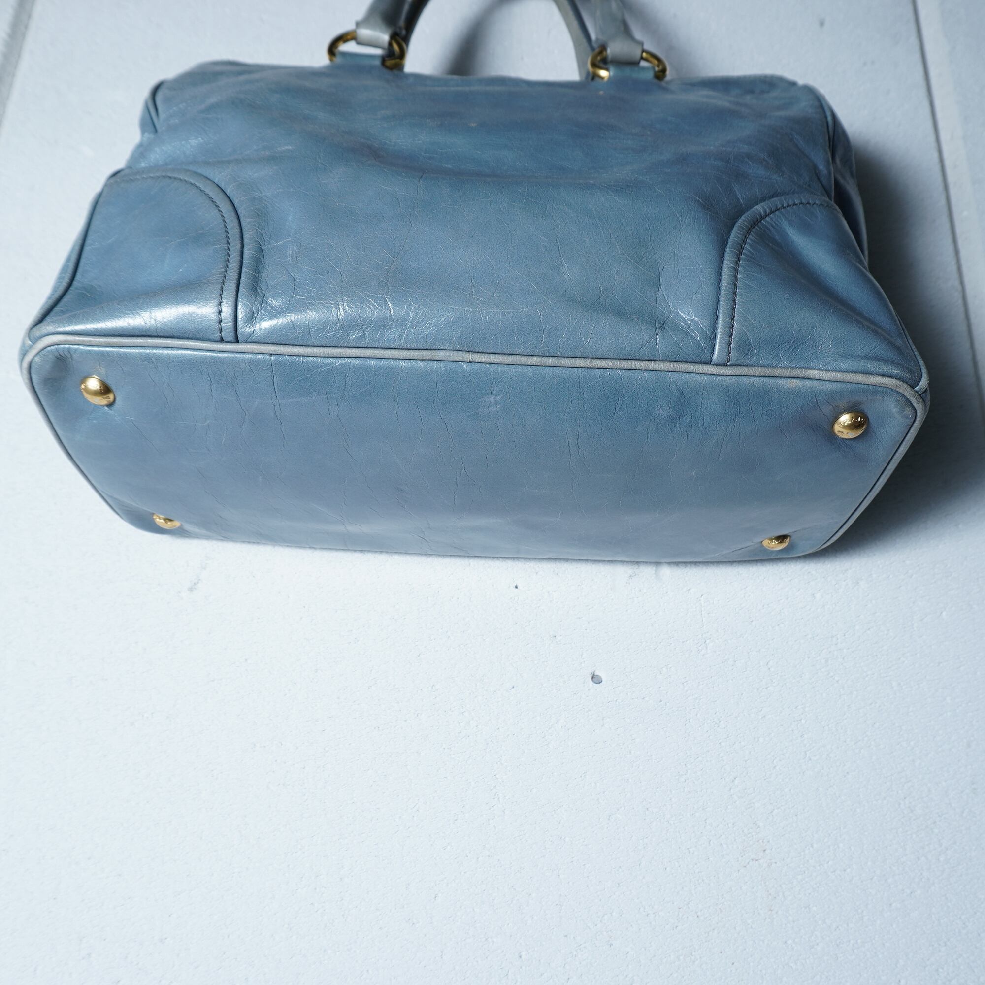 【PRADA】プラダ ”ゴールドロゴ” ヴィテッロシャインカウレザーショルダーハンドバッグ light blue