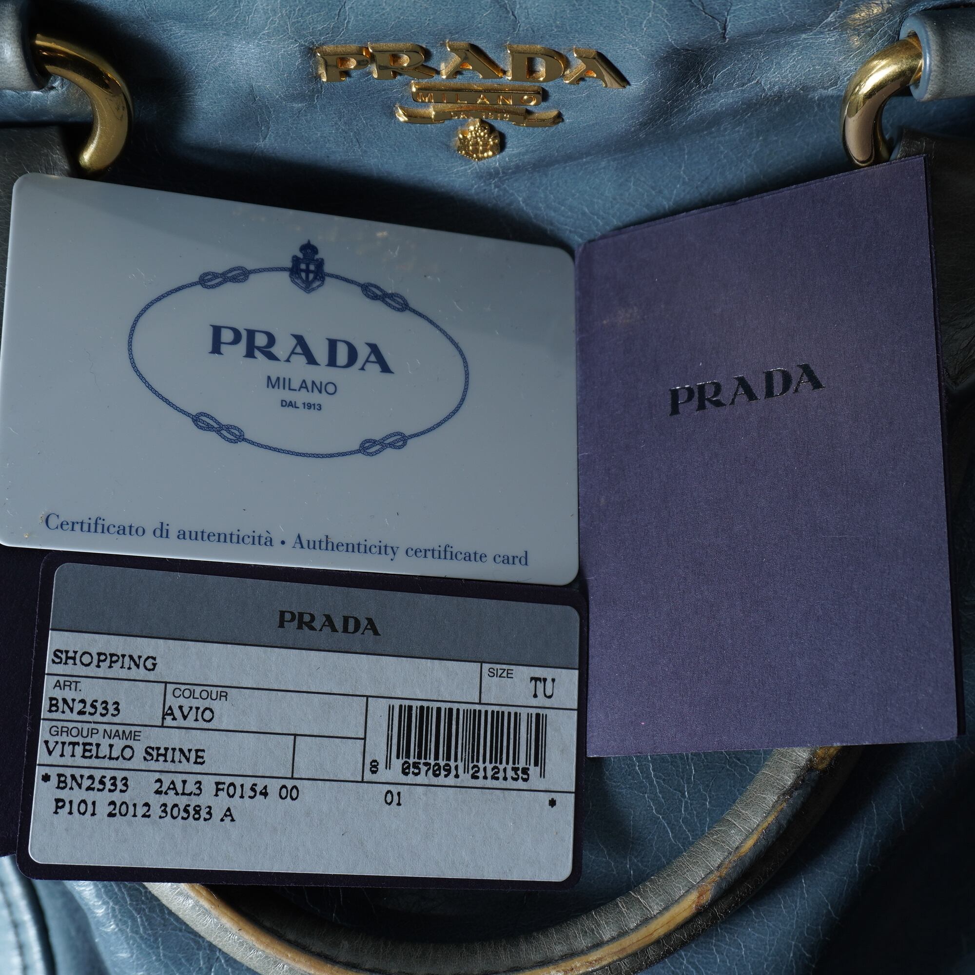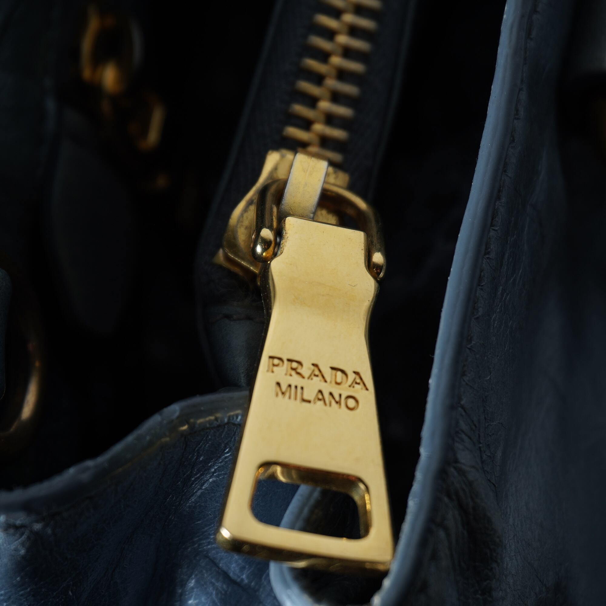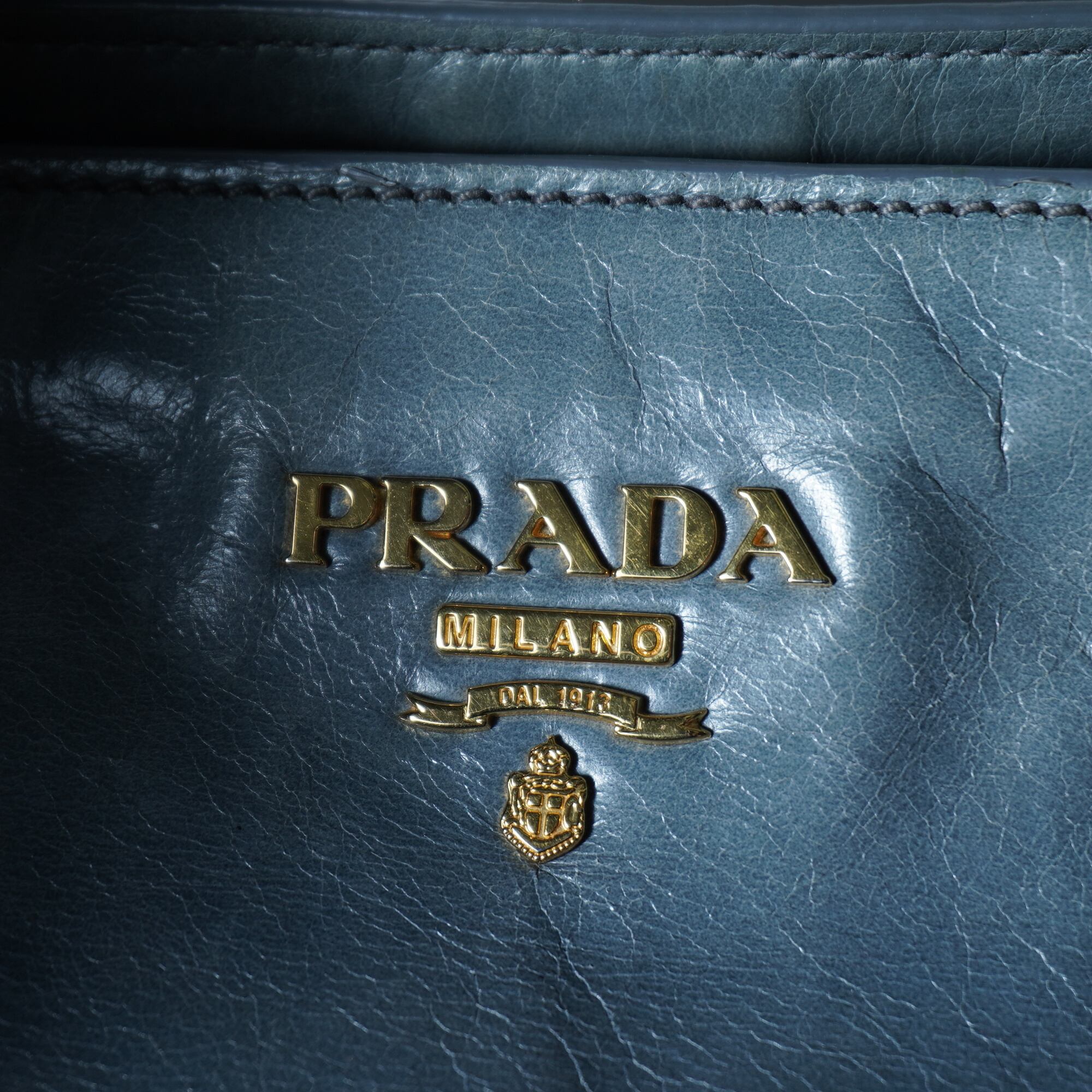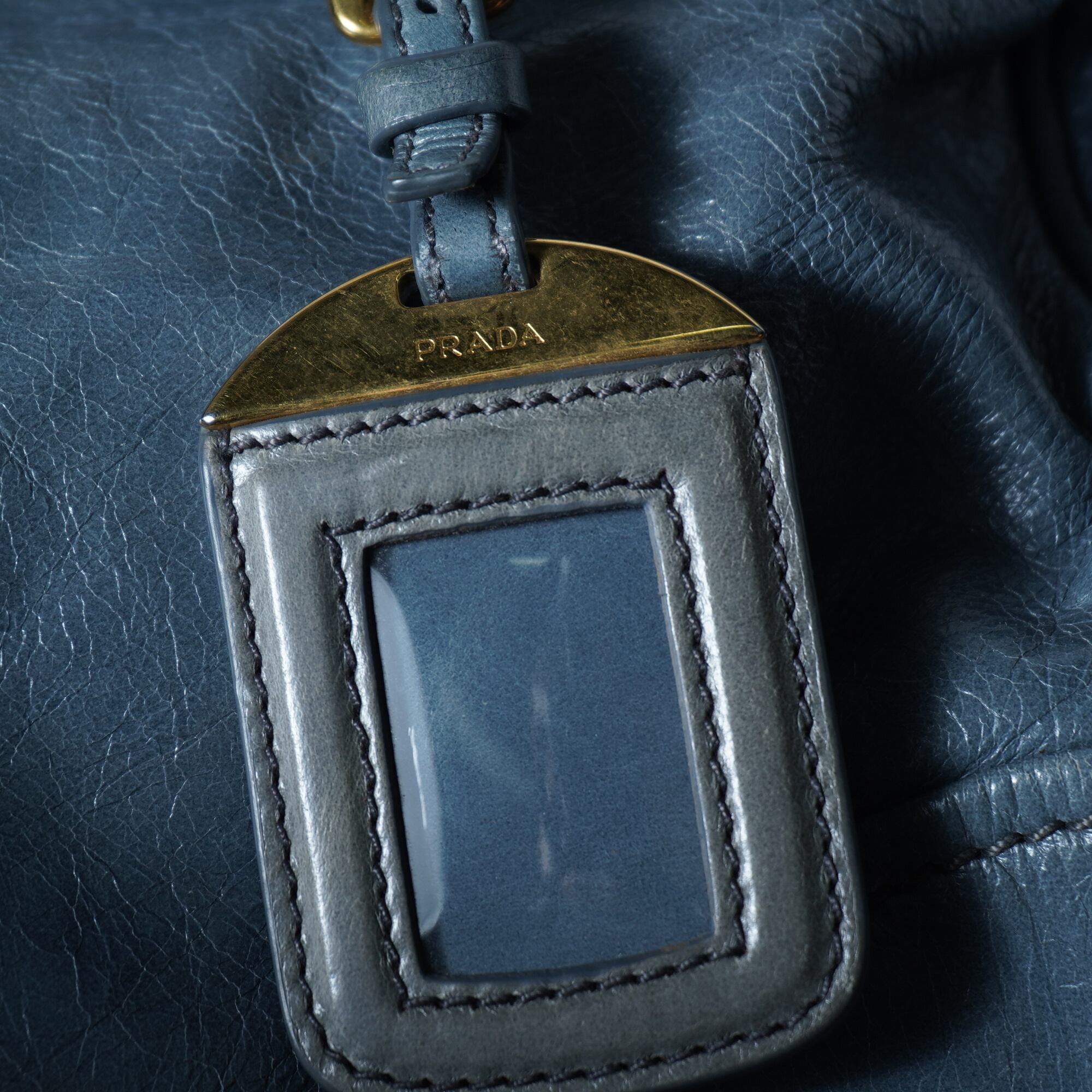 【PRADA】プラダ ”ゴールドロゴ” ヴィテッロシャインカウレザーショルダーハンドバッグ light blue
