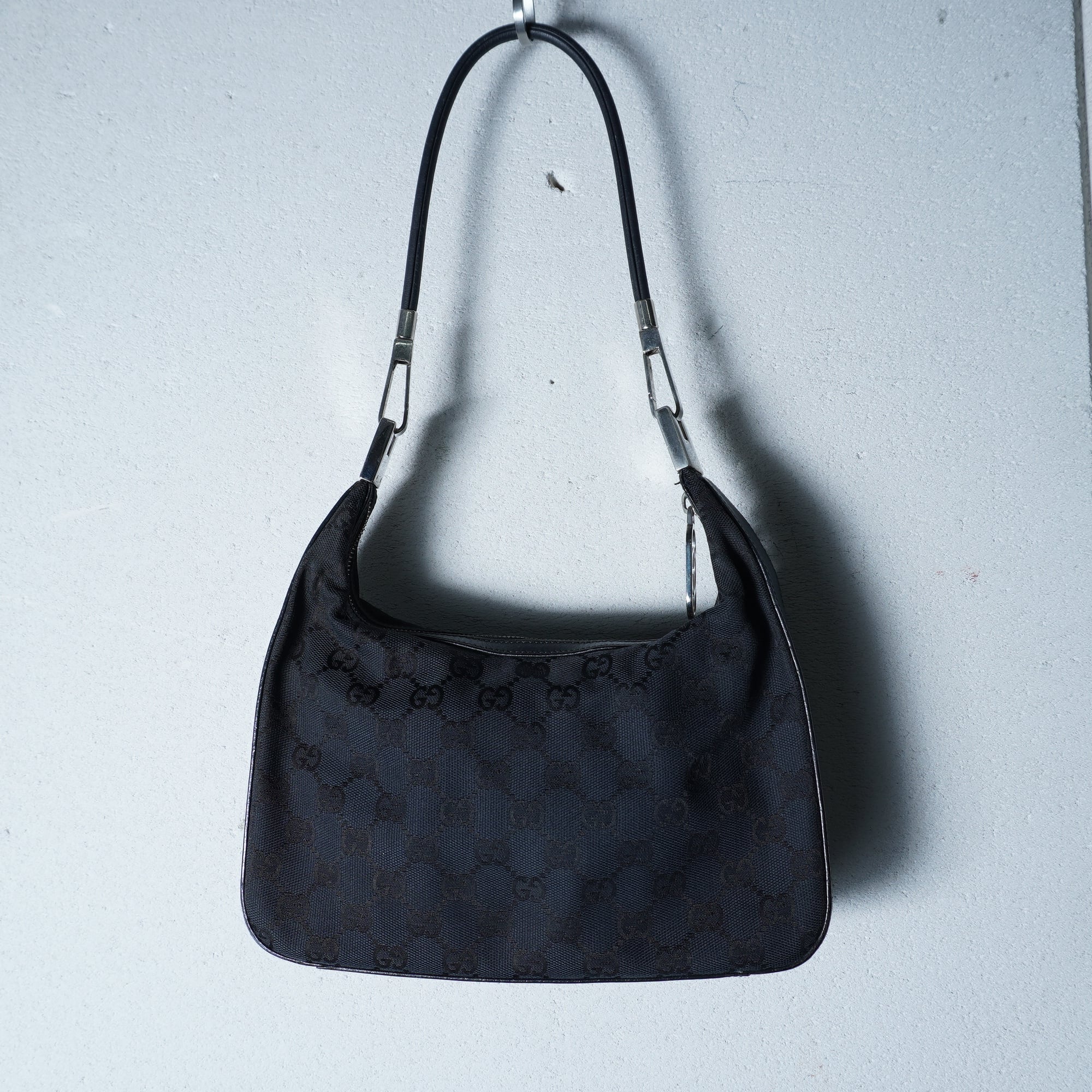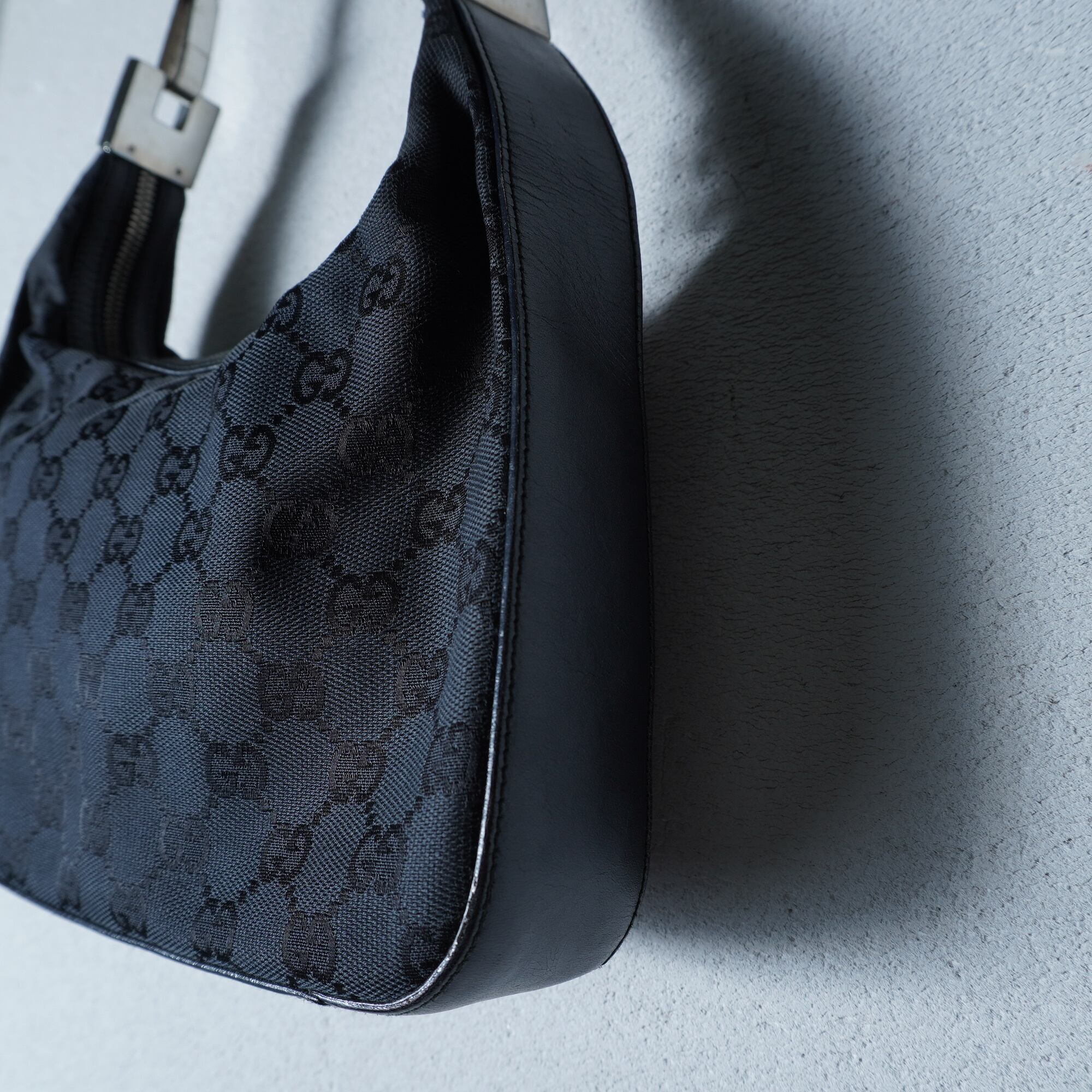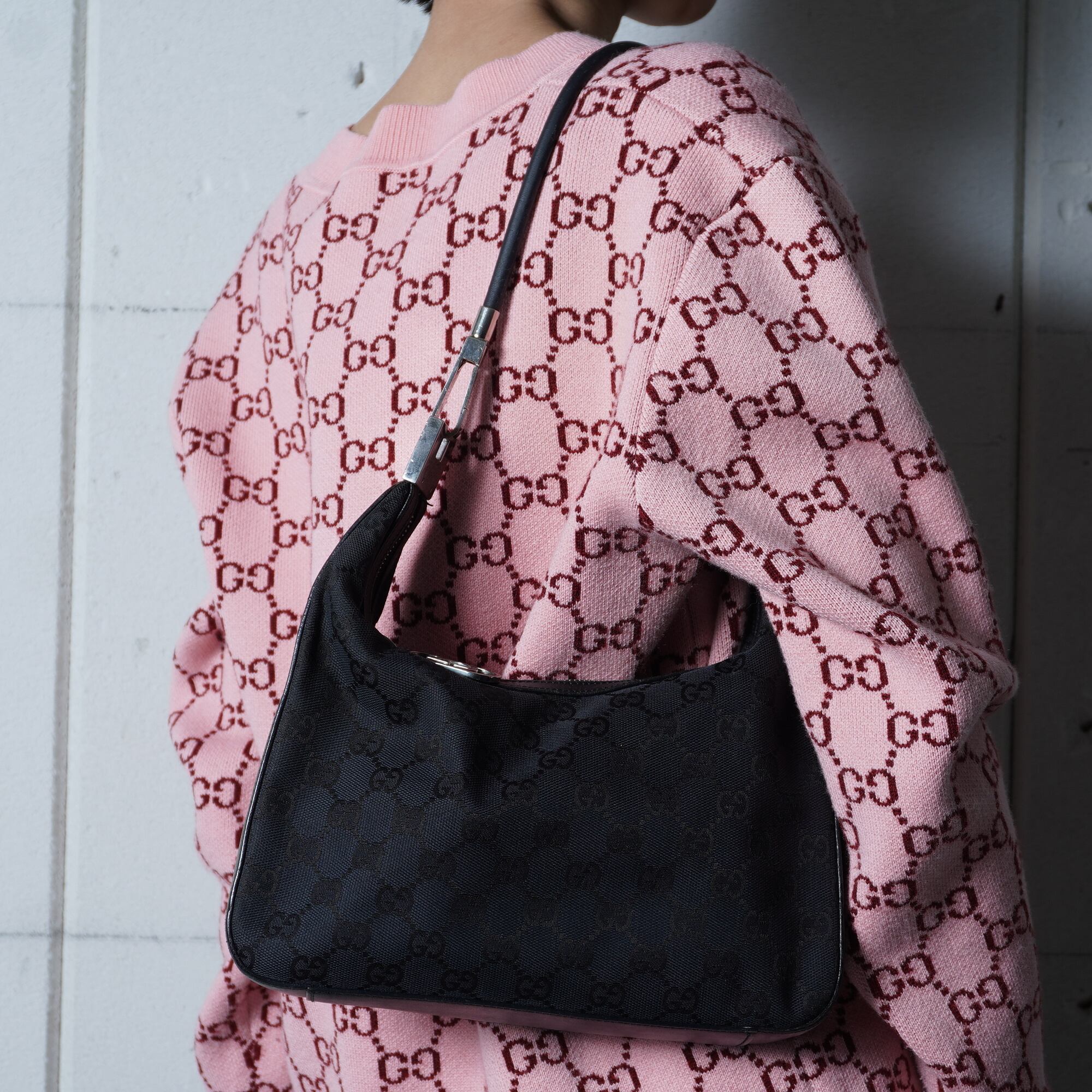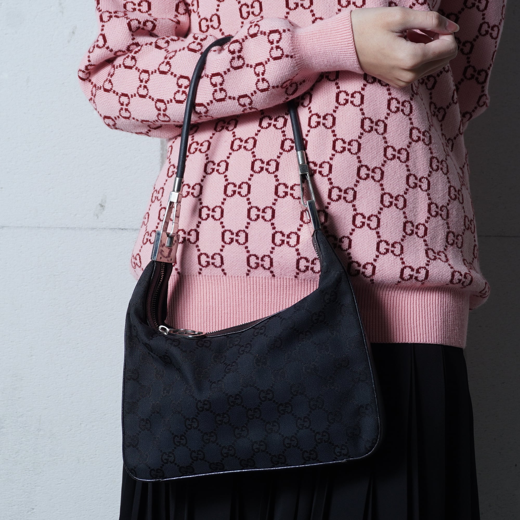 【GUCCI】グッチ ”インターロッキンG チャーム” GGキャンバス×レザーハンドバッグ black