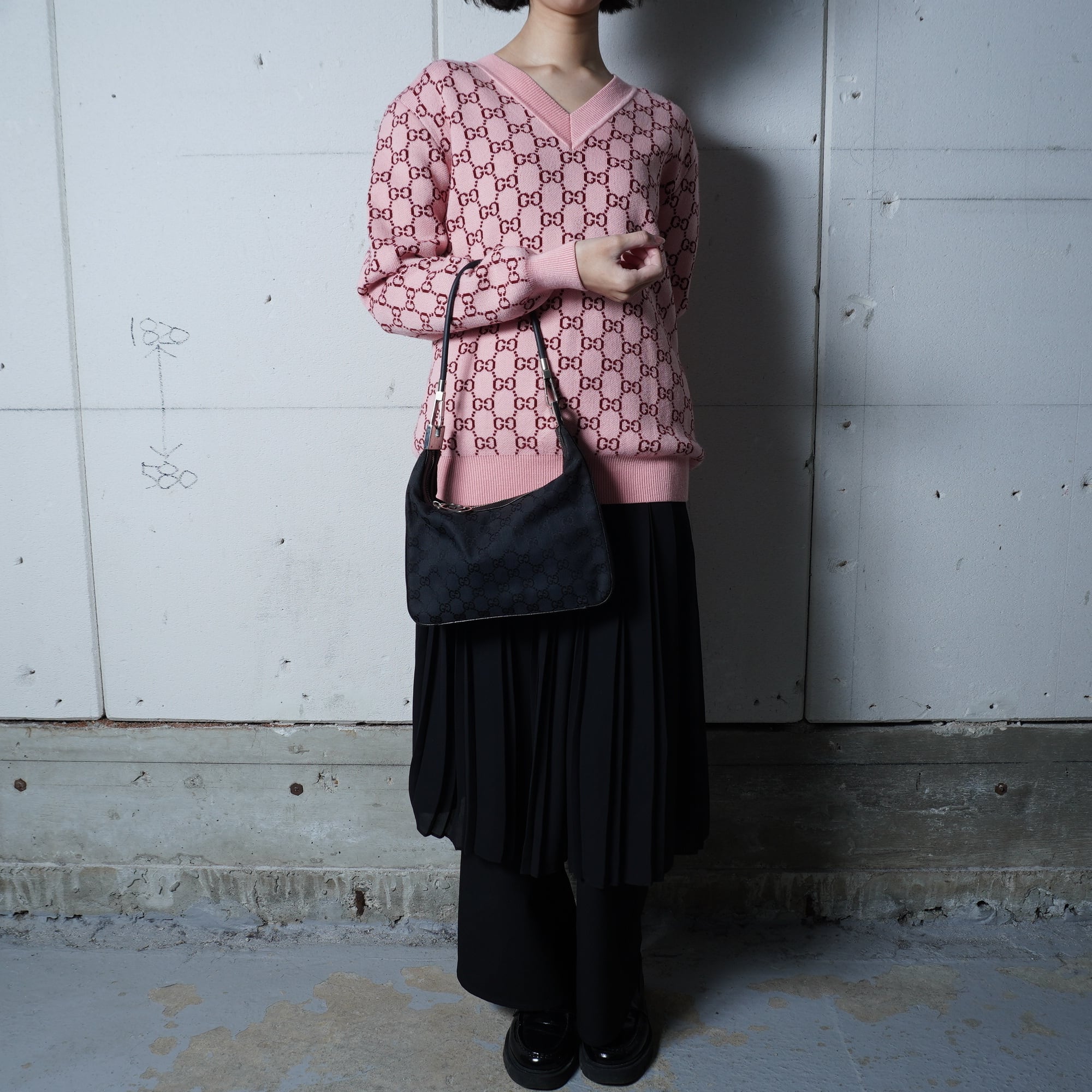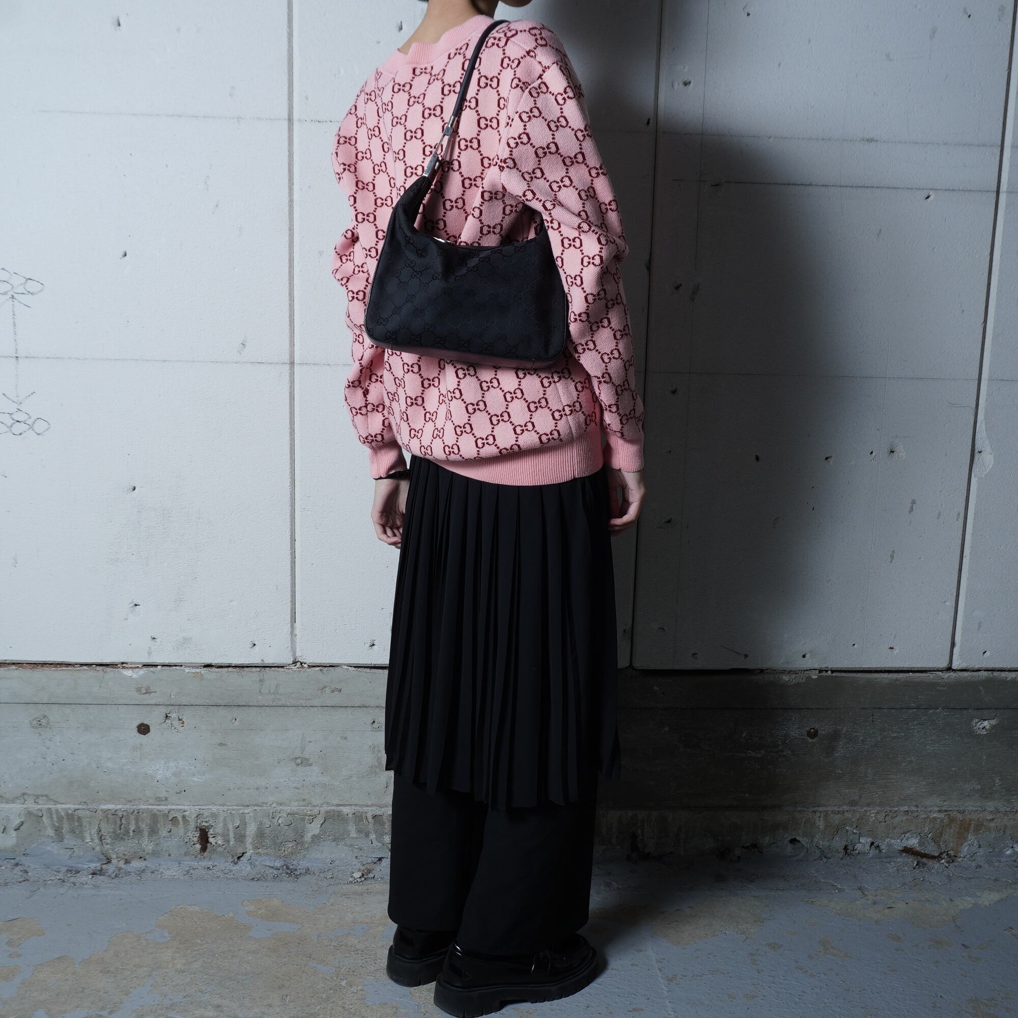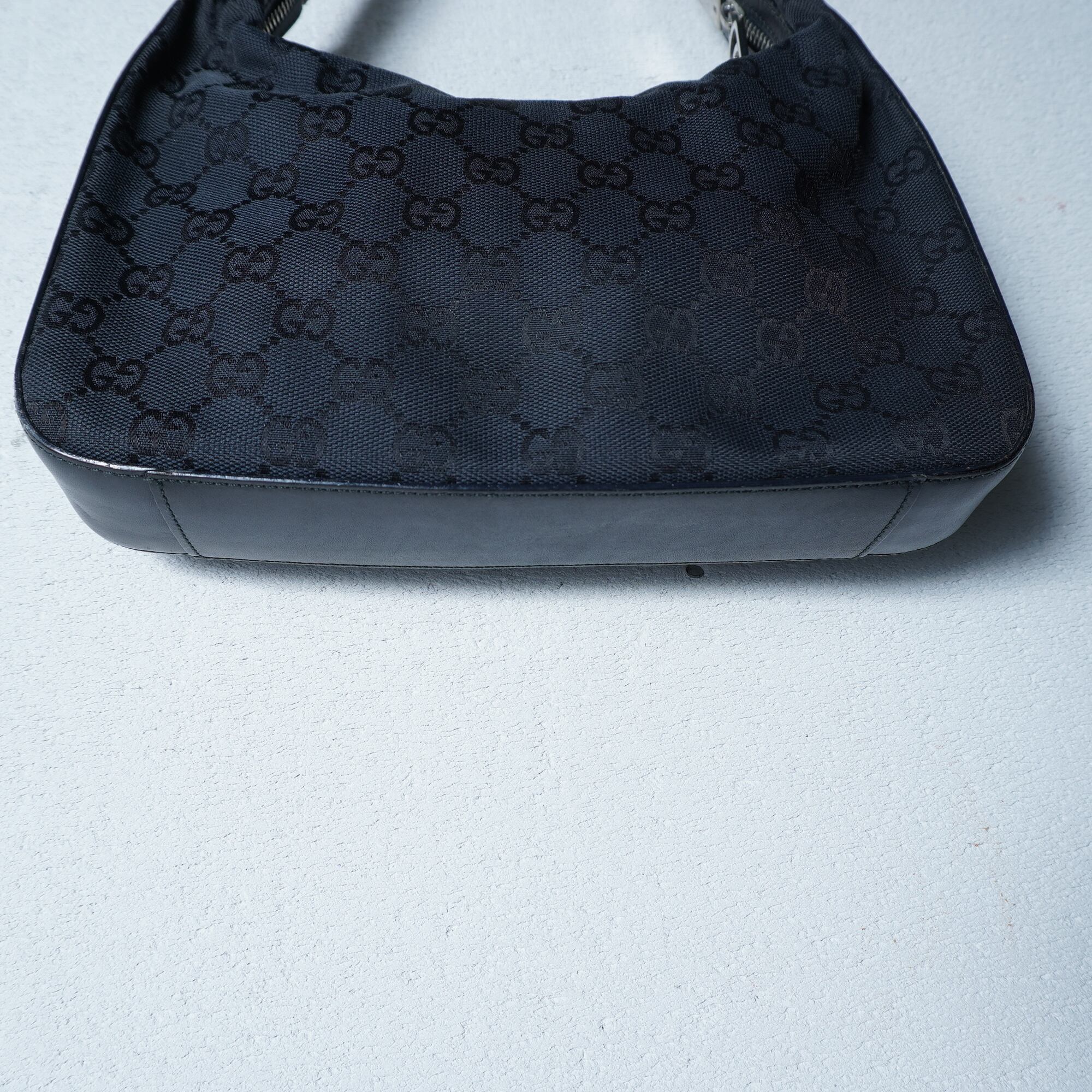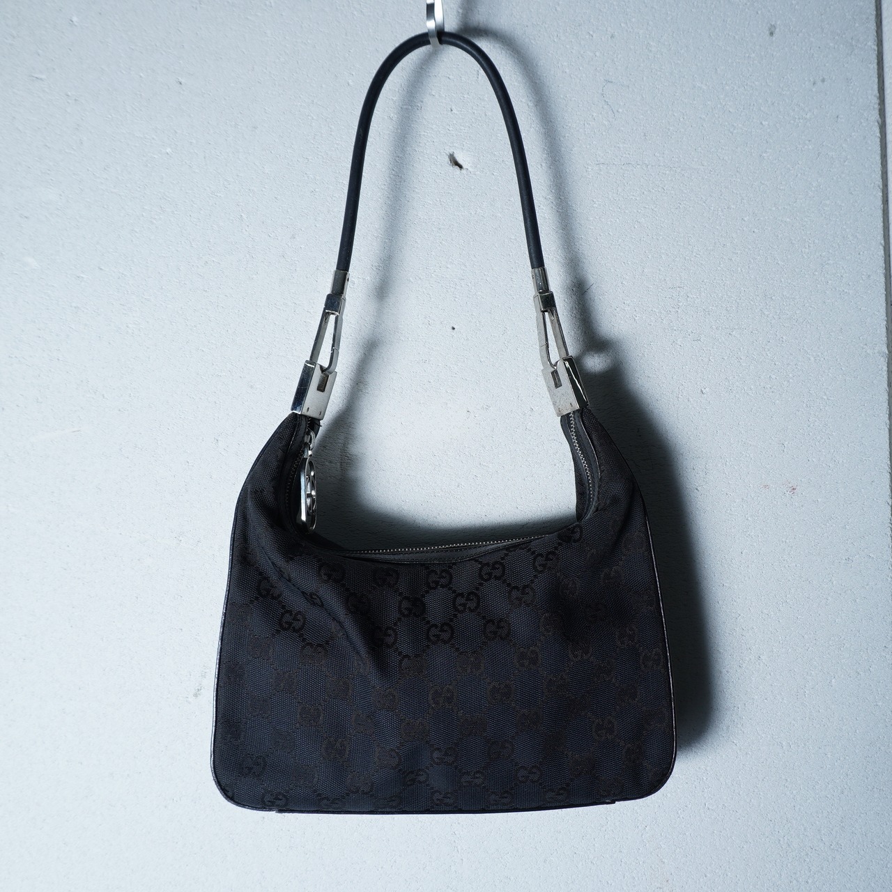 【GUCCI】グッチ ”インターロッキンG チャーム” GGキャンバス×レザーハンドバッグ black