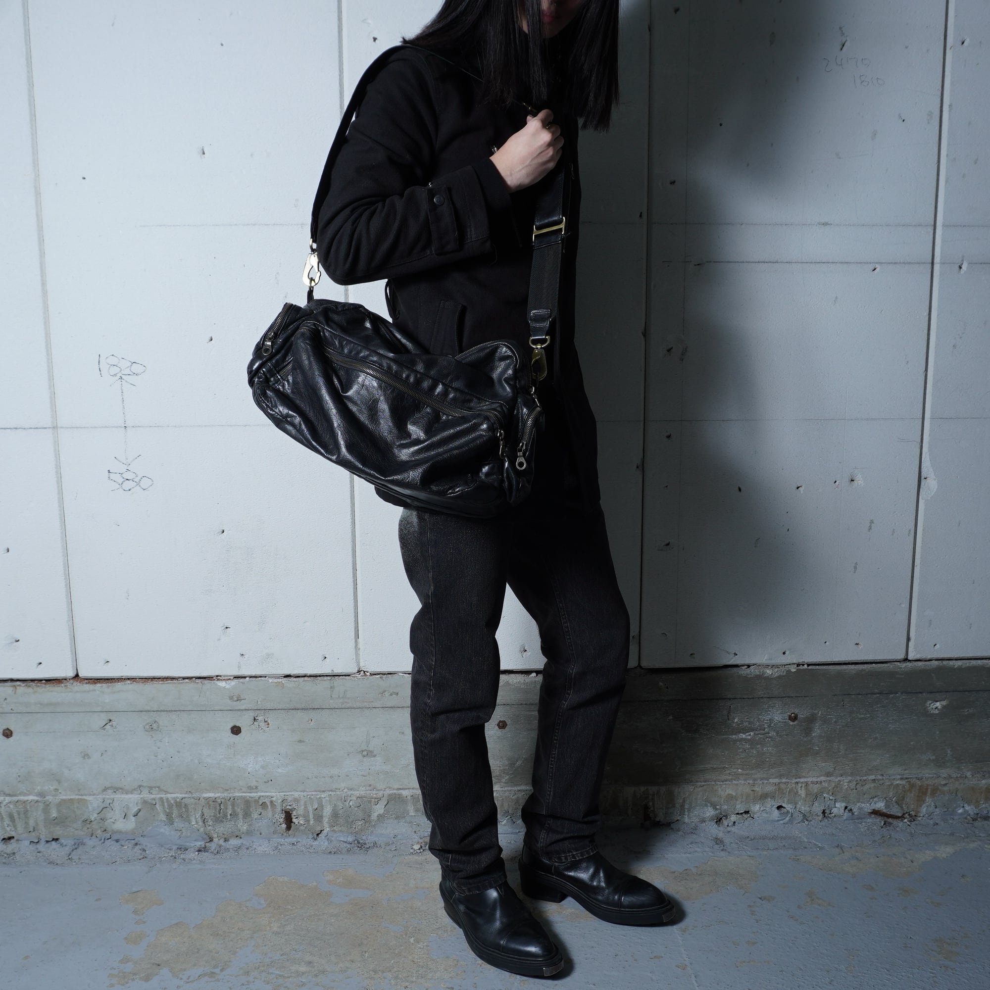 【Jas M.B】ジャスエムビー"archive"LIFTコラボポケットレザーショルダーバッグ black
