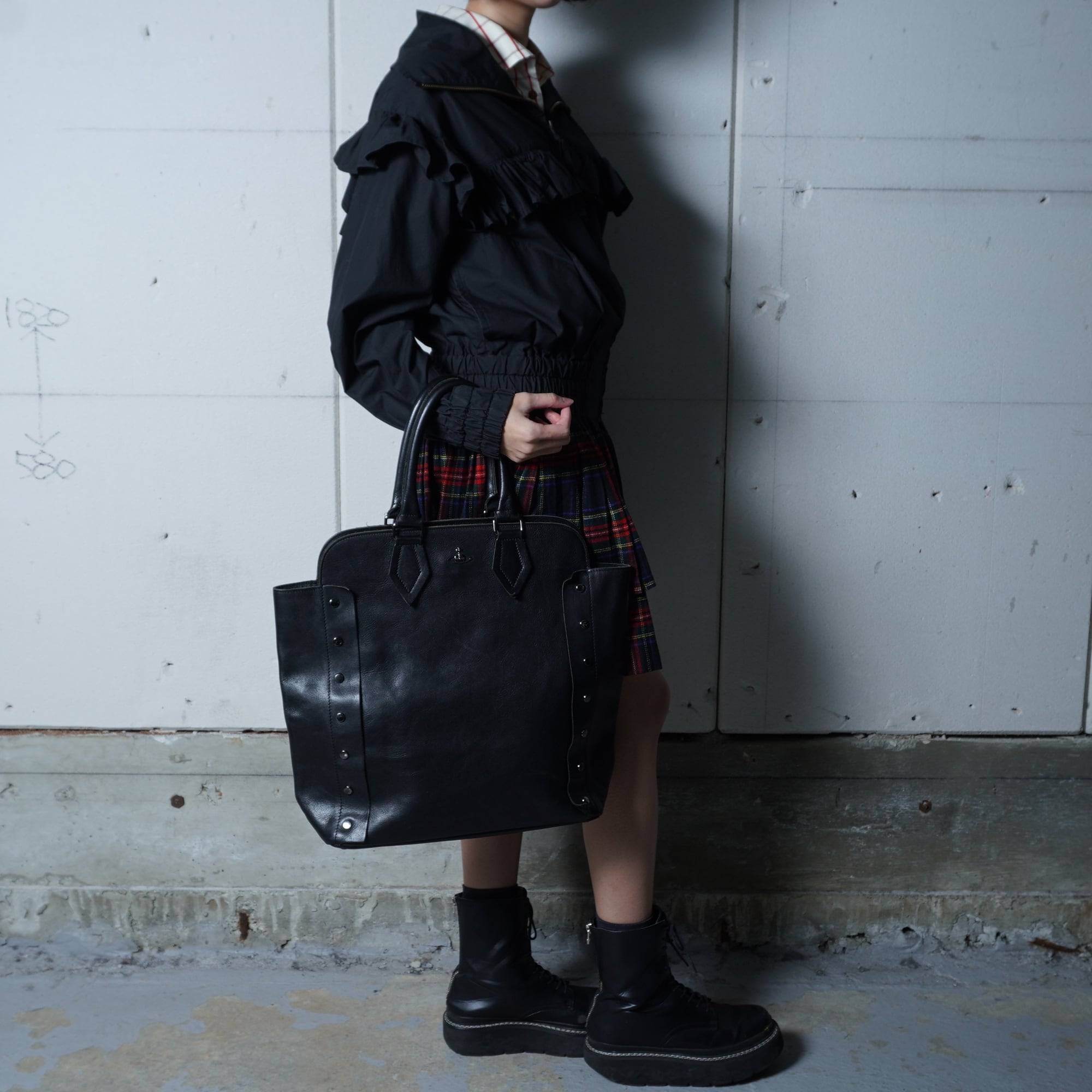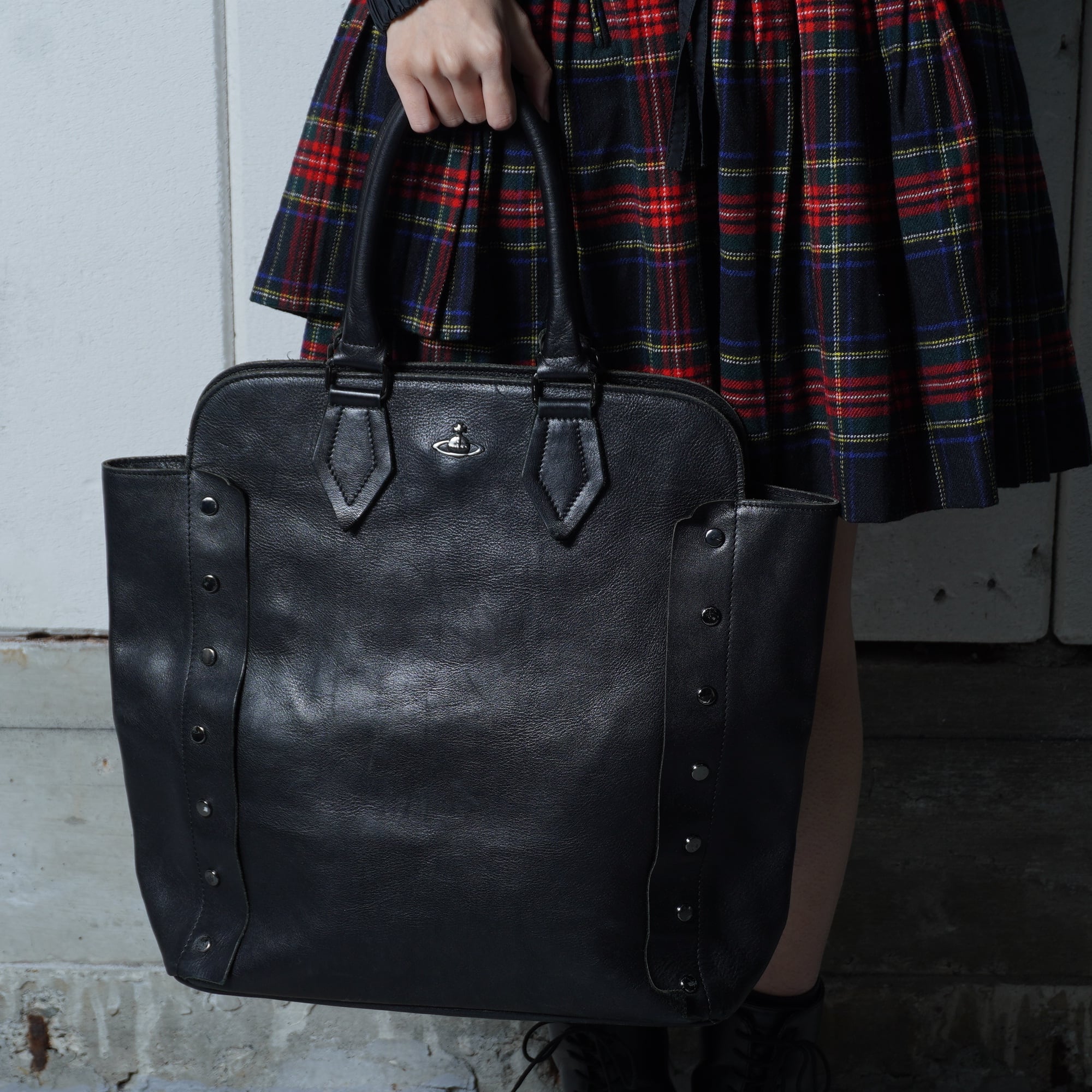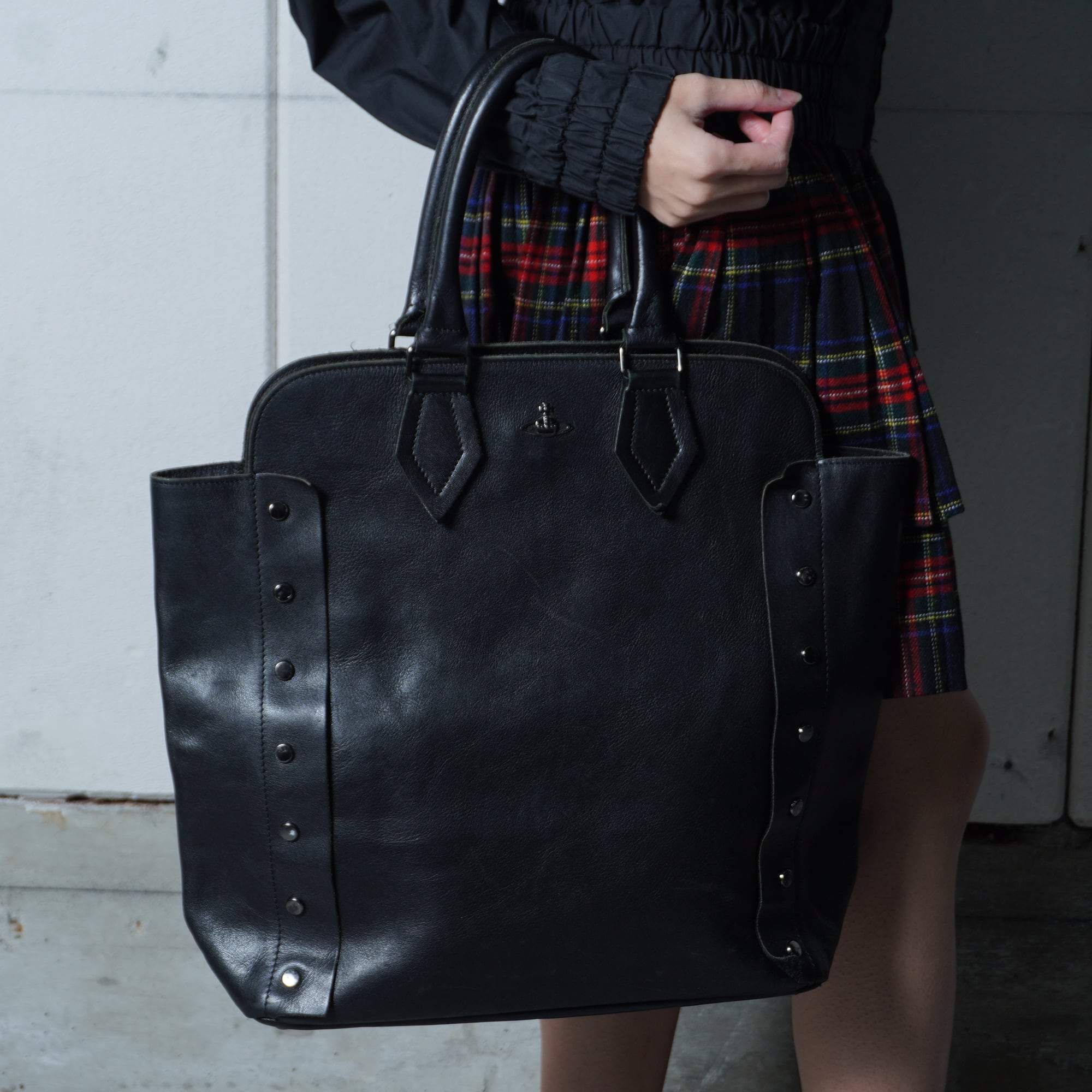 【Vivienne Westwood】ヴィヴィアンウエストウッド オーブロゴ ヌーロックリアルレザートートバッグ black