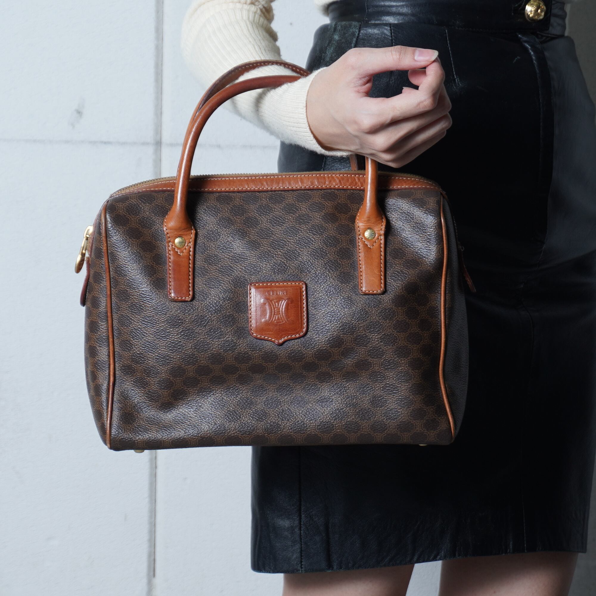 【CELINE】セリーヌ ”トリオンフロゴ” マカダム柄レザーハンドバッグ brown
