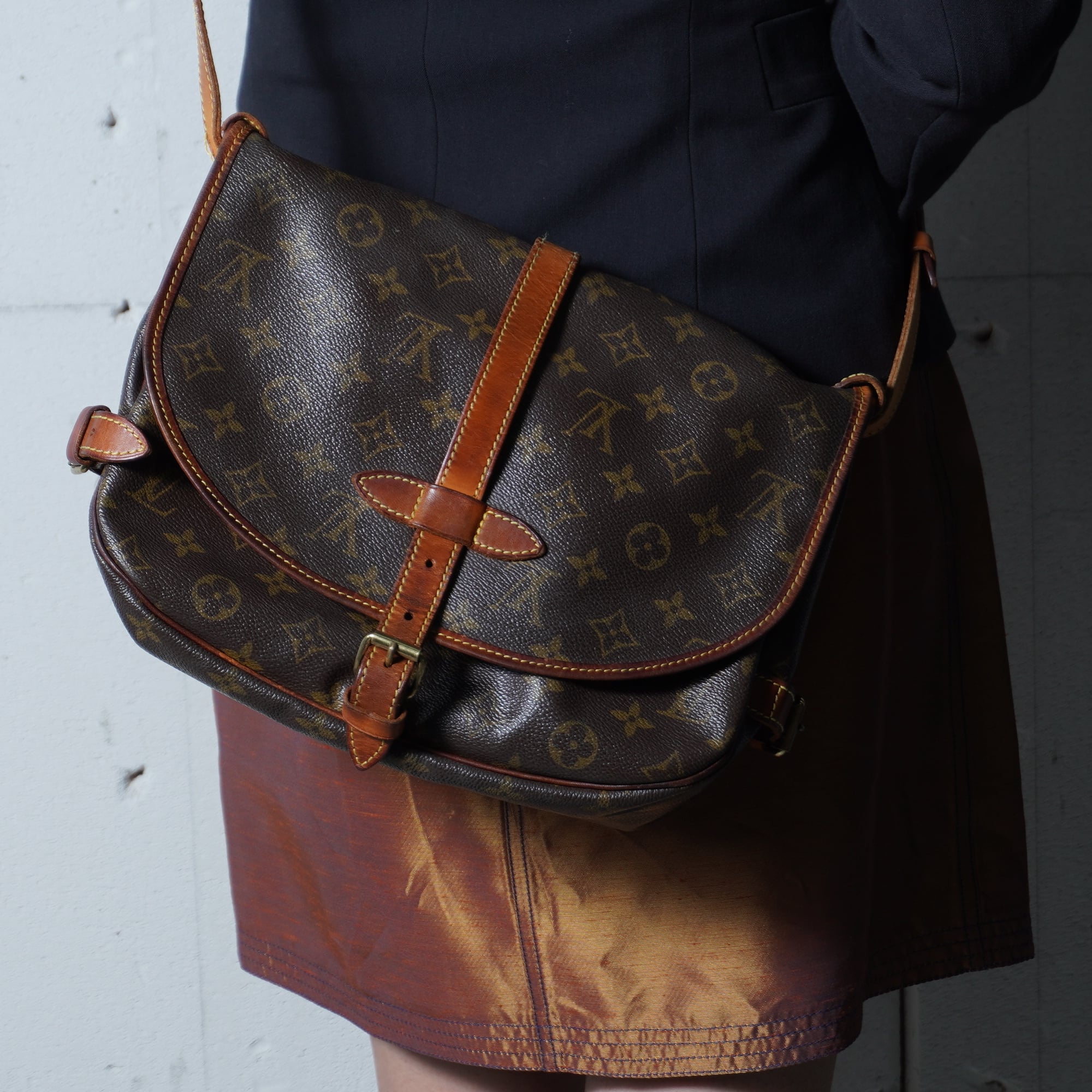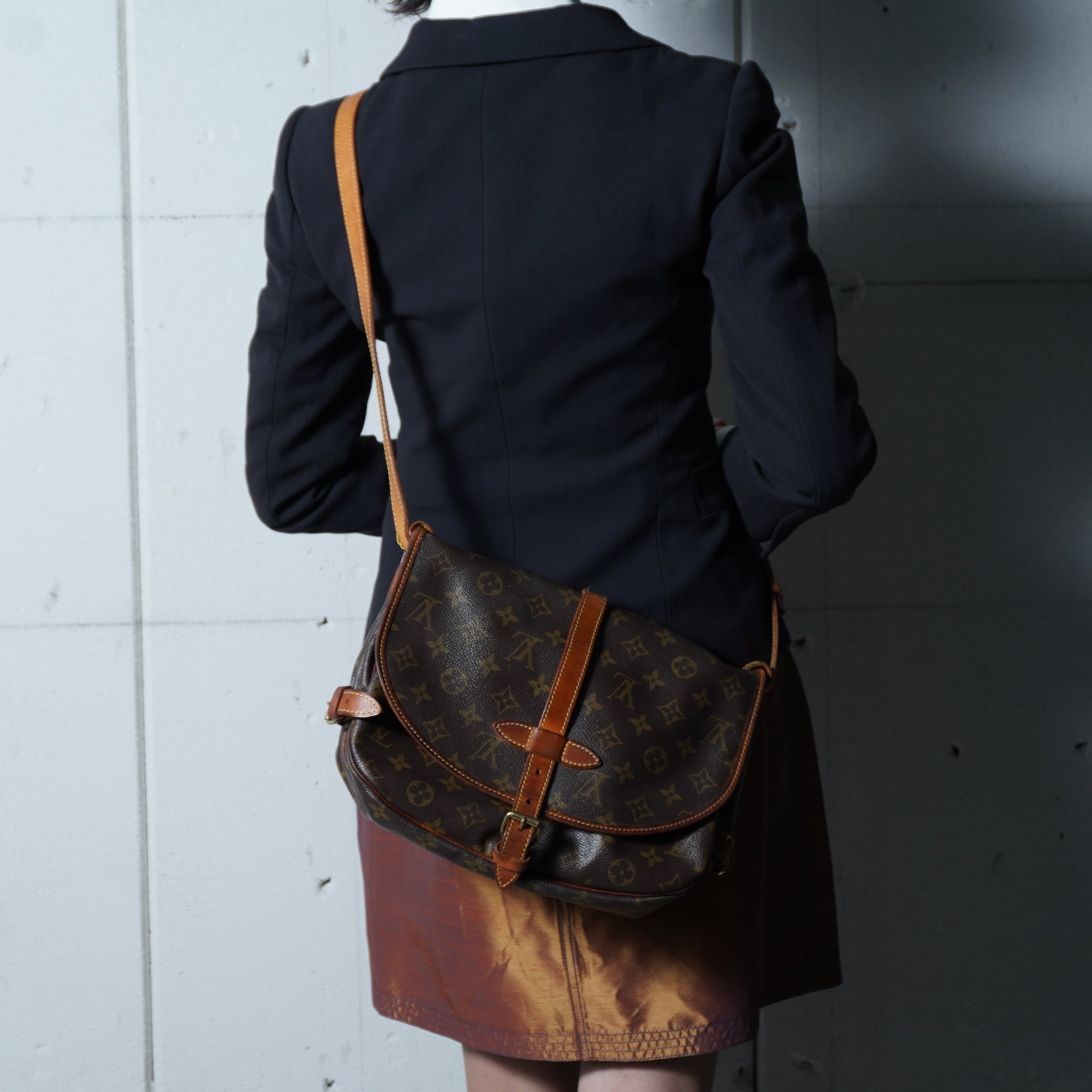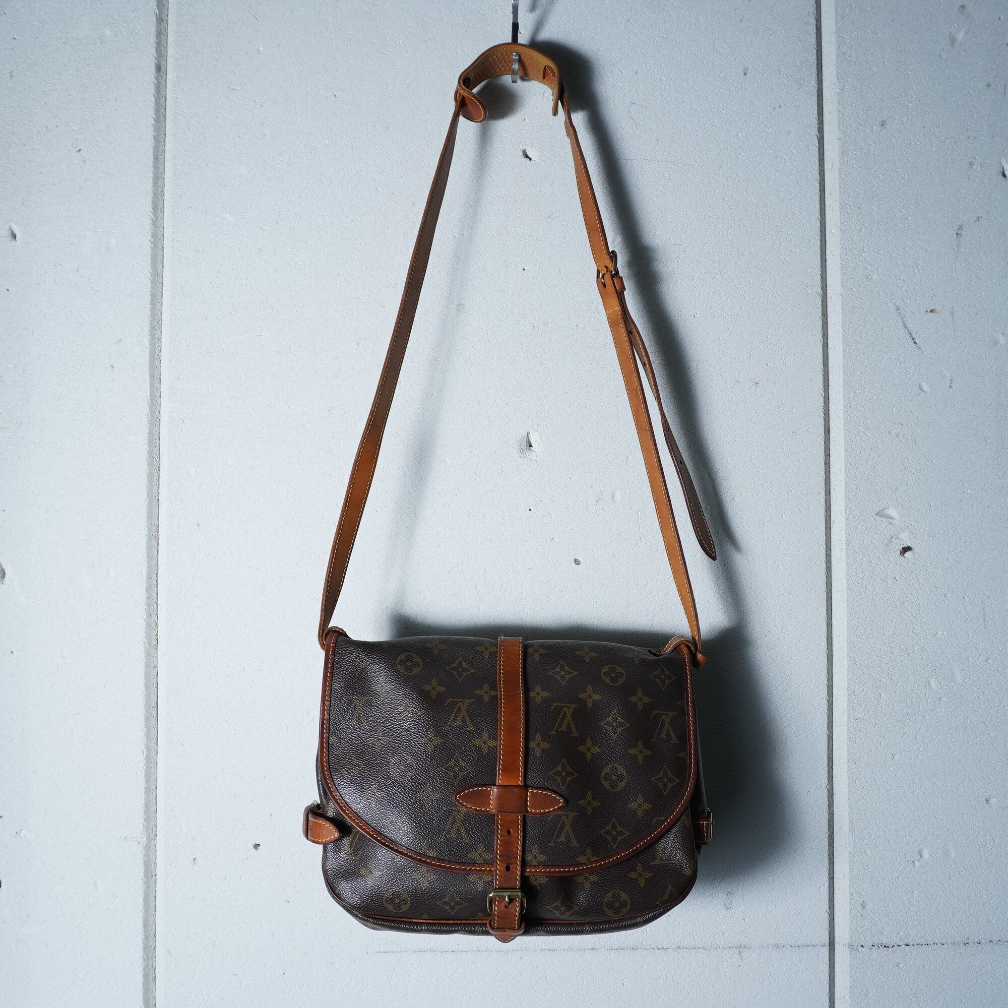 【LOUIS VUITTON】ルイヴィトン ソミュール30モノグラムレザーショルダーバッグ brown