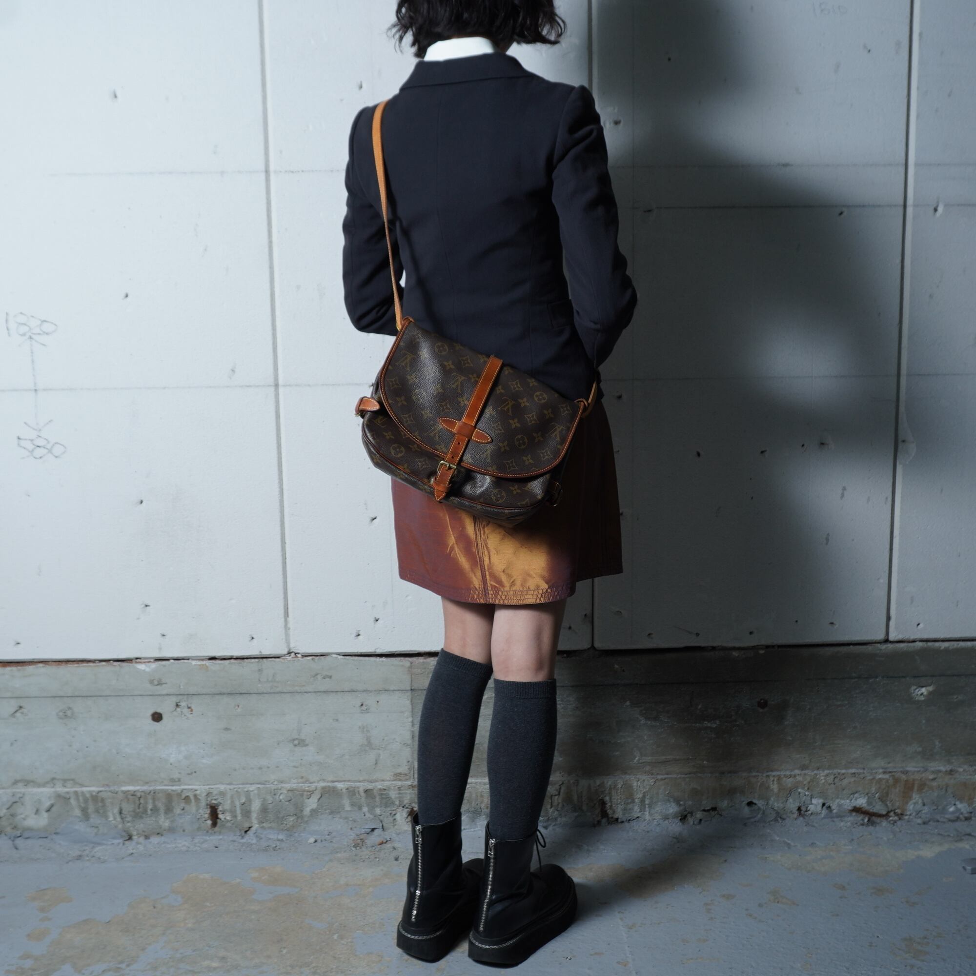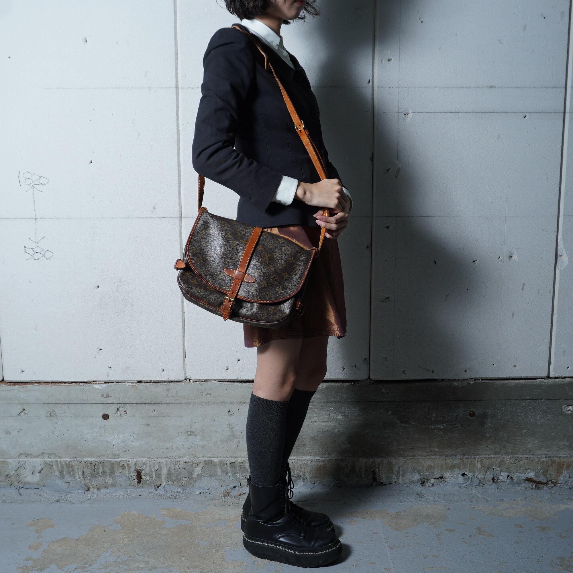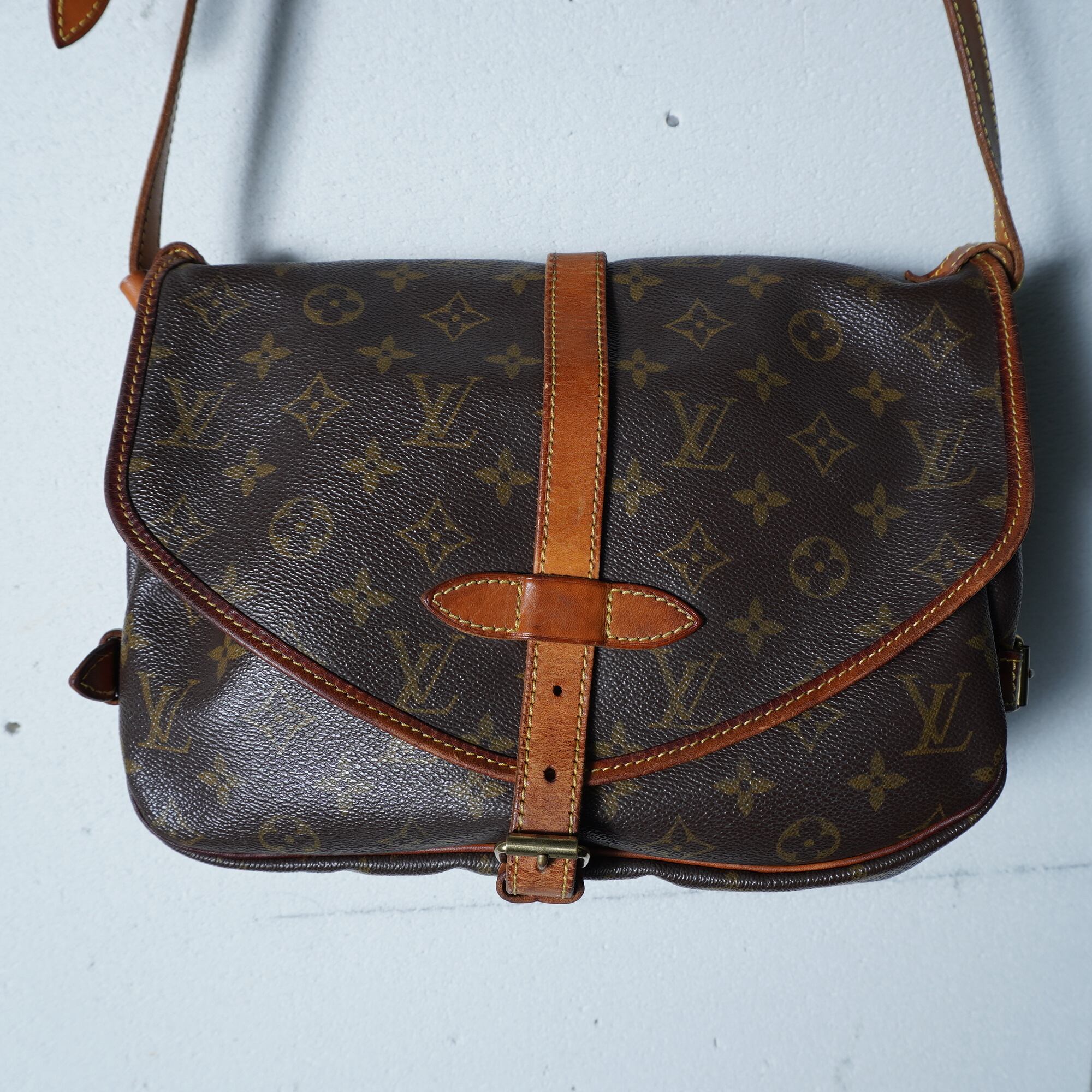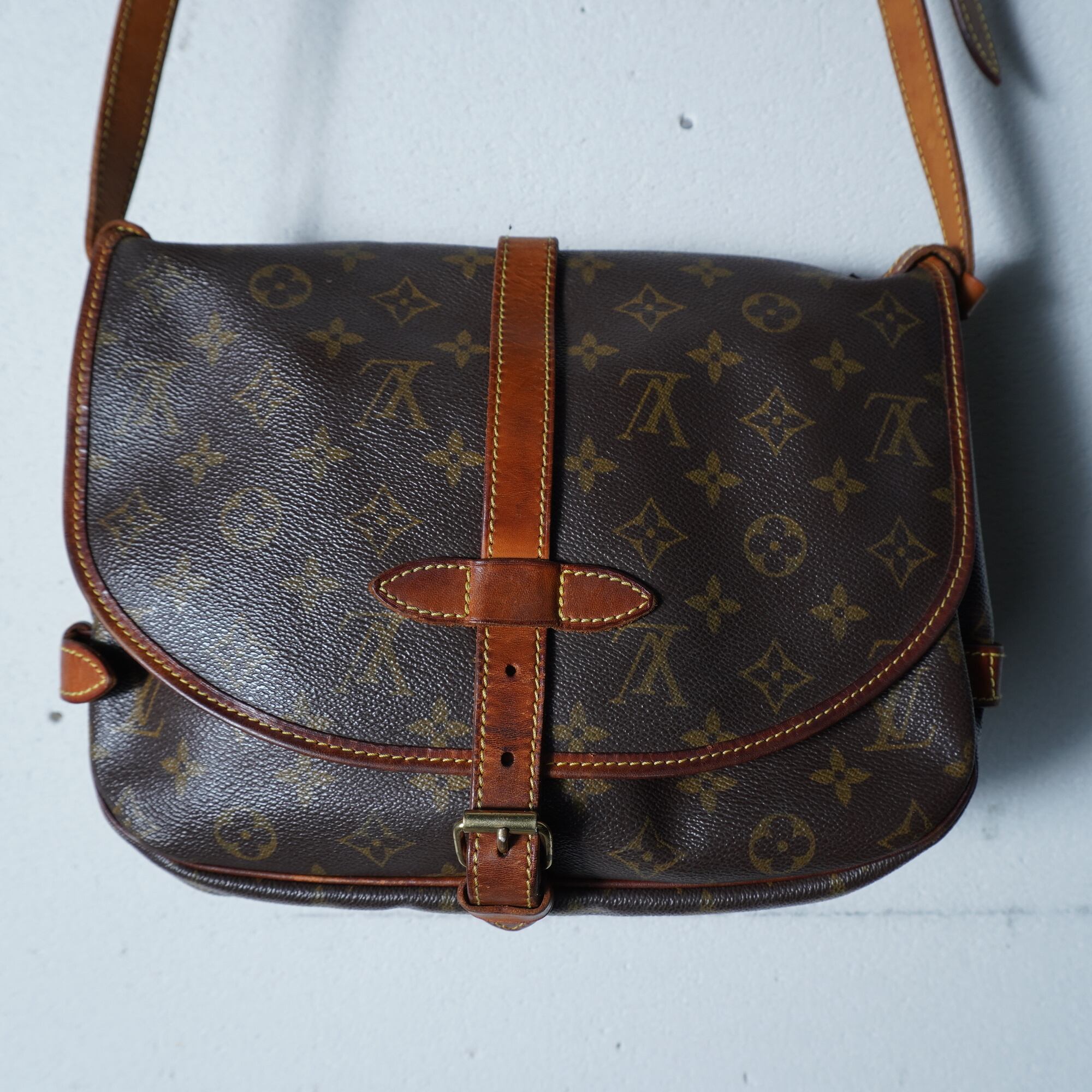 【LOUIS VUITTON】ルイヴィトン ソミュール30モノグラムレザーショルダーバッグ brown